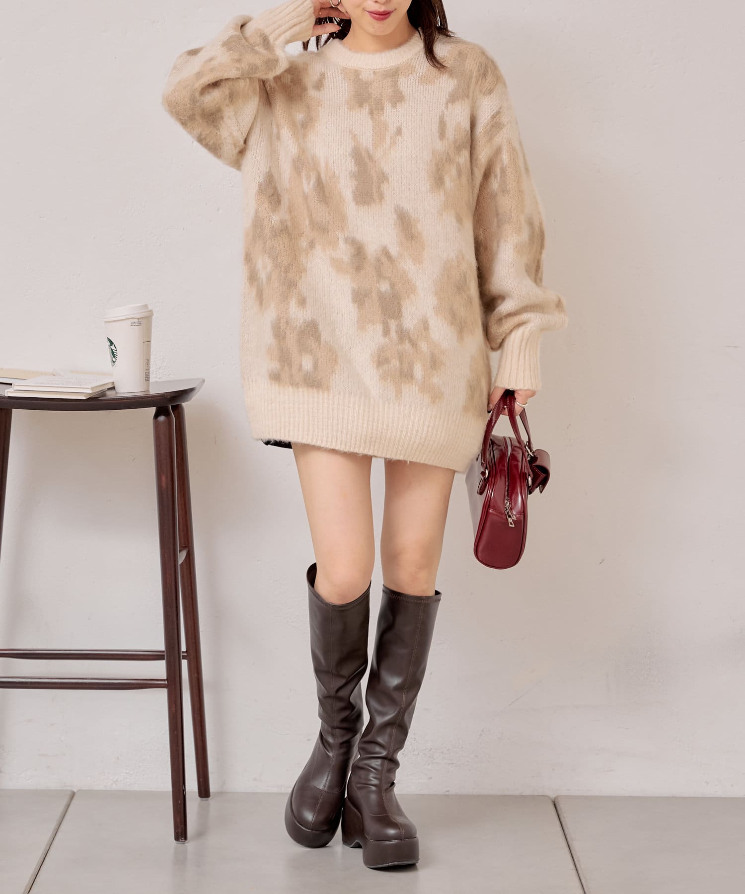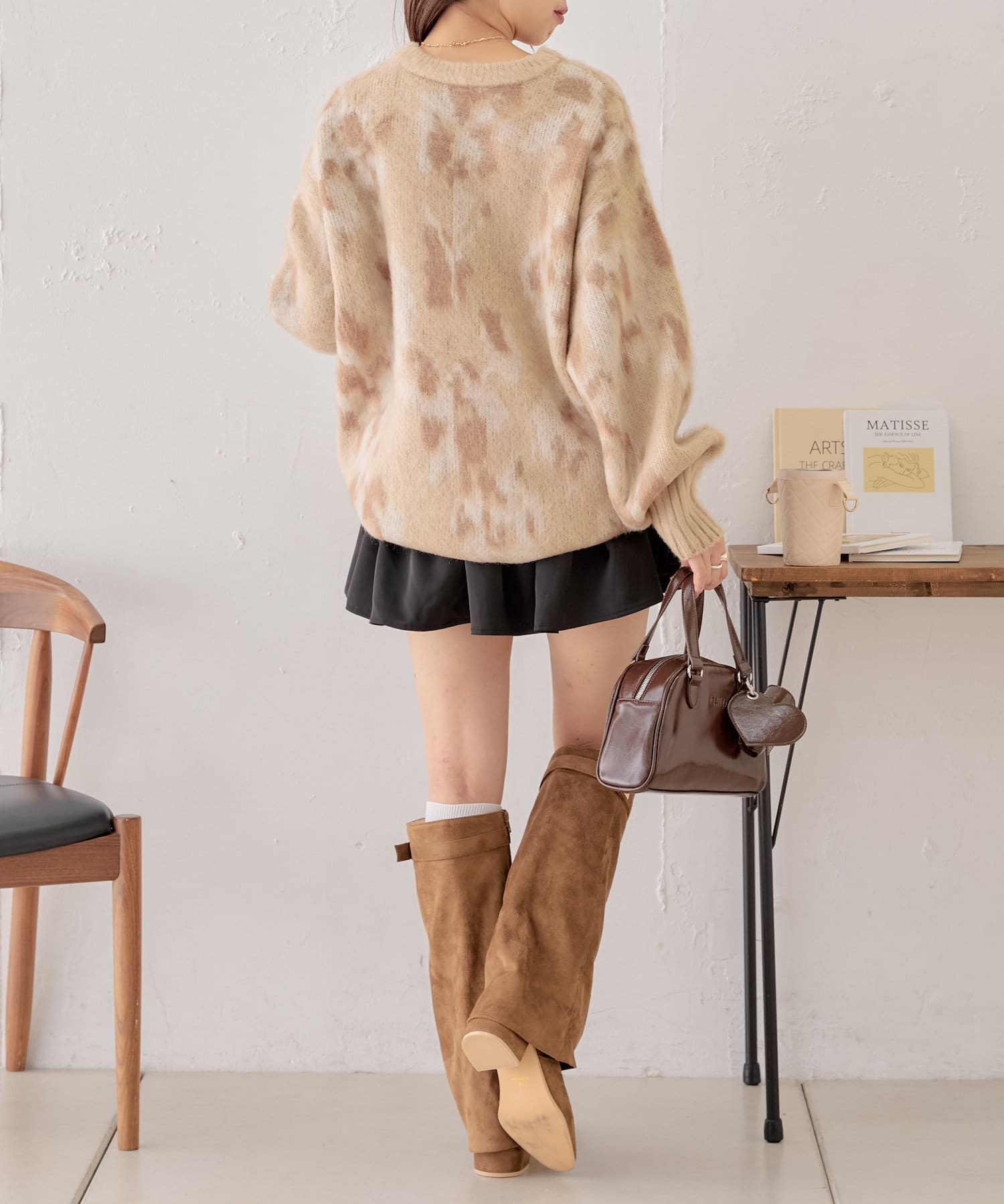 ・ルーズなサイズ感のニットでストレスフリーに着ていただけます!