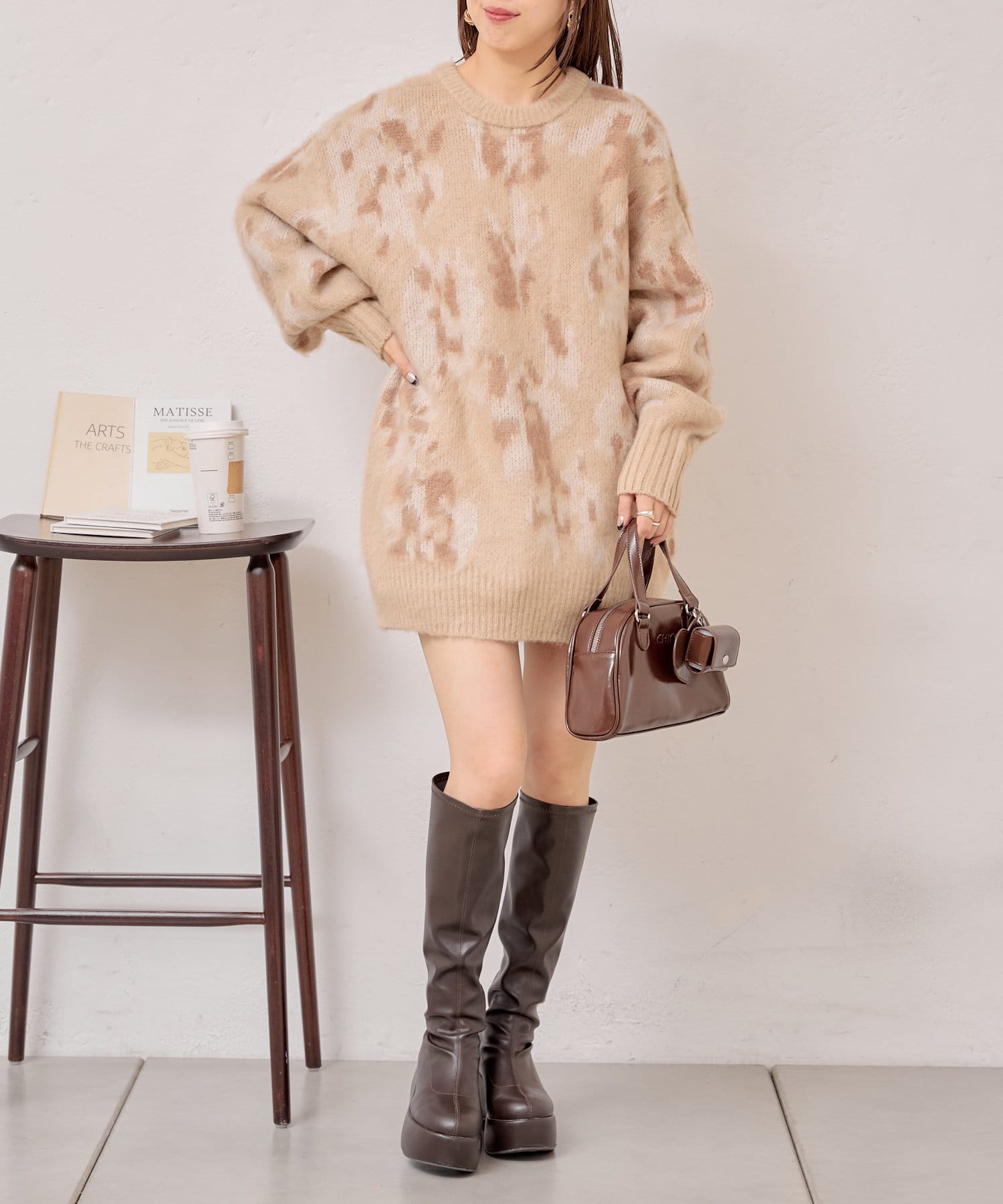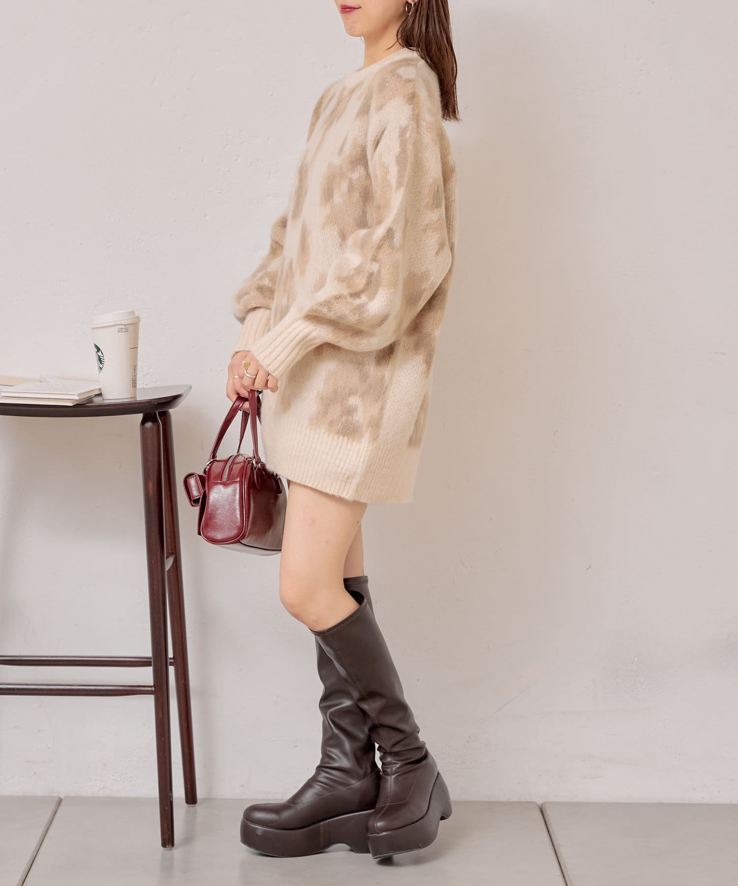 ・ルーズな丈感なので、ミニ丈のボトムスを合わせてミニワンピ風で着ていただくと可愛いです♡
