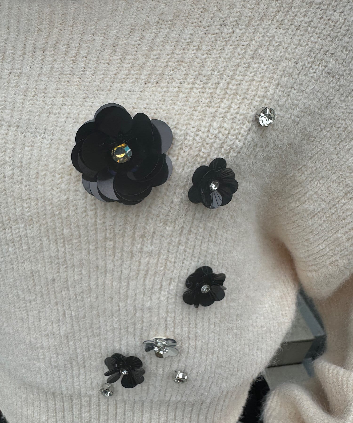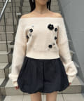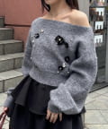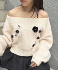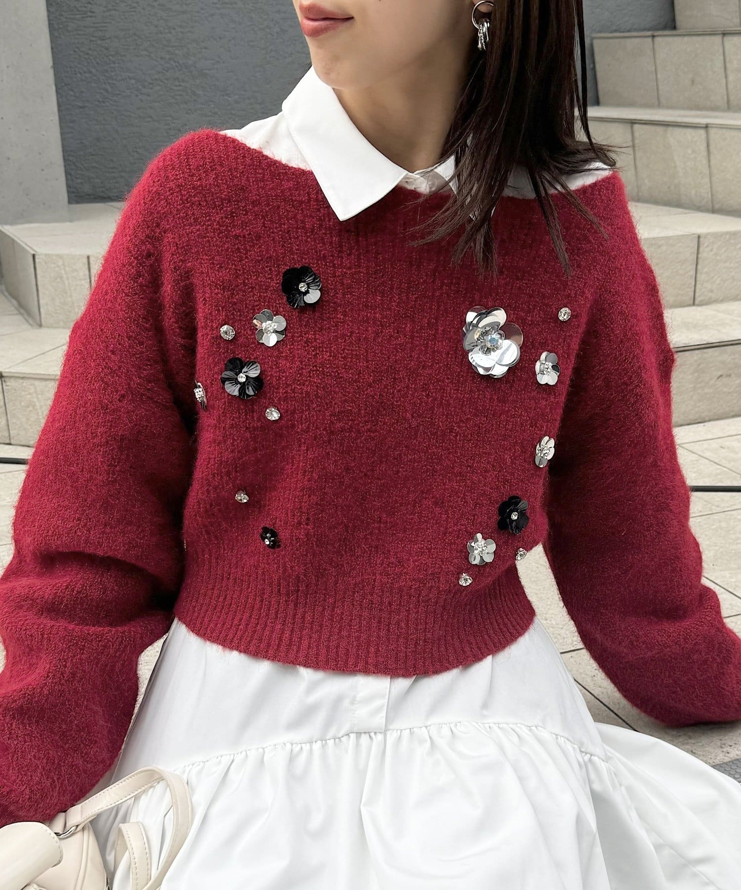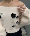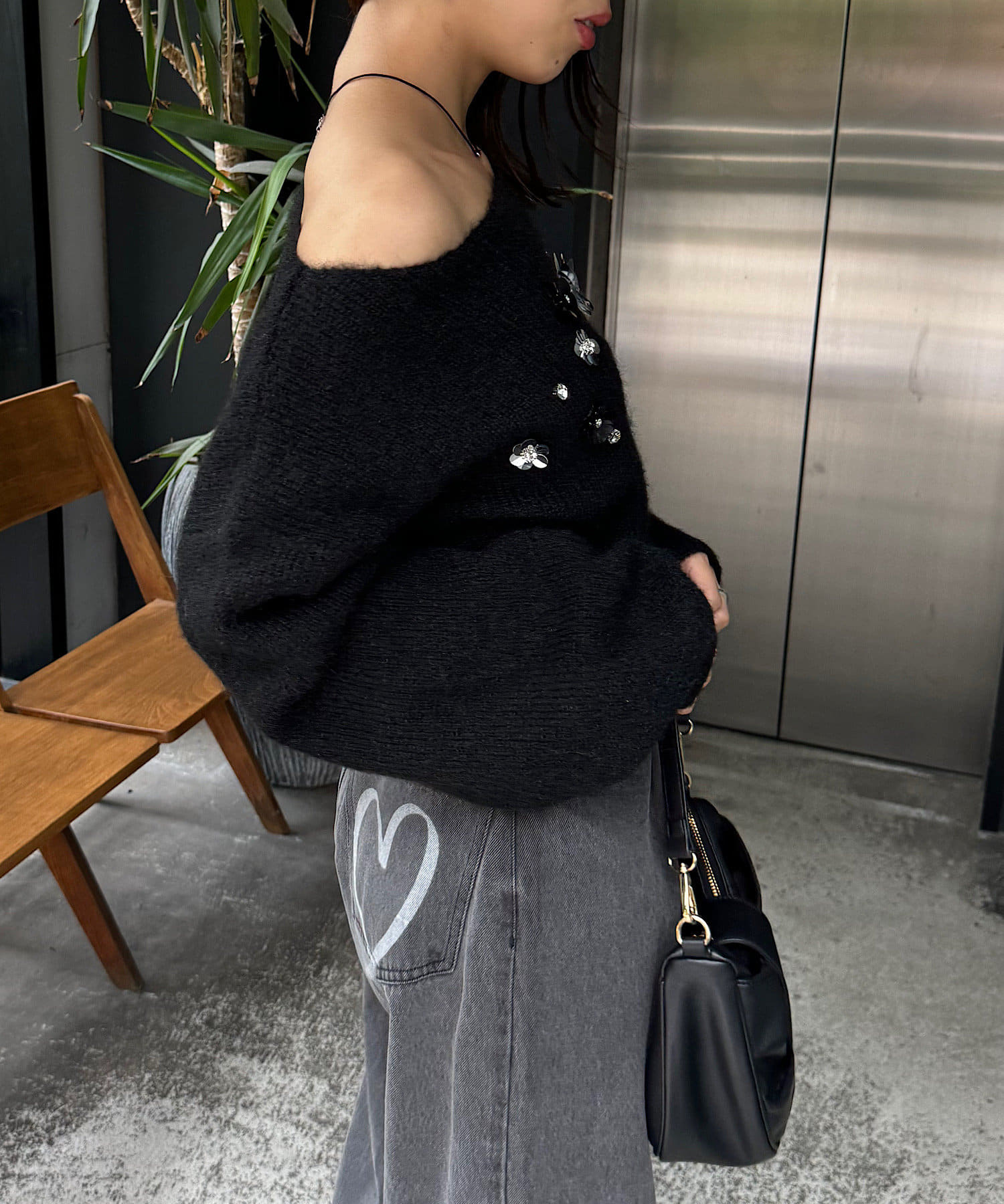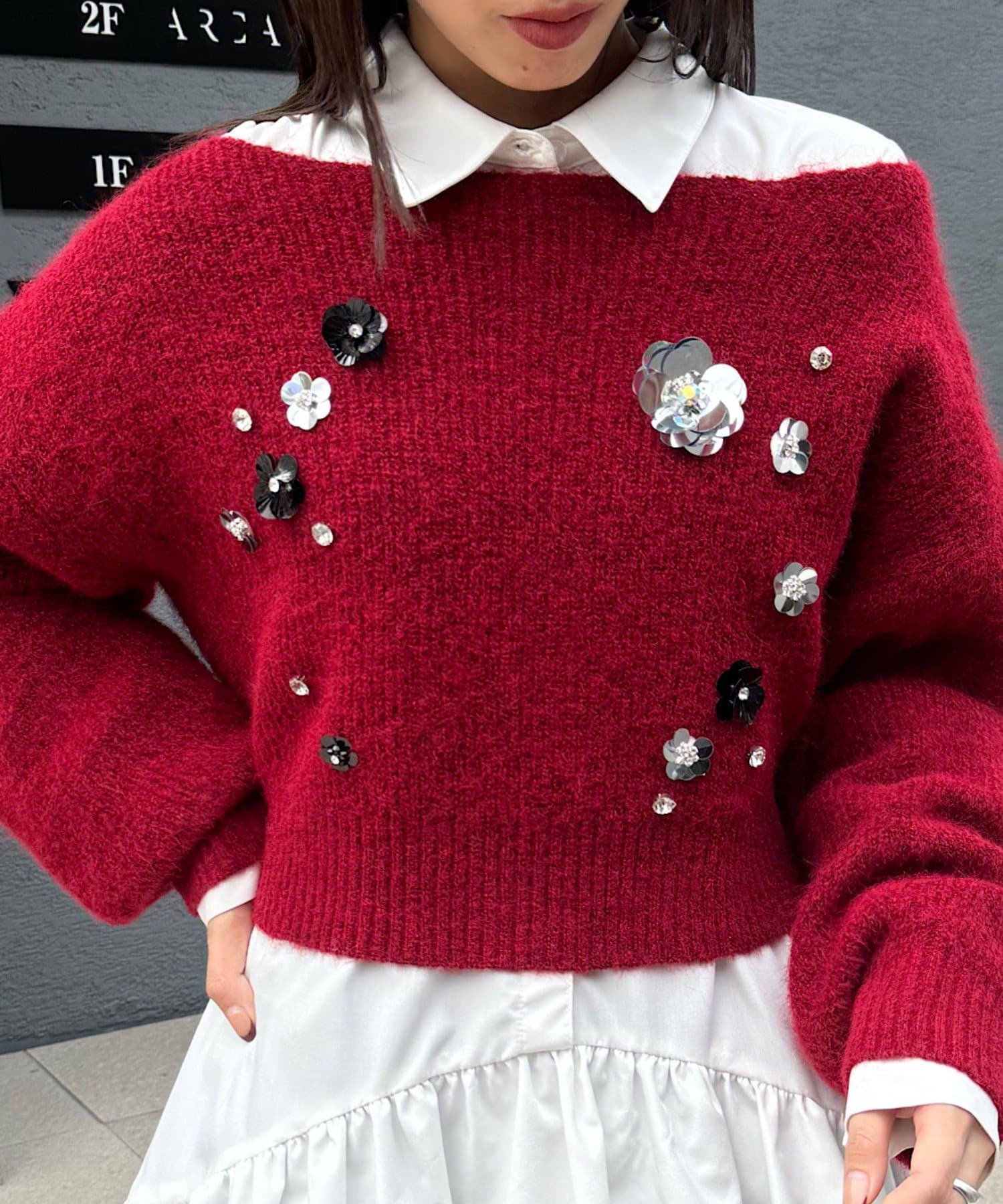 フラワービジューが目を惹くオフショルモチモチニット♡