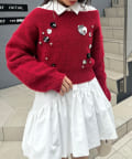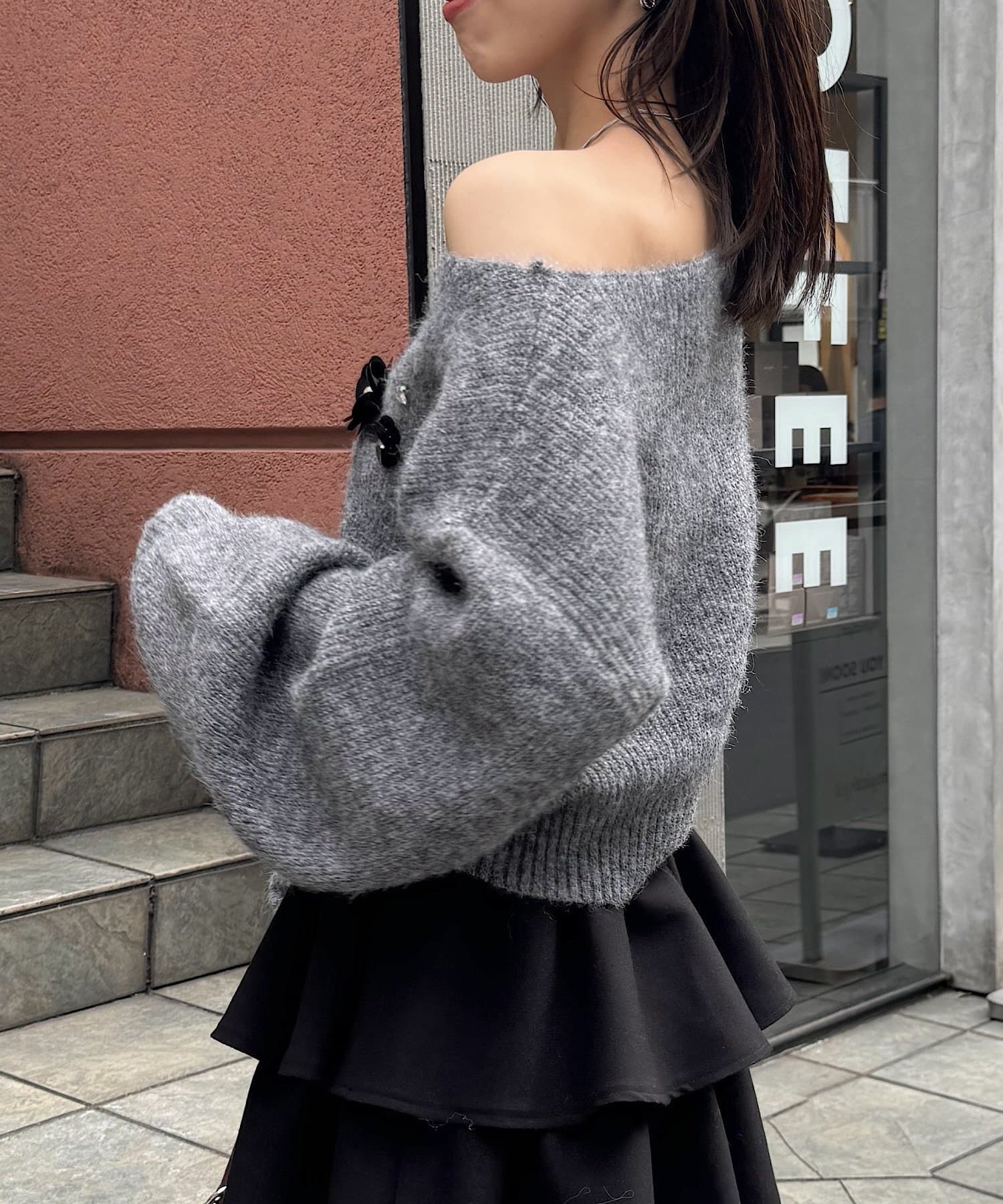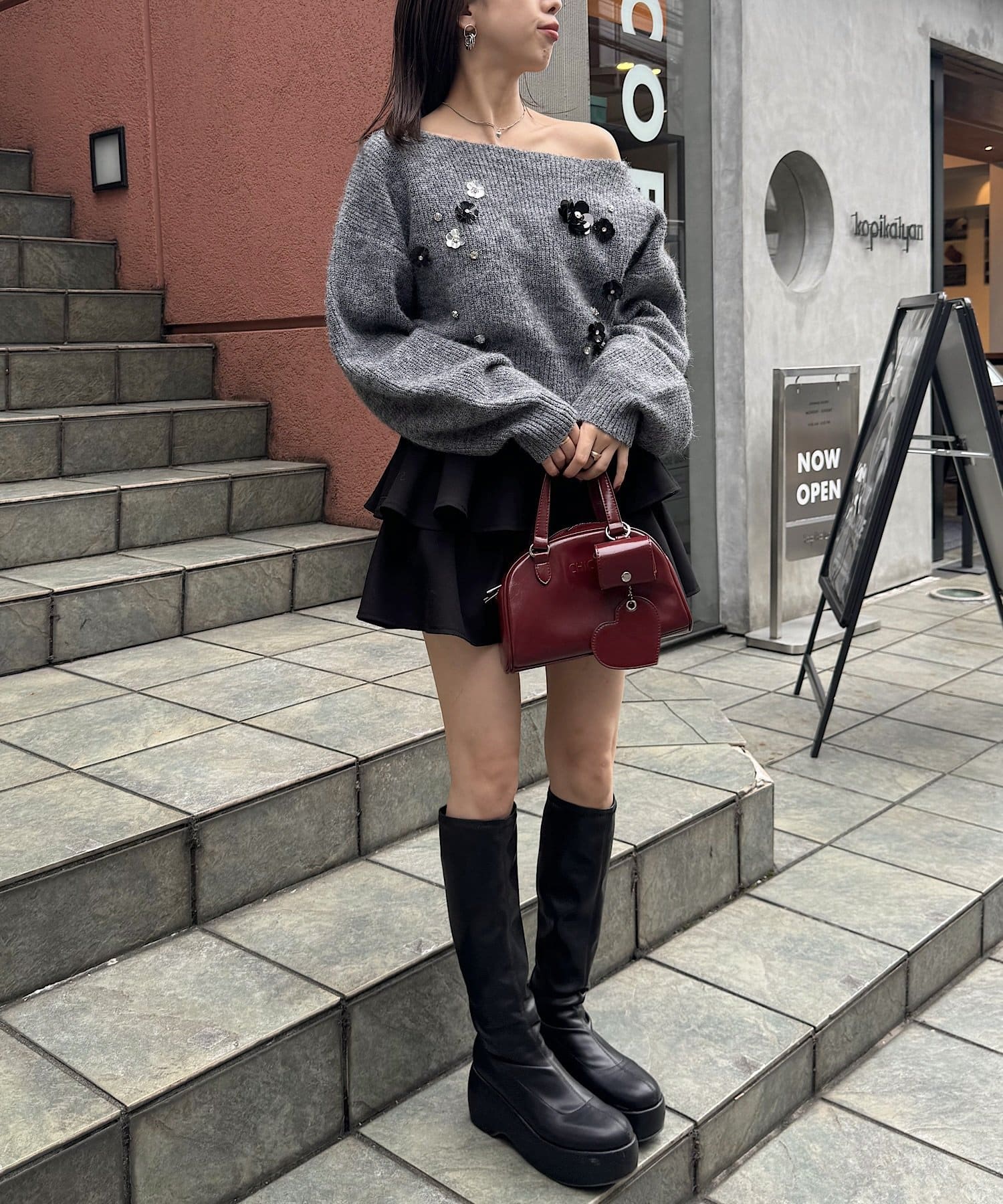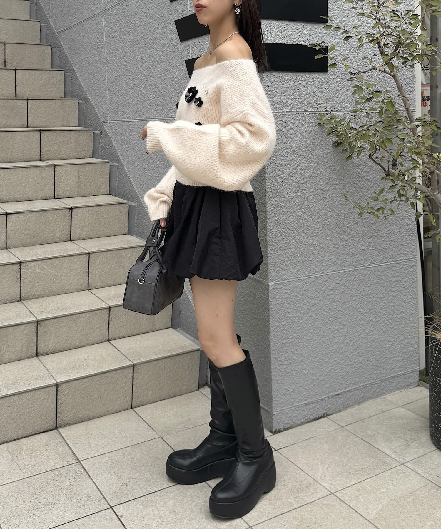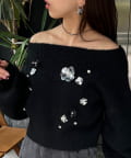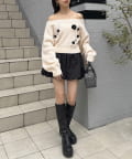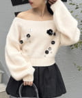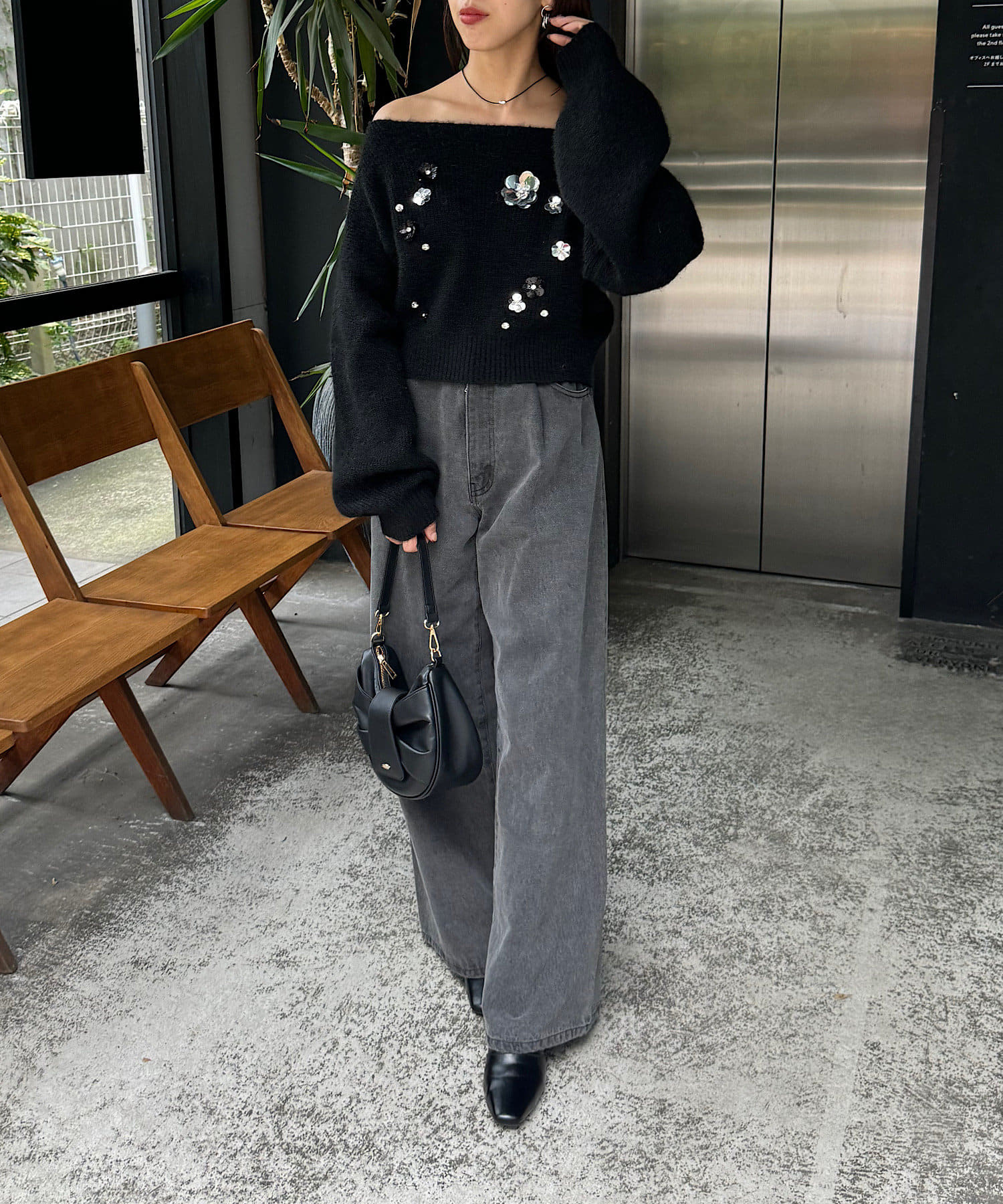 フラワービジューが目を惹くオフショルモチモチニット♡