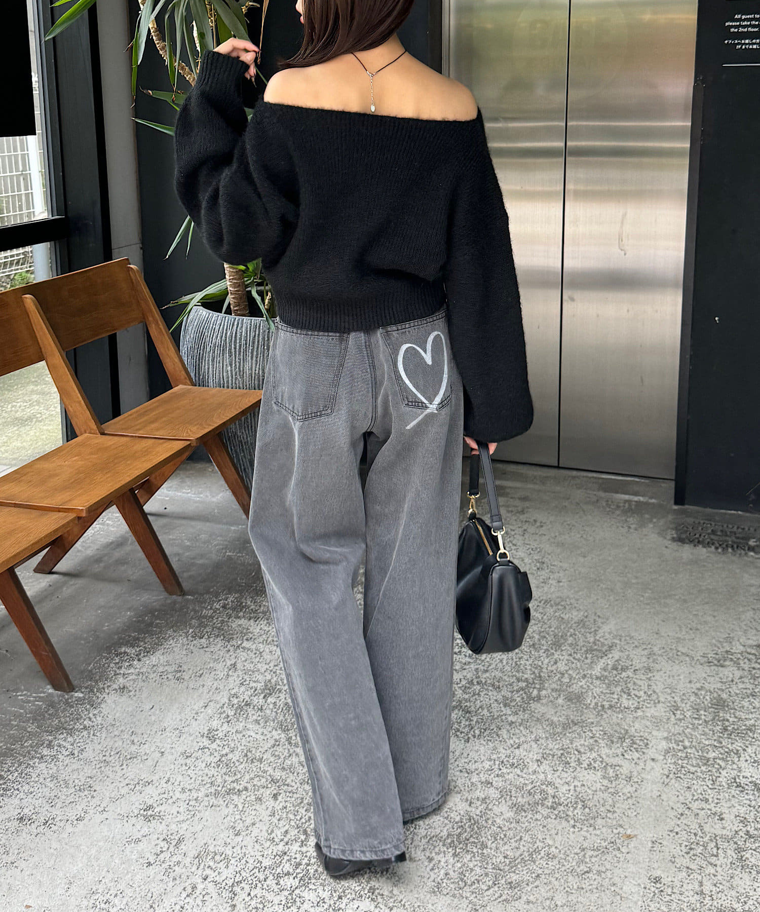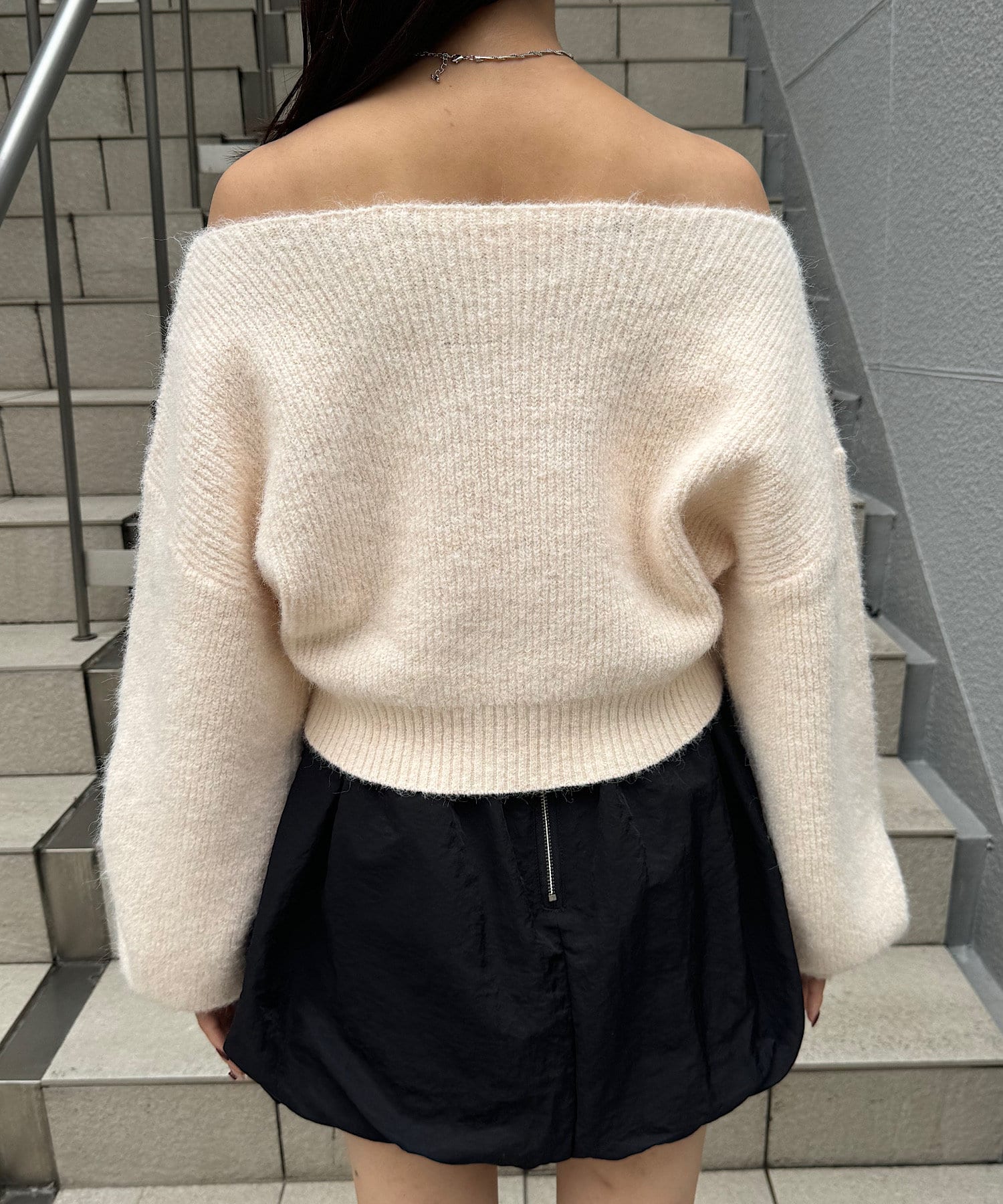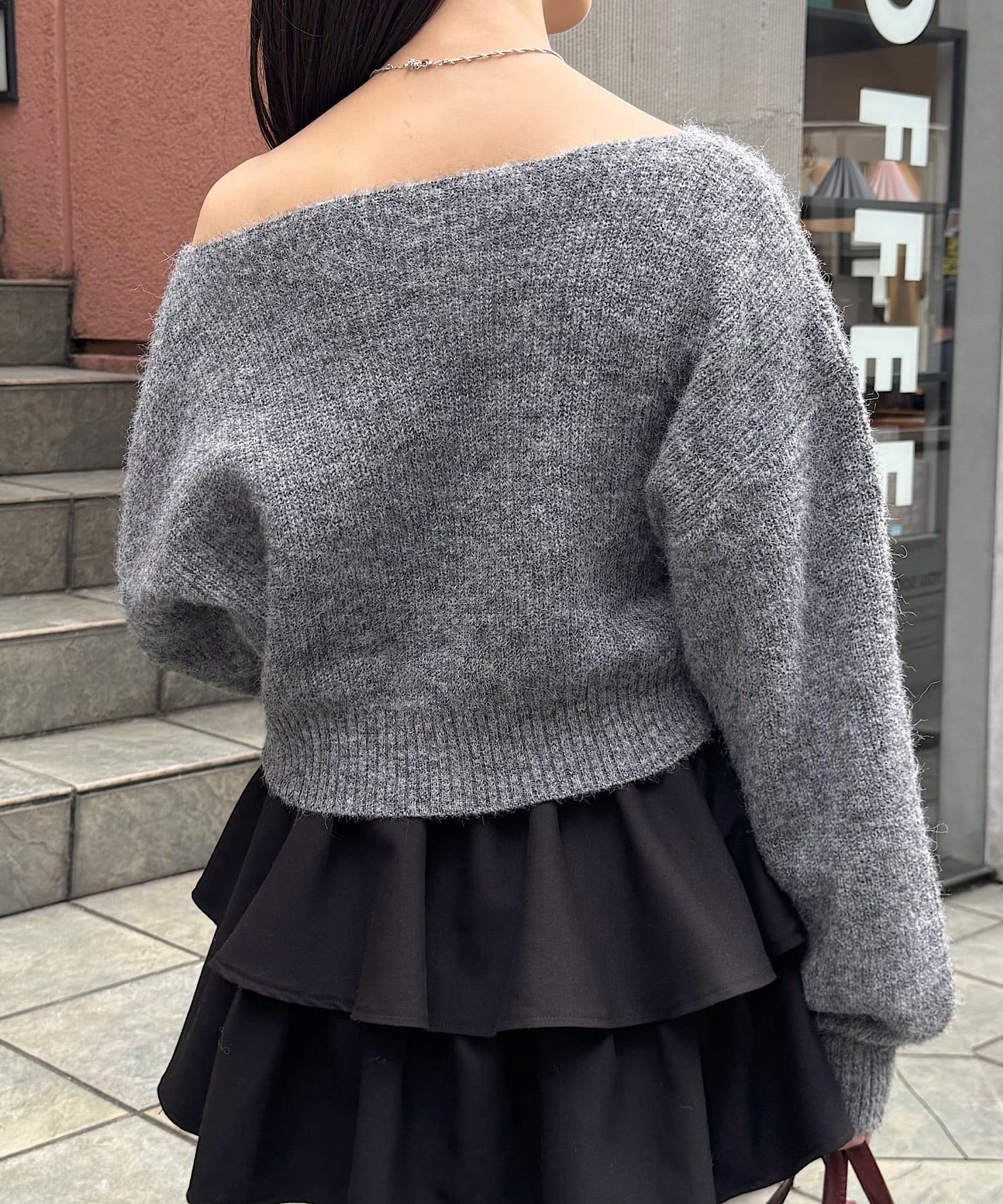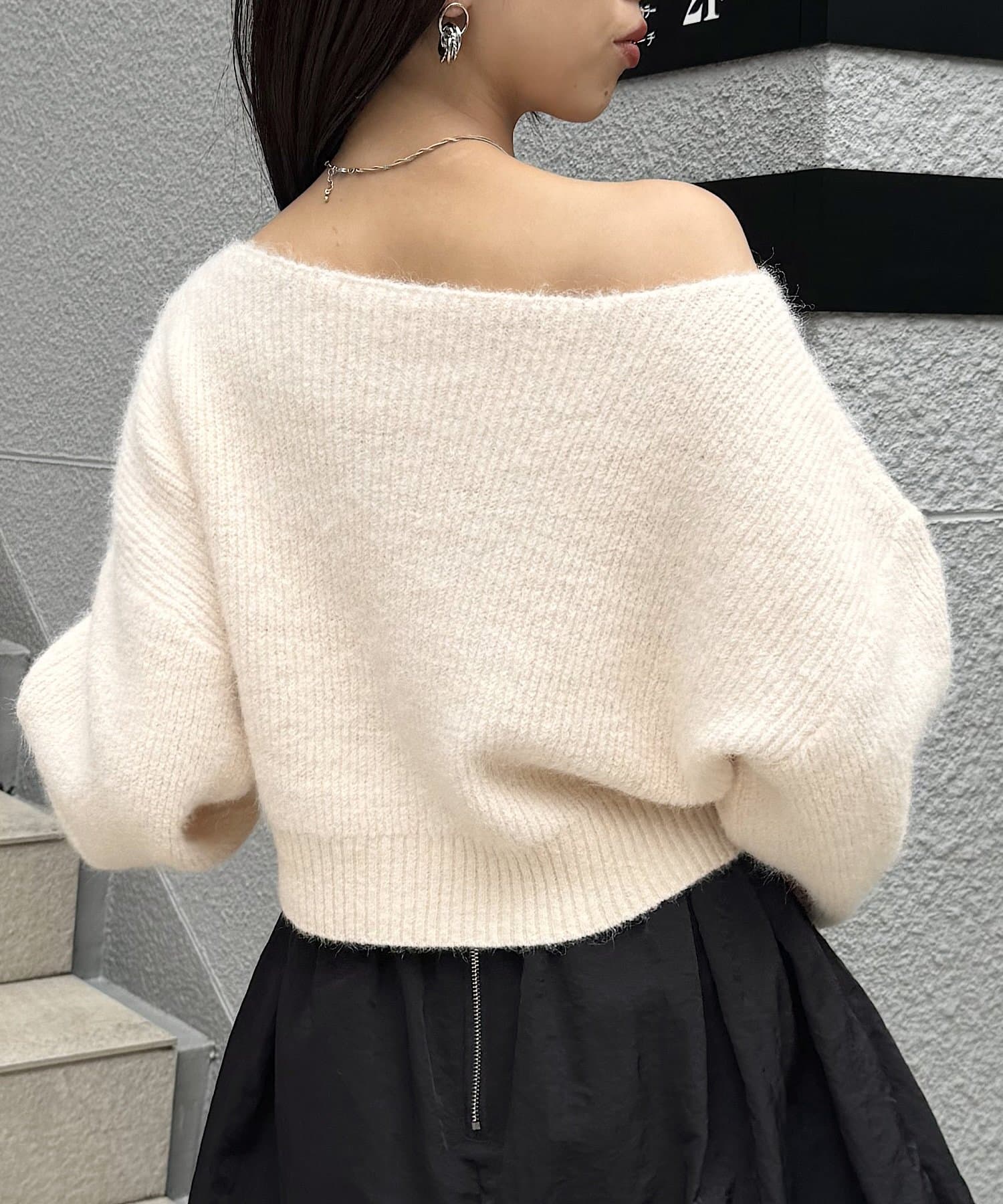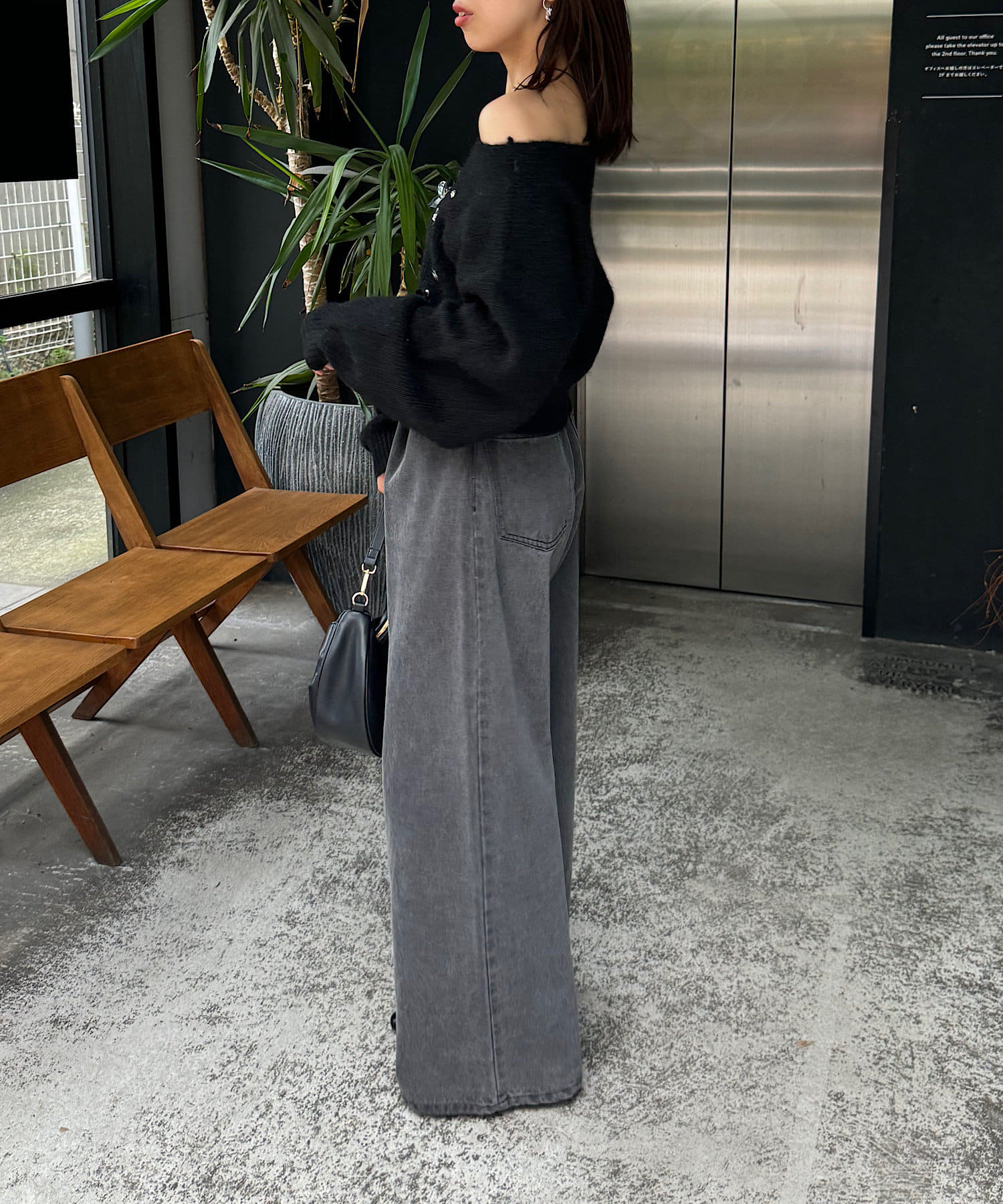 フラワービジューが目を惹くオフショルモチモチニット♡