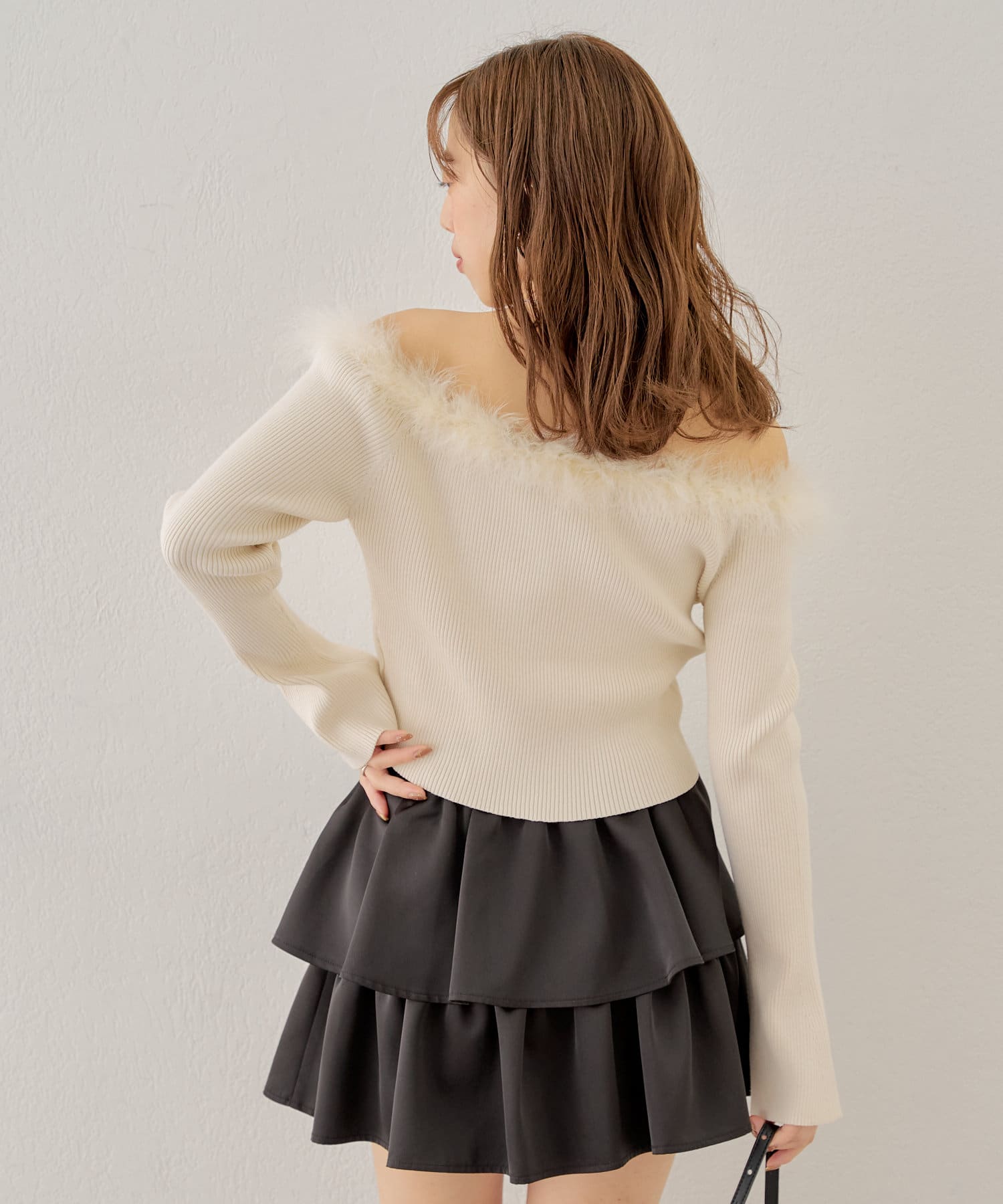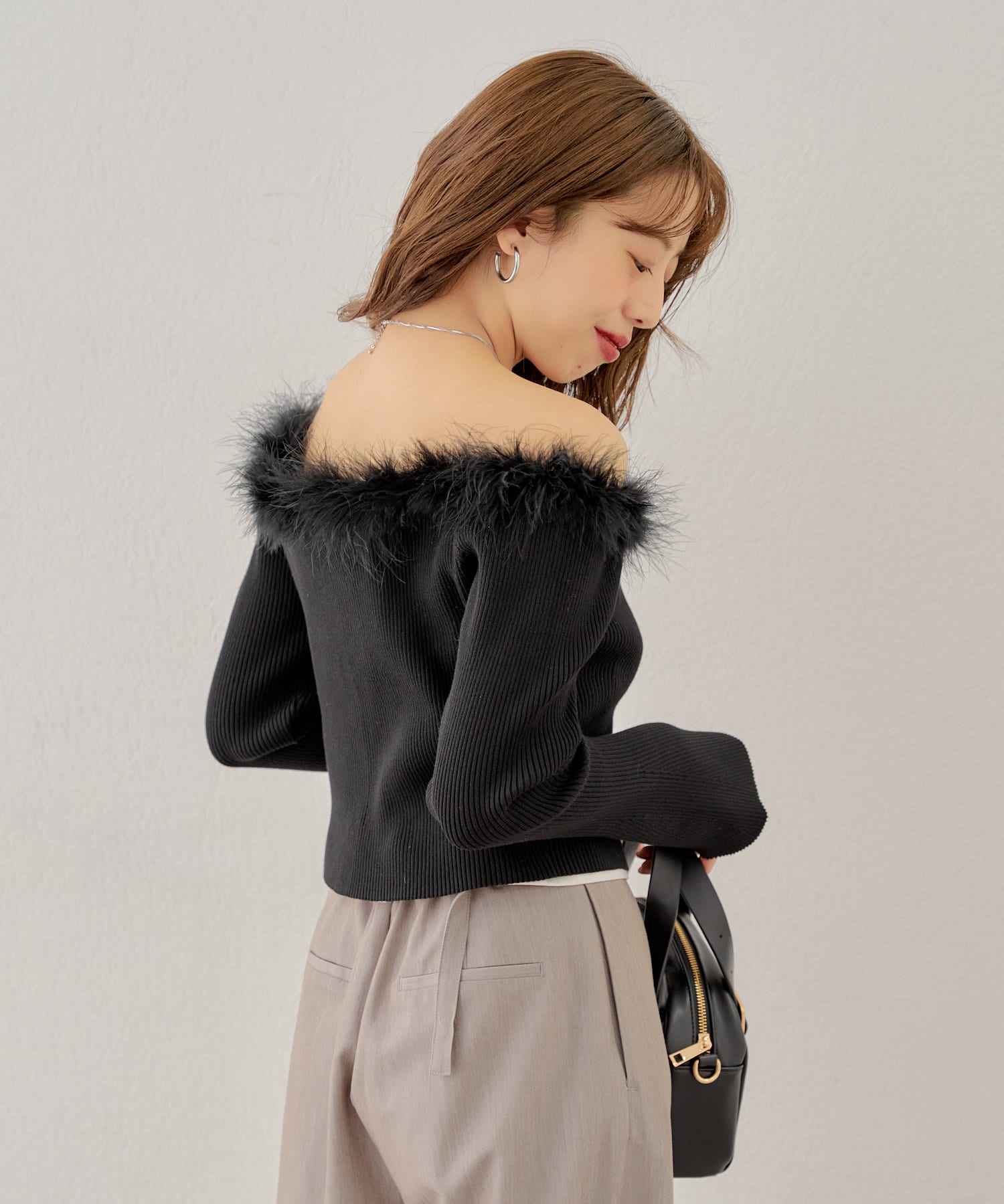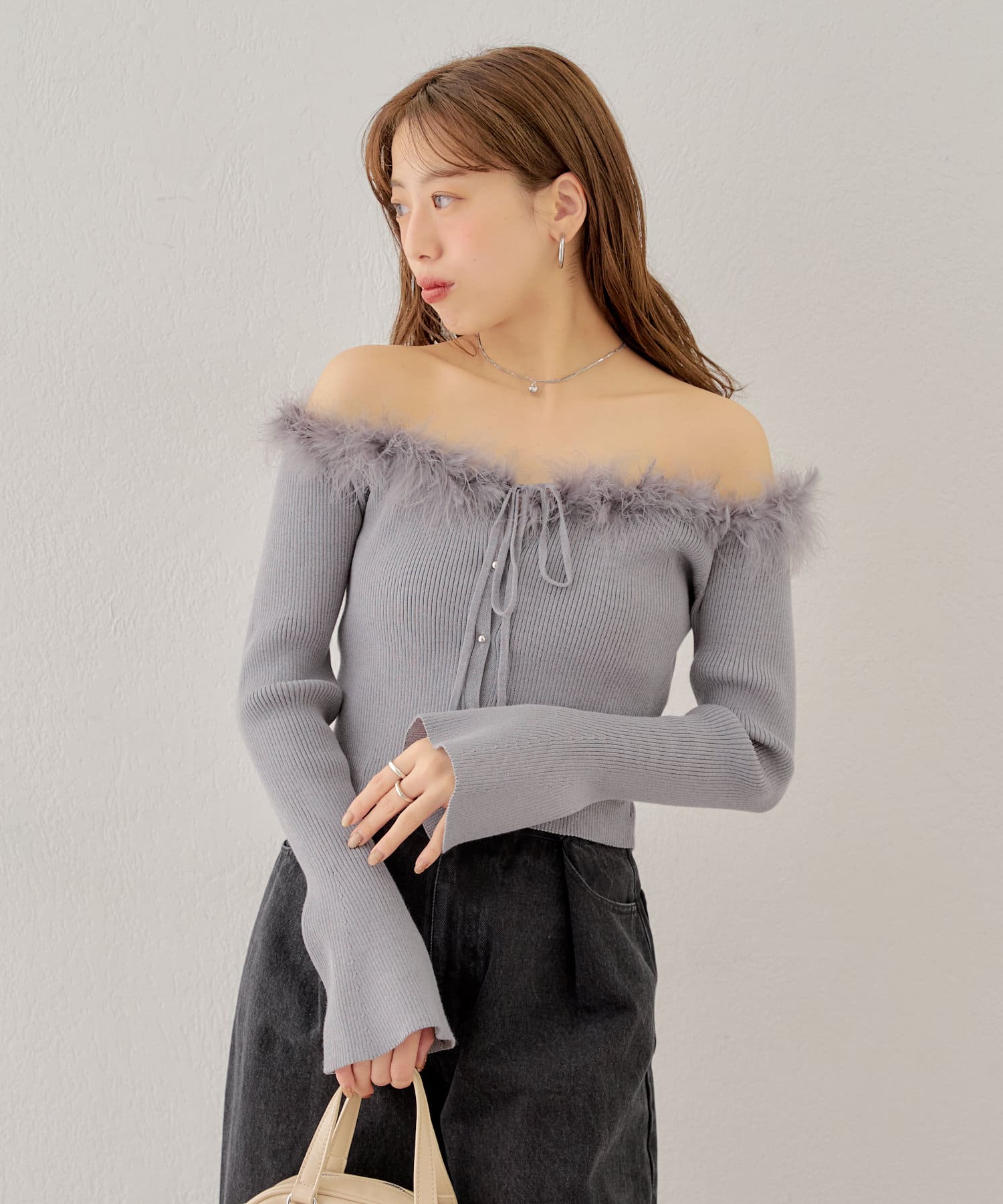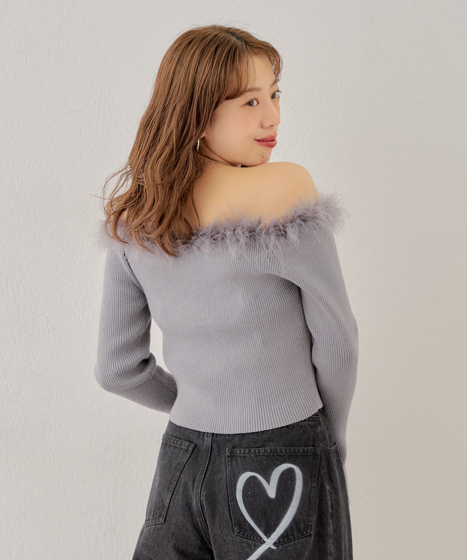 ほど良く肌見せ叶うファーオフショルが可愛いモテリブニット登場