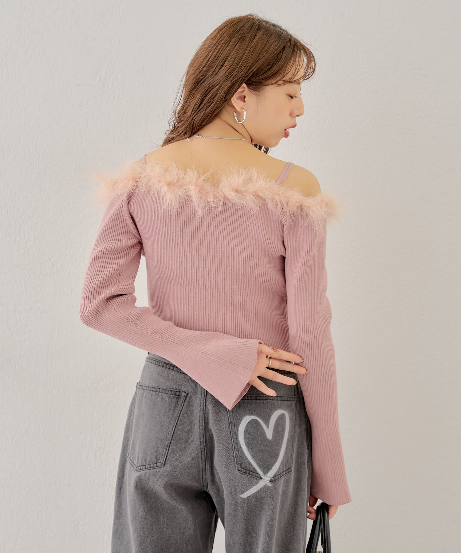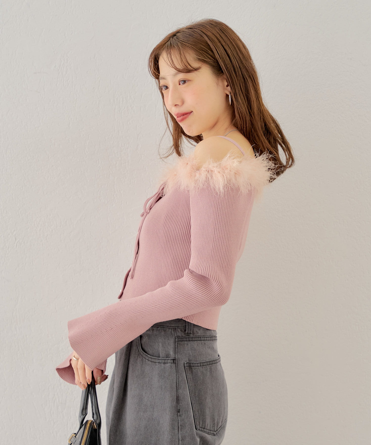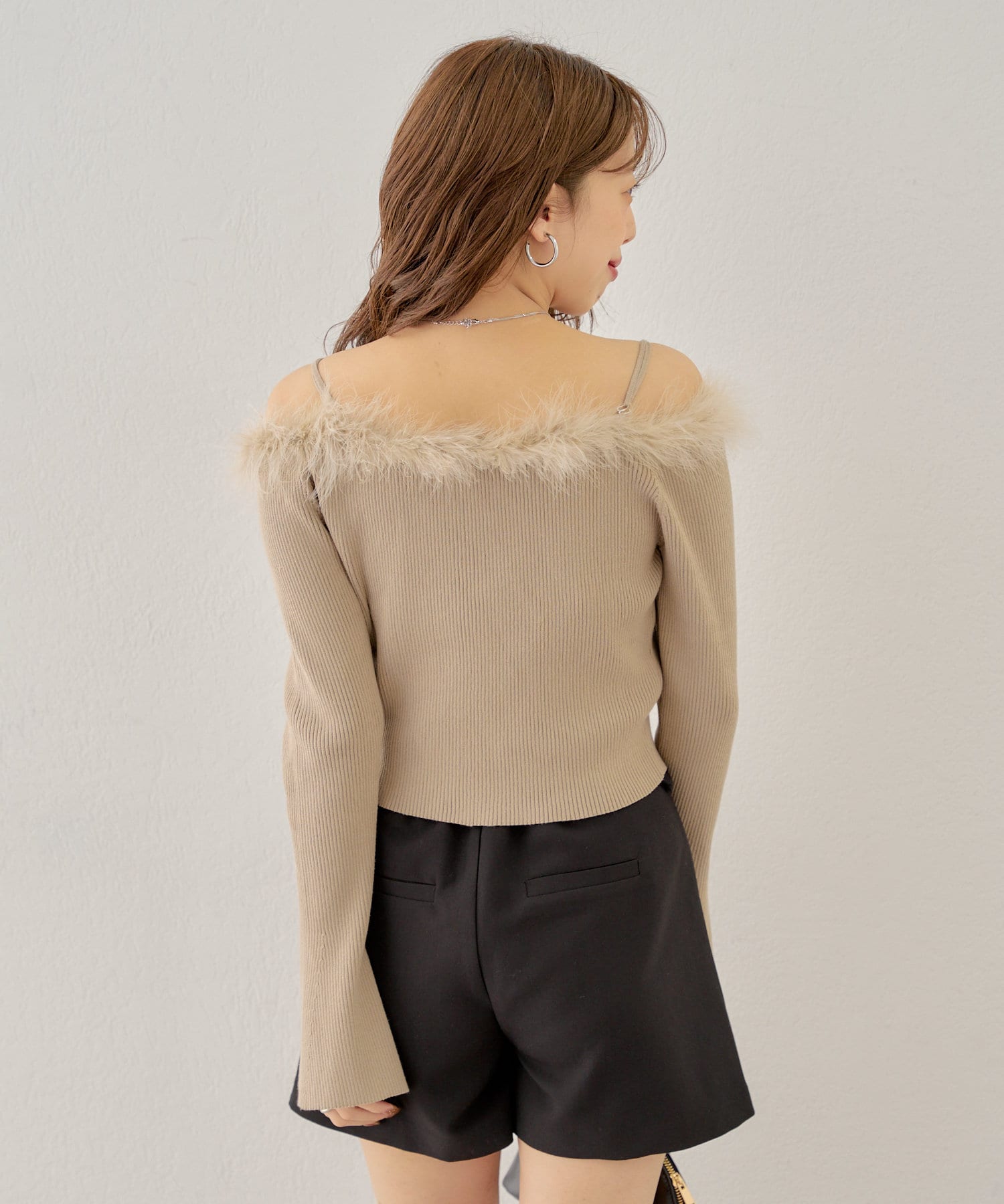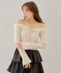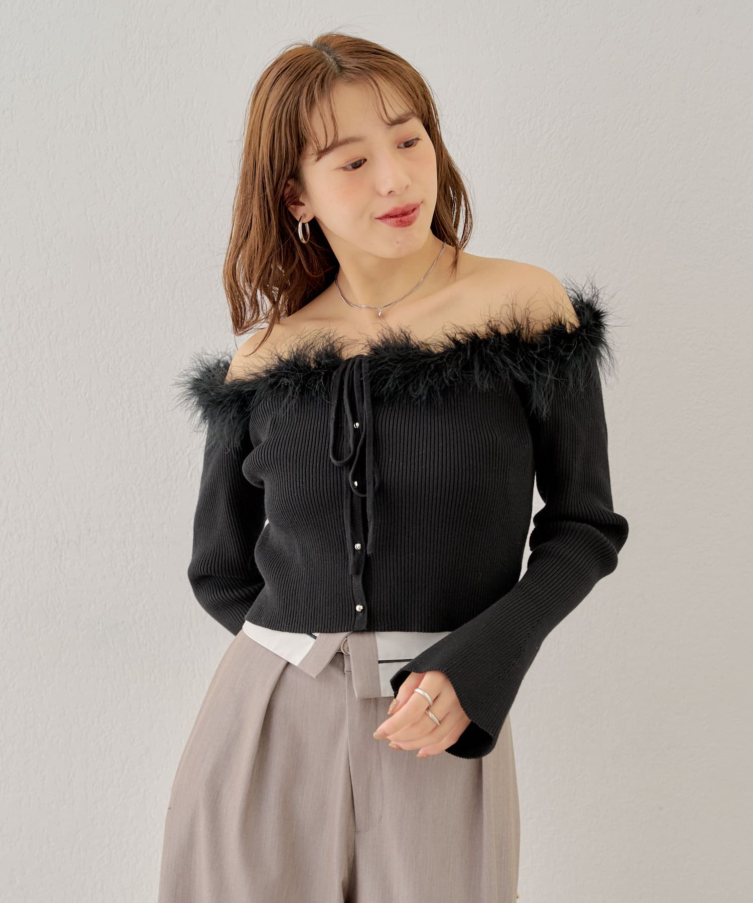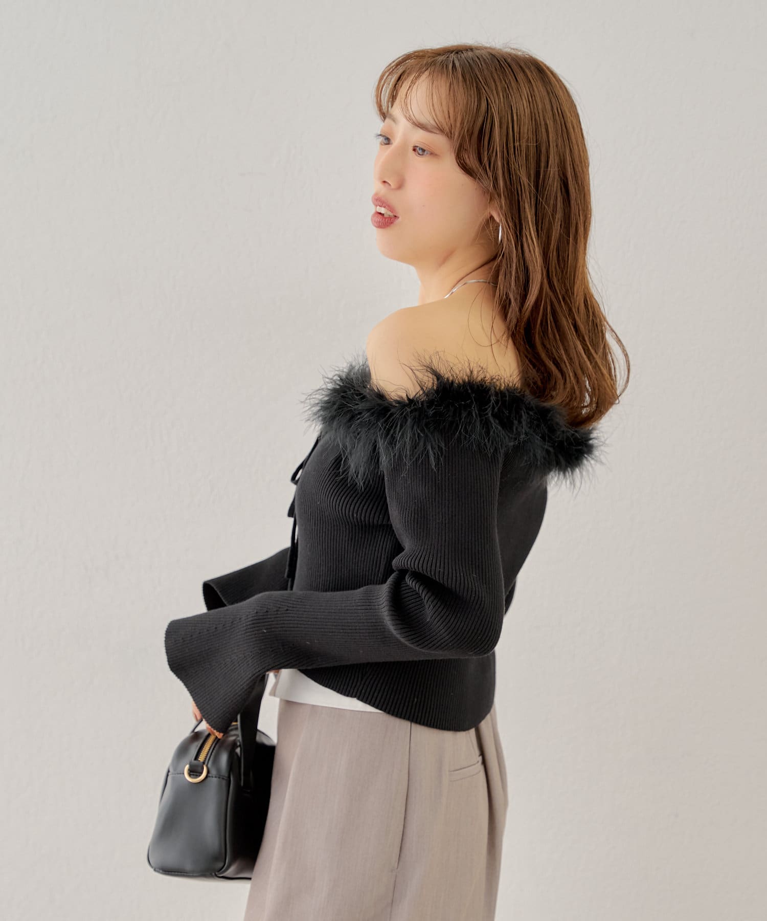 ほど良く肌見せ叶うファーオフショルが可愛いモテリブニット登場