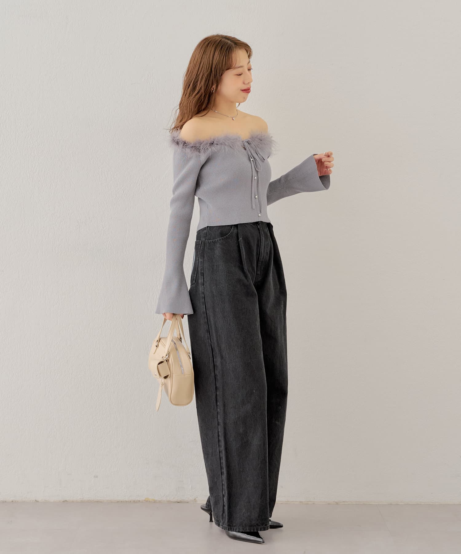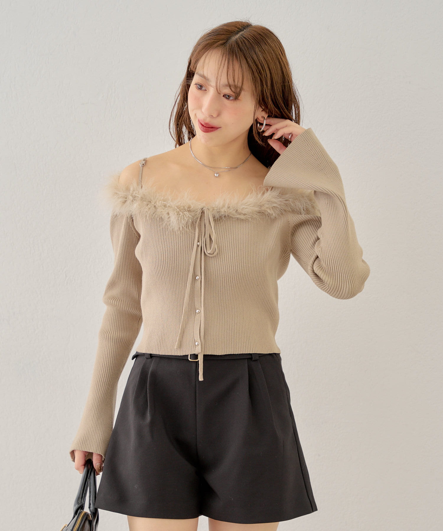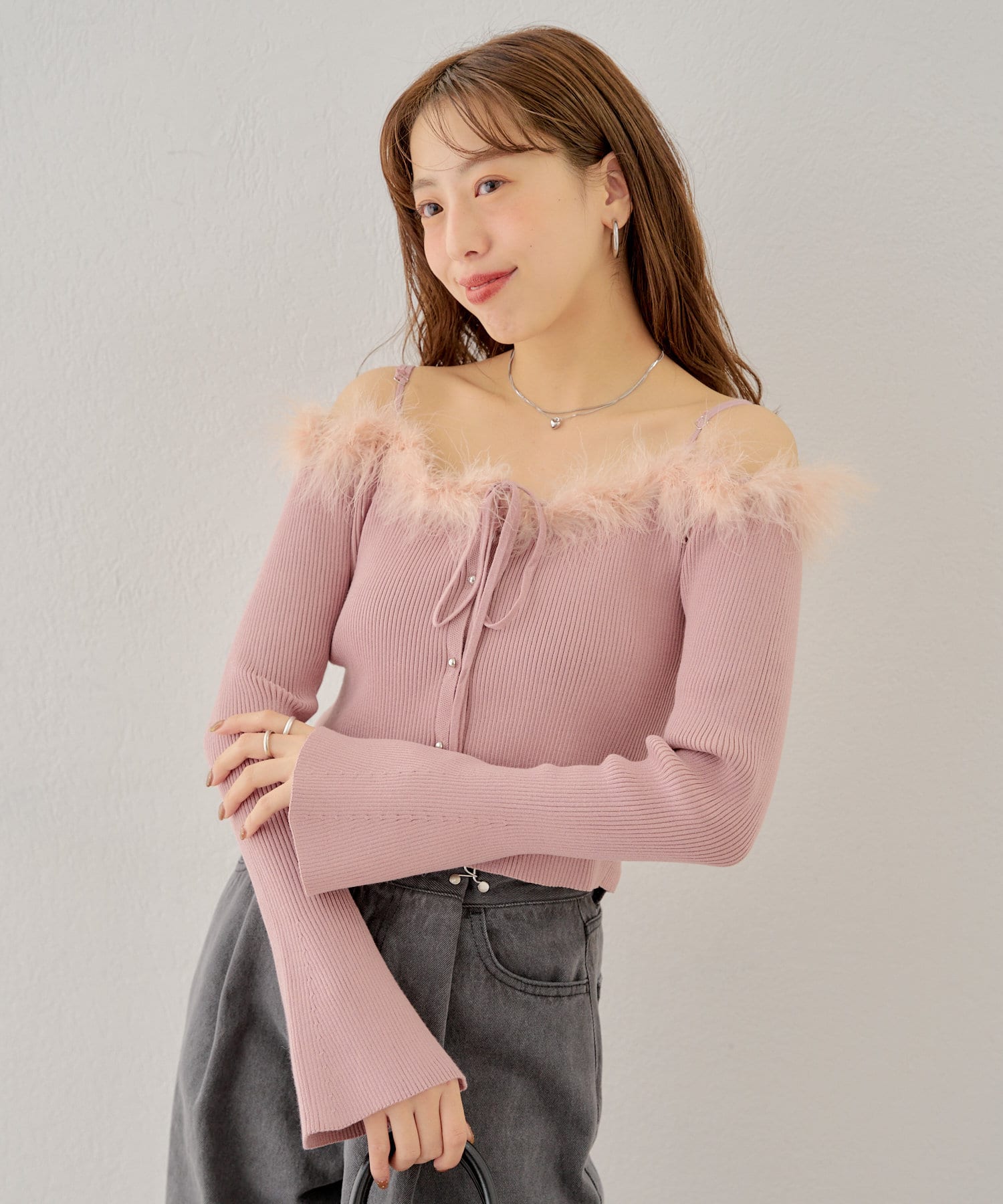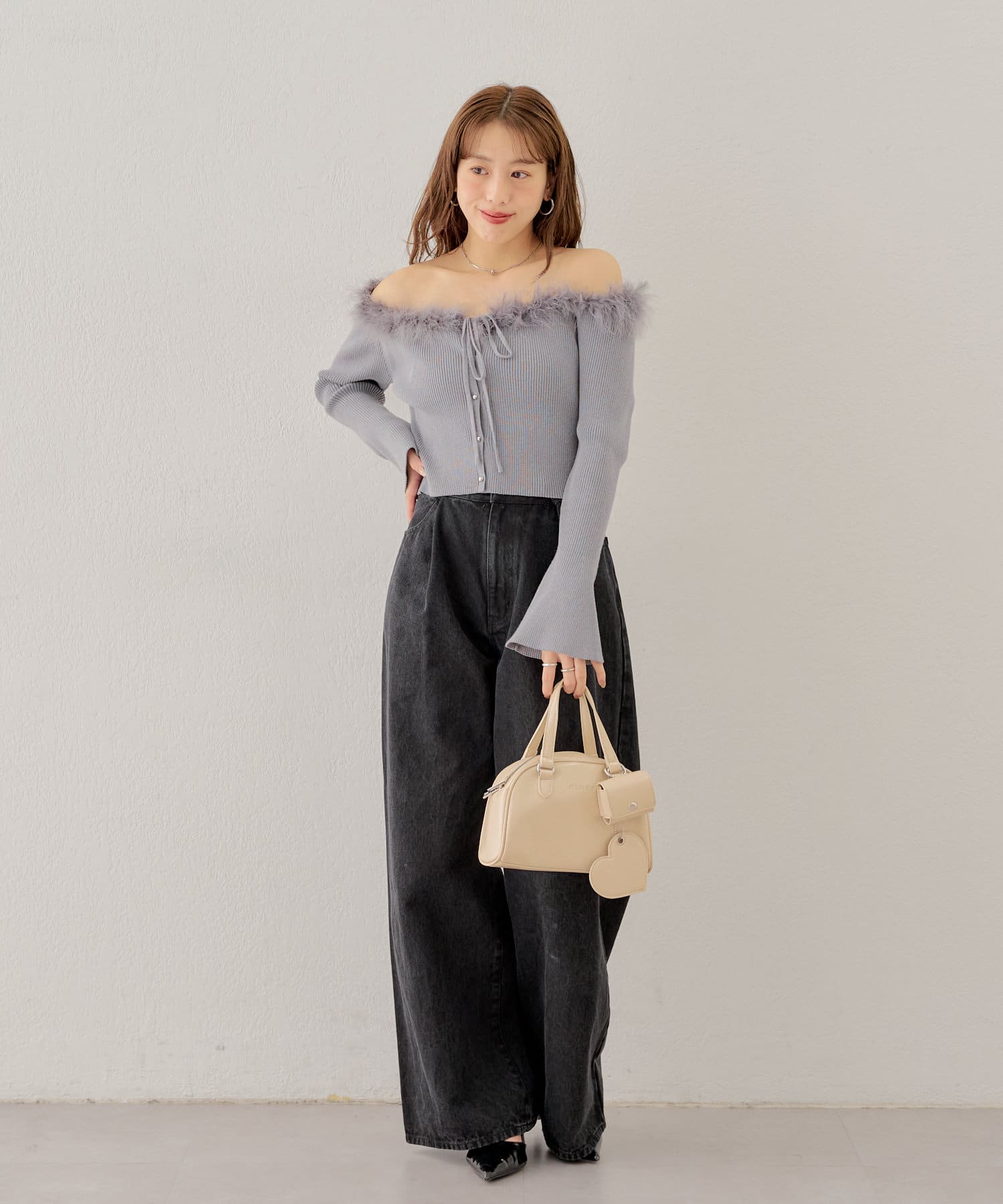 ほど良く肌見せ叶うファーオフショルが可愛いモテリブニット登場