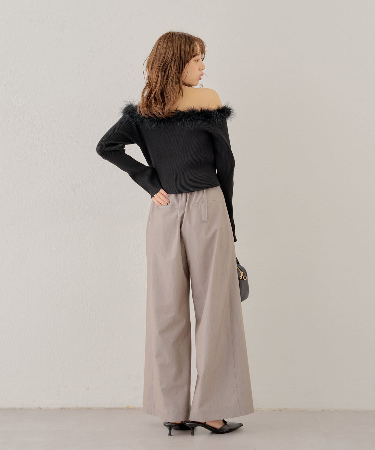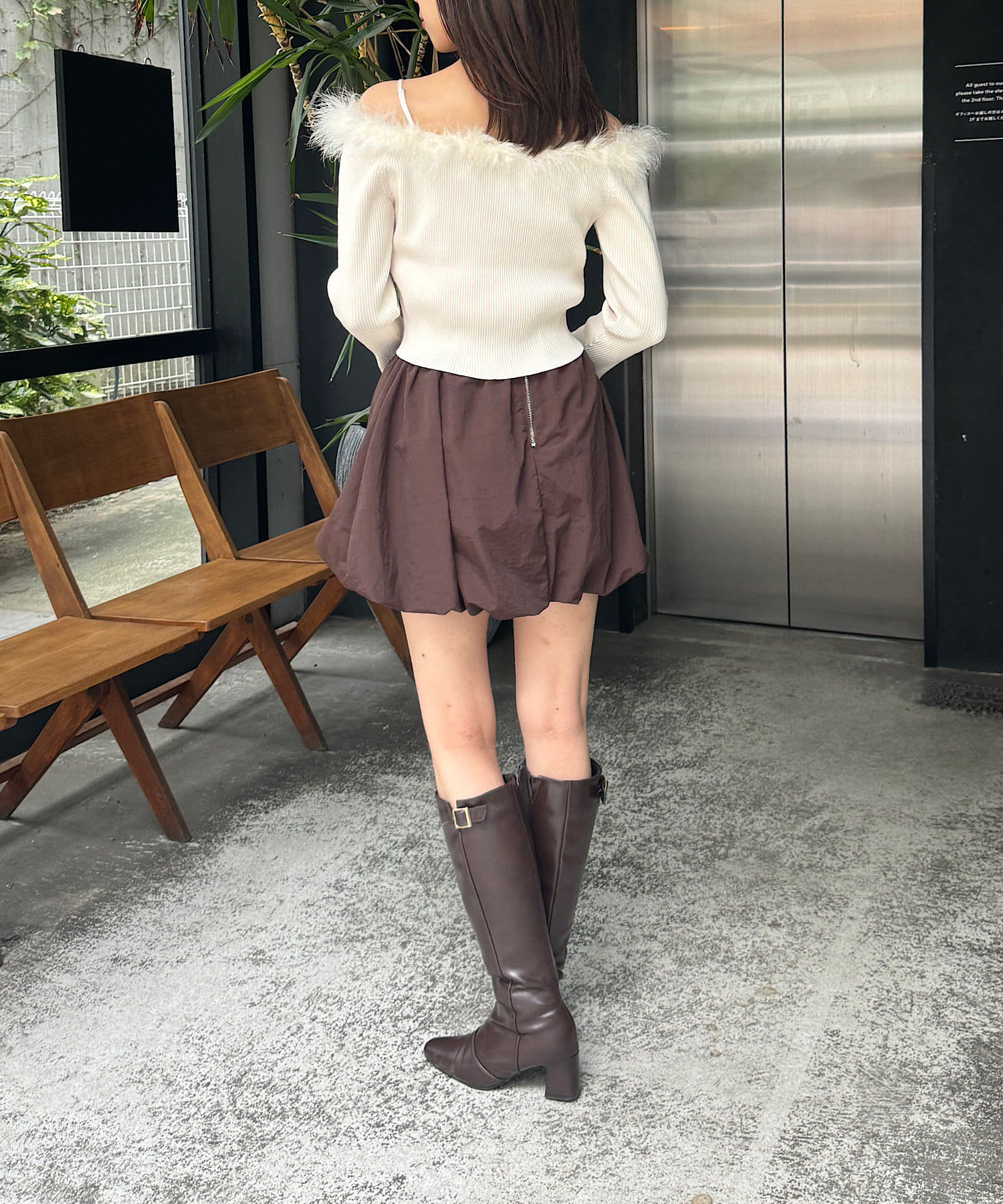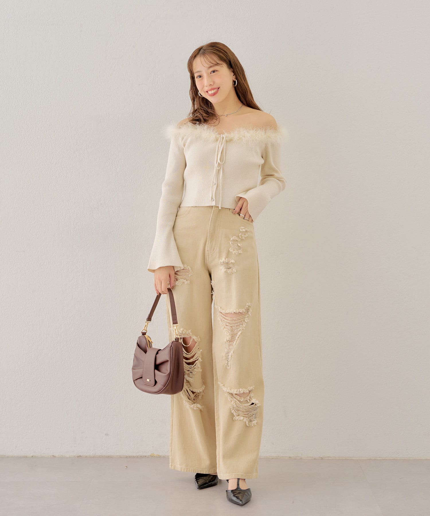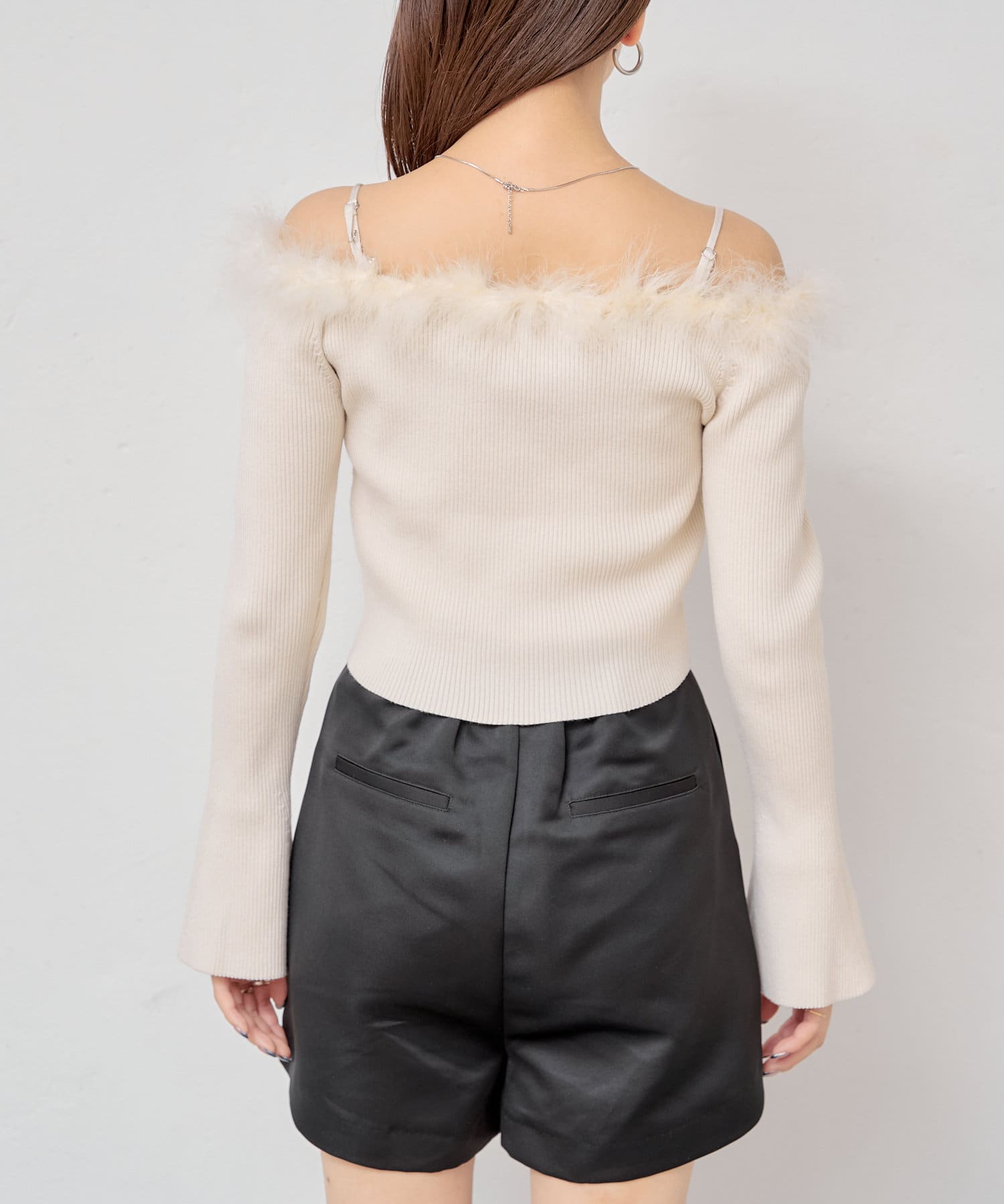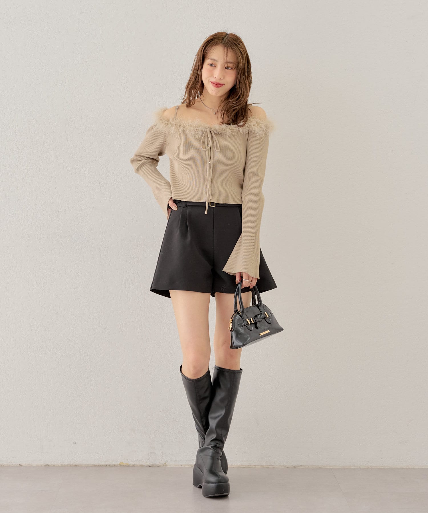 ほど良く肌見せ叶うファーオフショルが可愛いモテリブニット登場