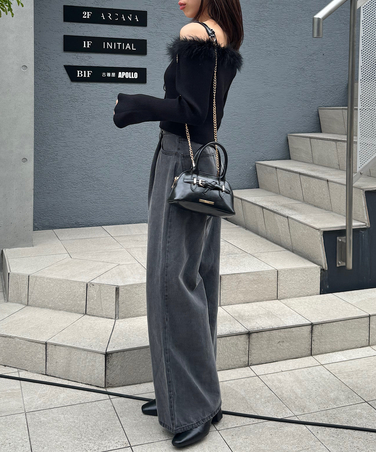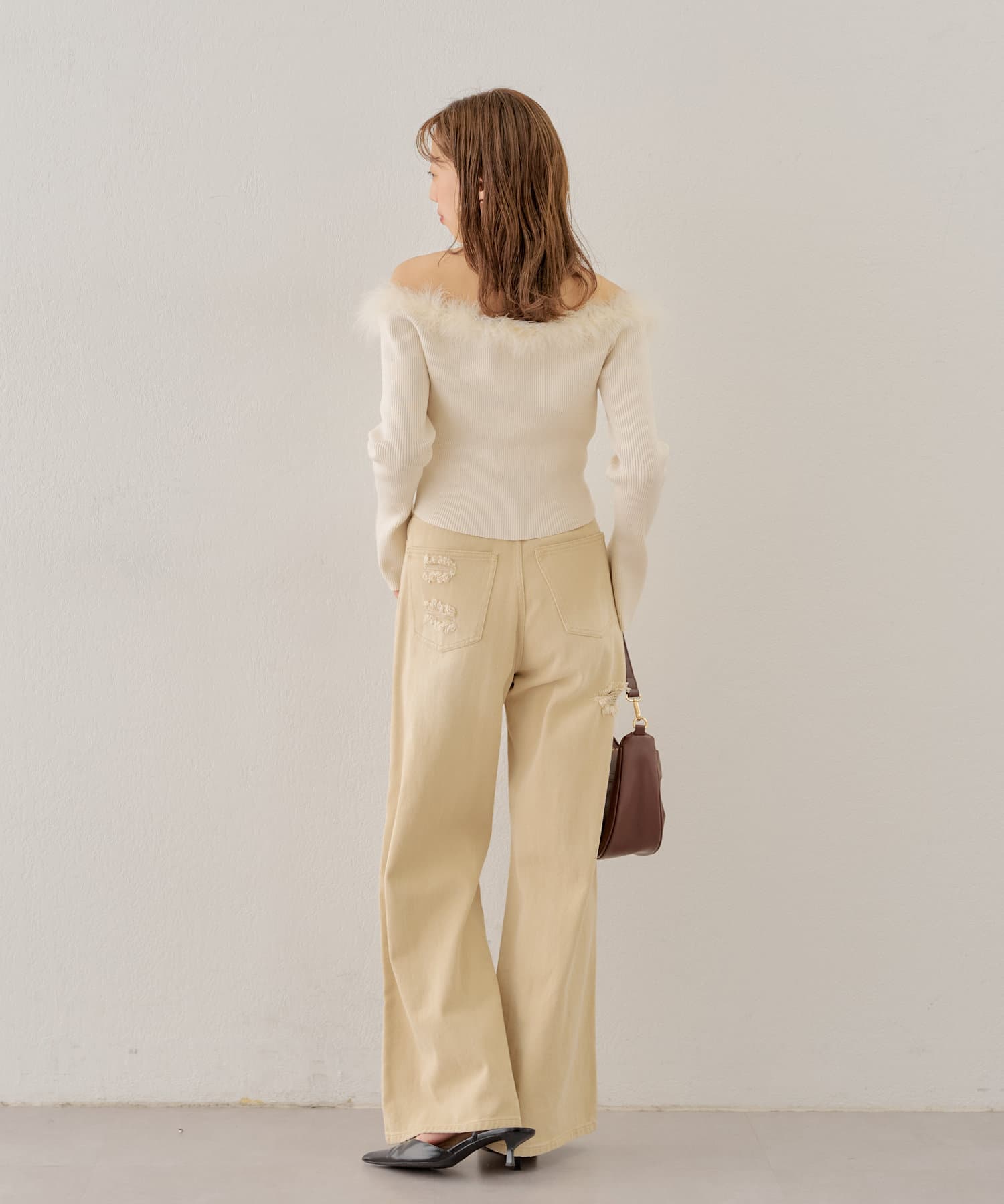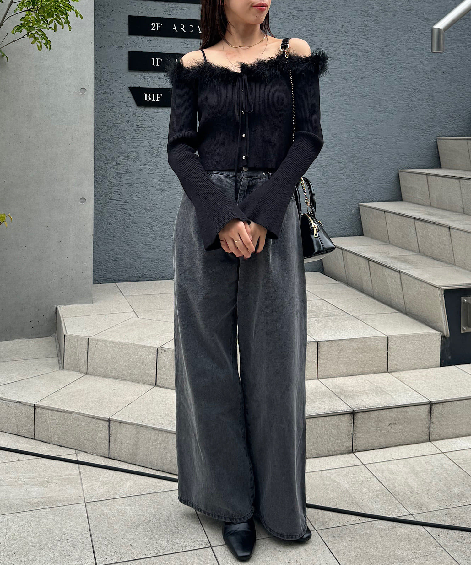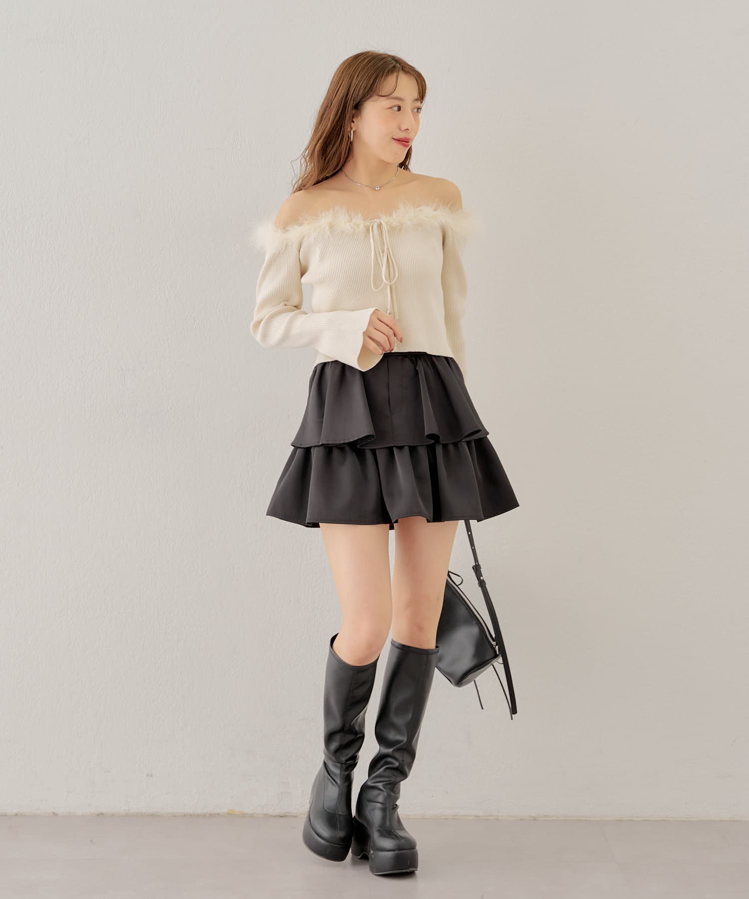 ほど良く肌見せ叶うファーオフショルが可愛いモテリブニット登場