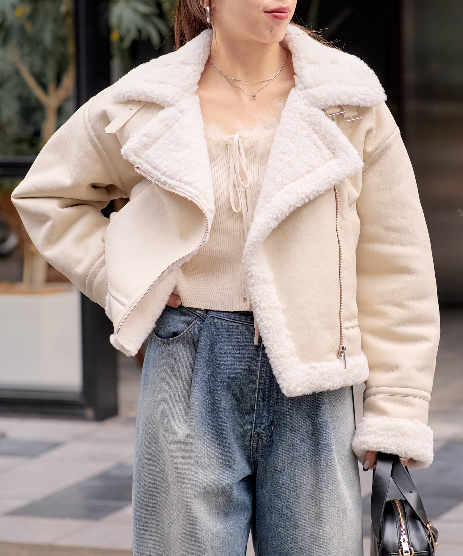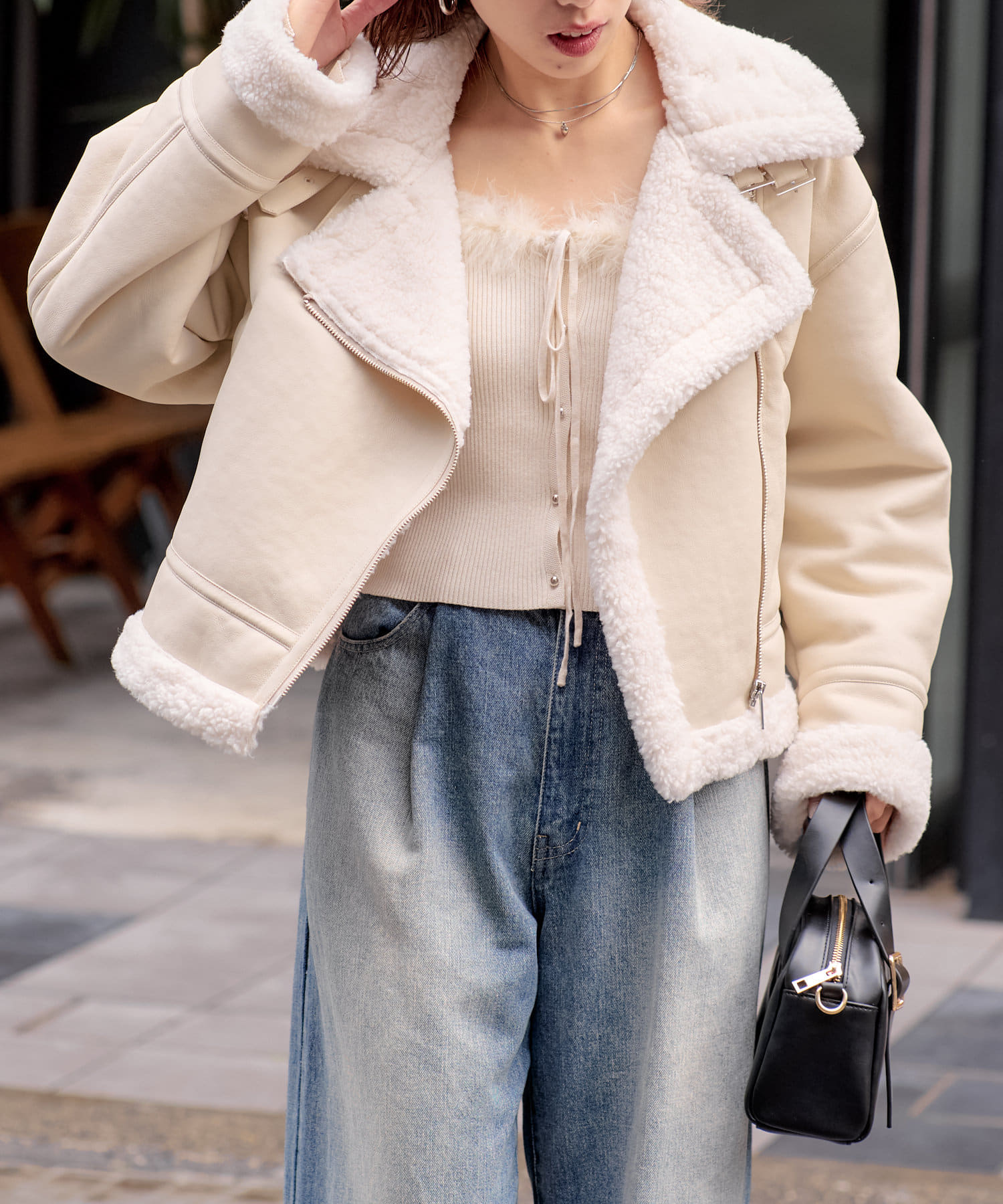 ・ミニ丈のボトムスと合わせて甘く着ていただくのがおすすめです。