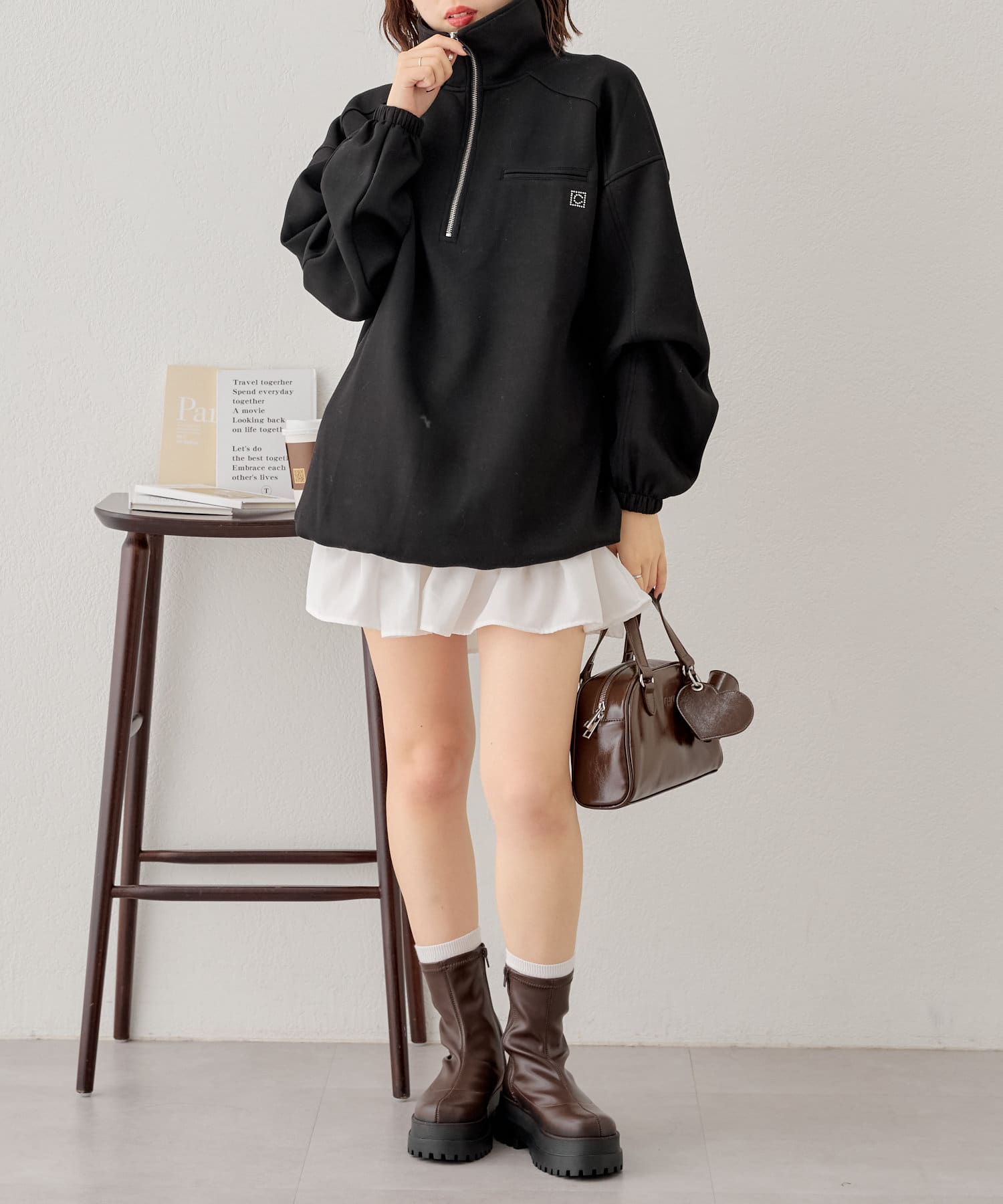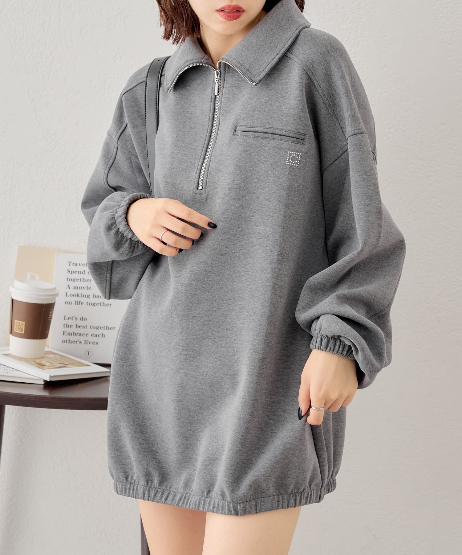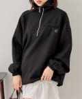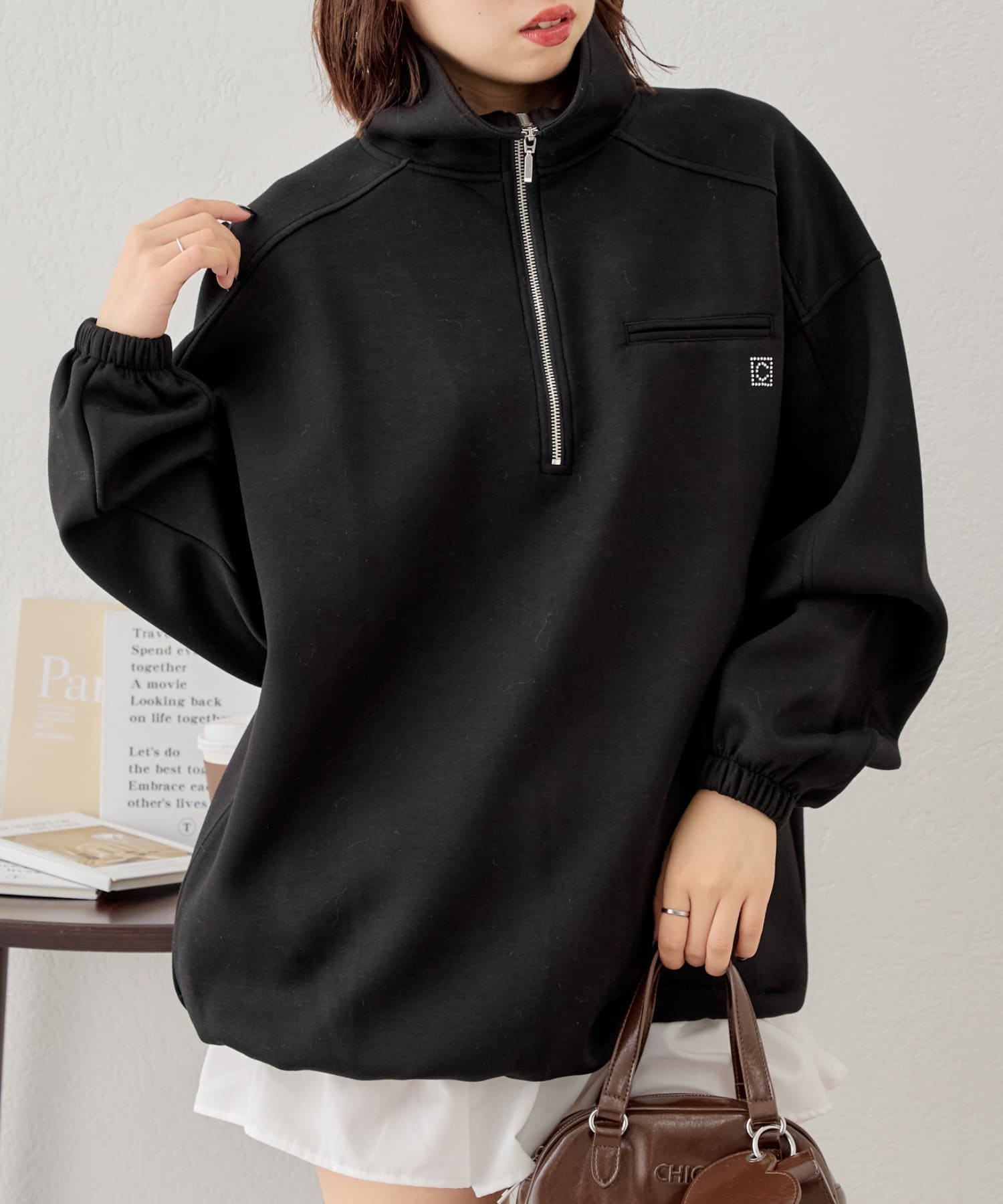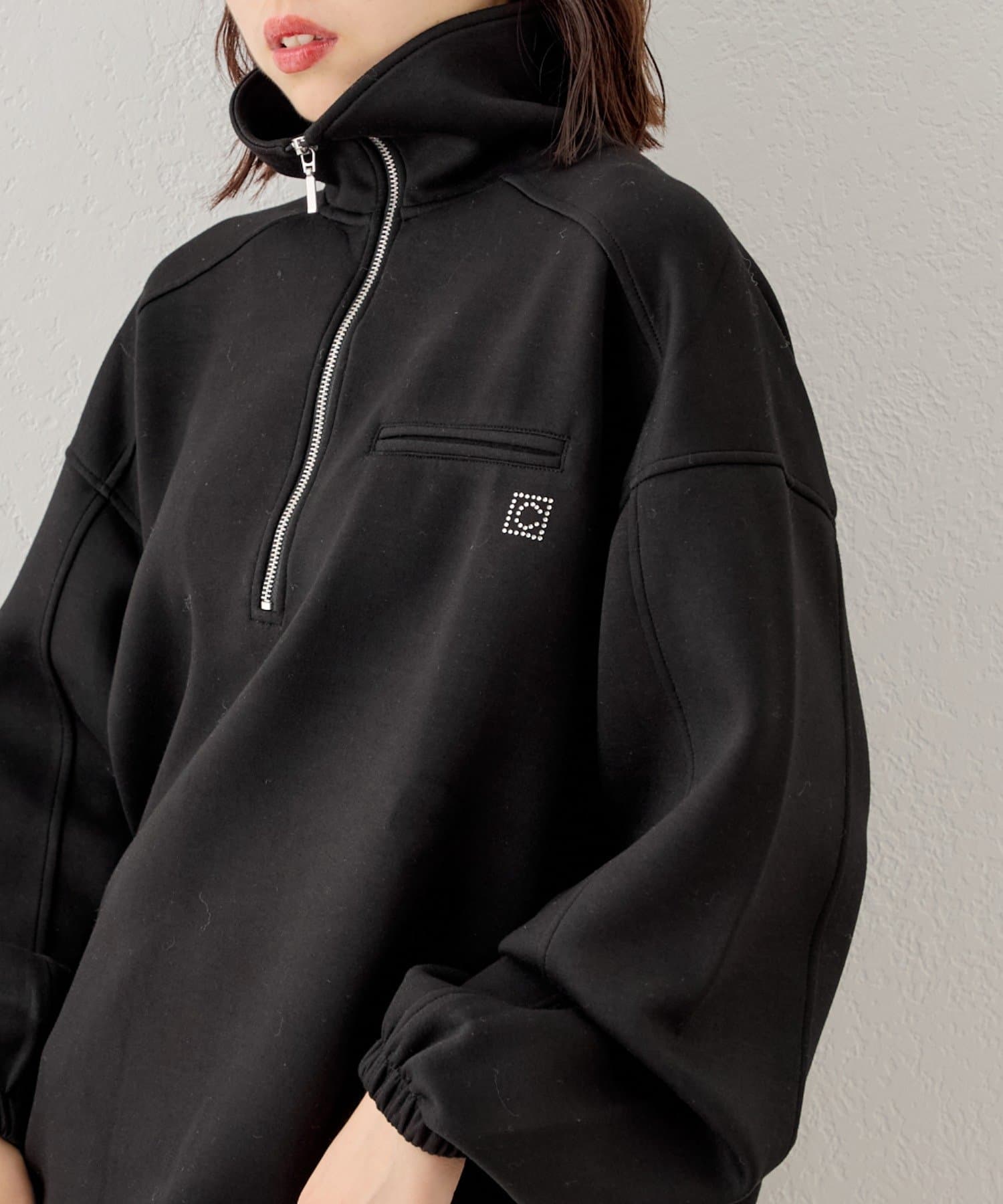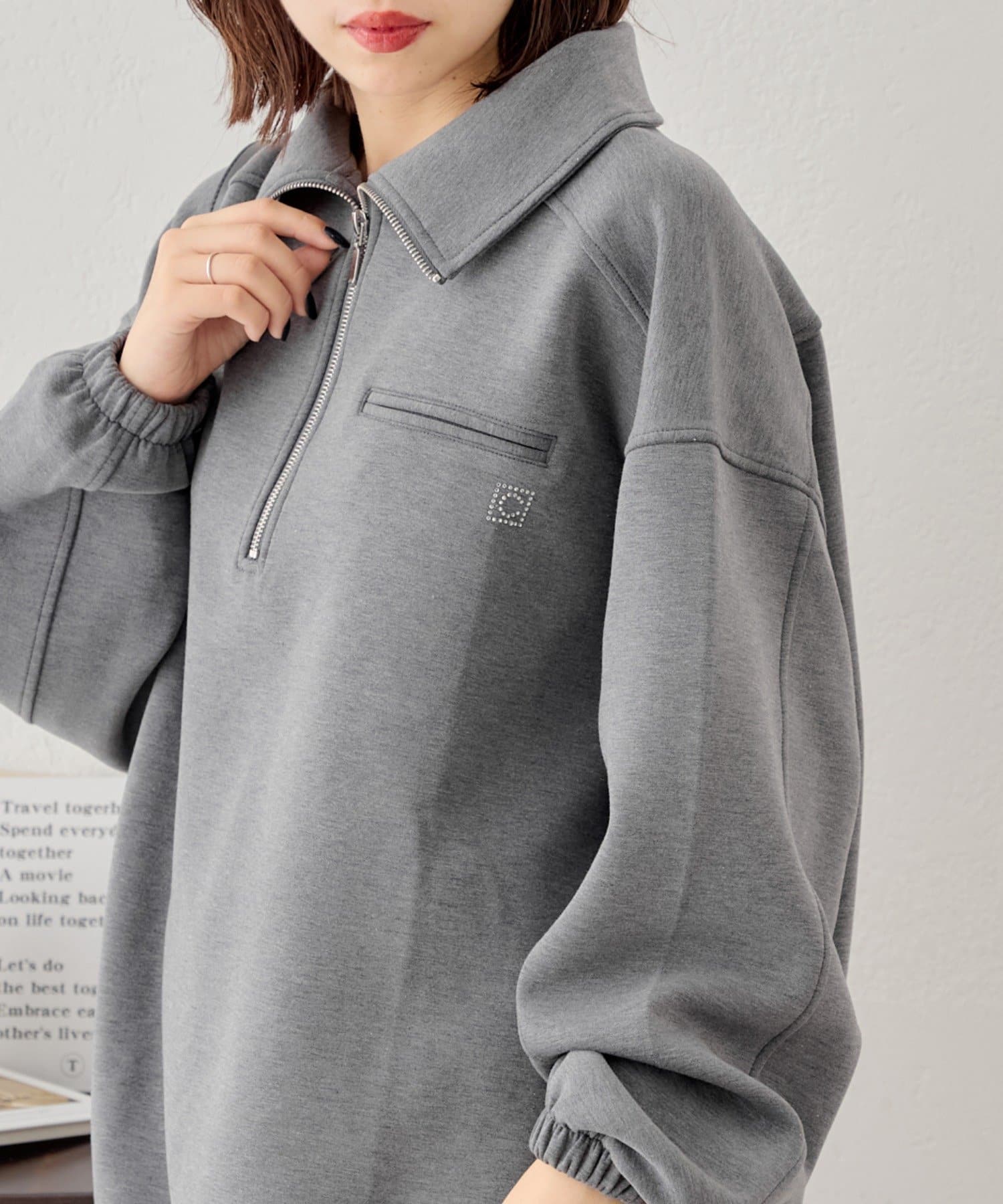 胸元のさりげないビジューロゴが可愛いハーフジップスェット♡