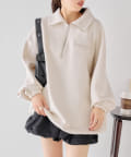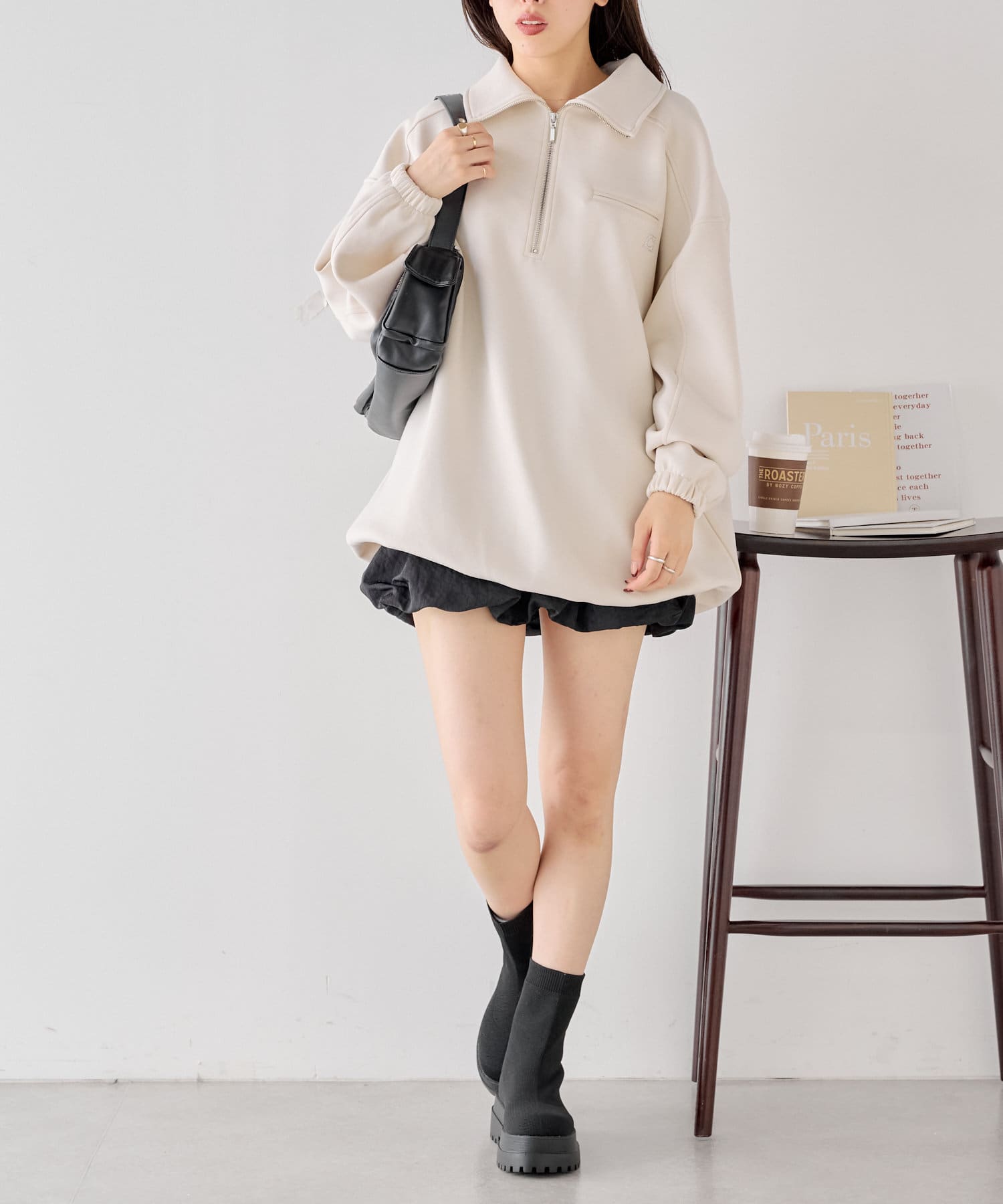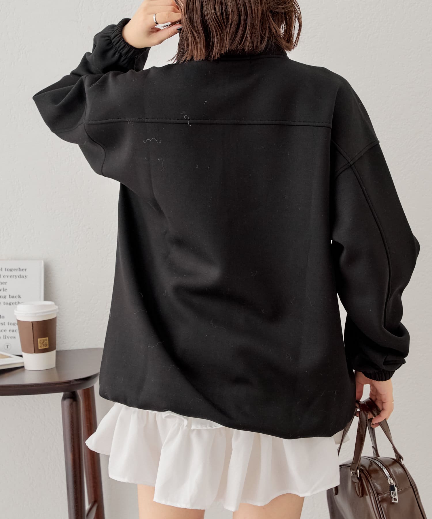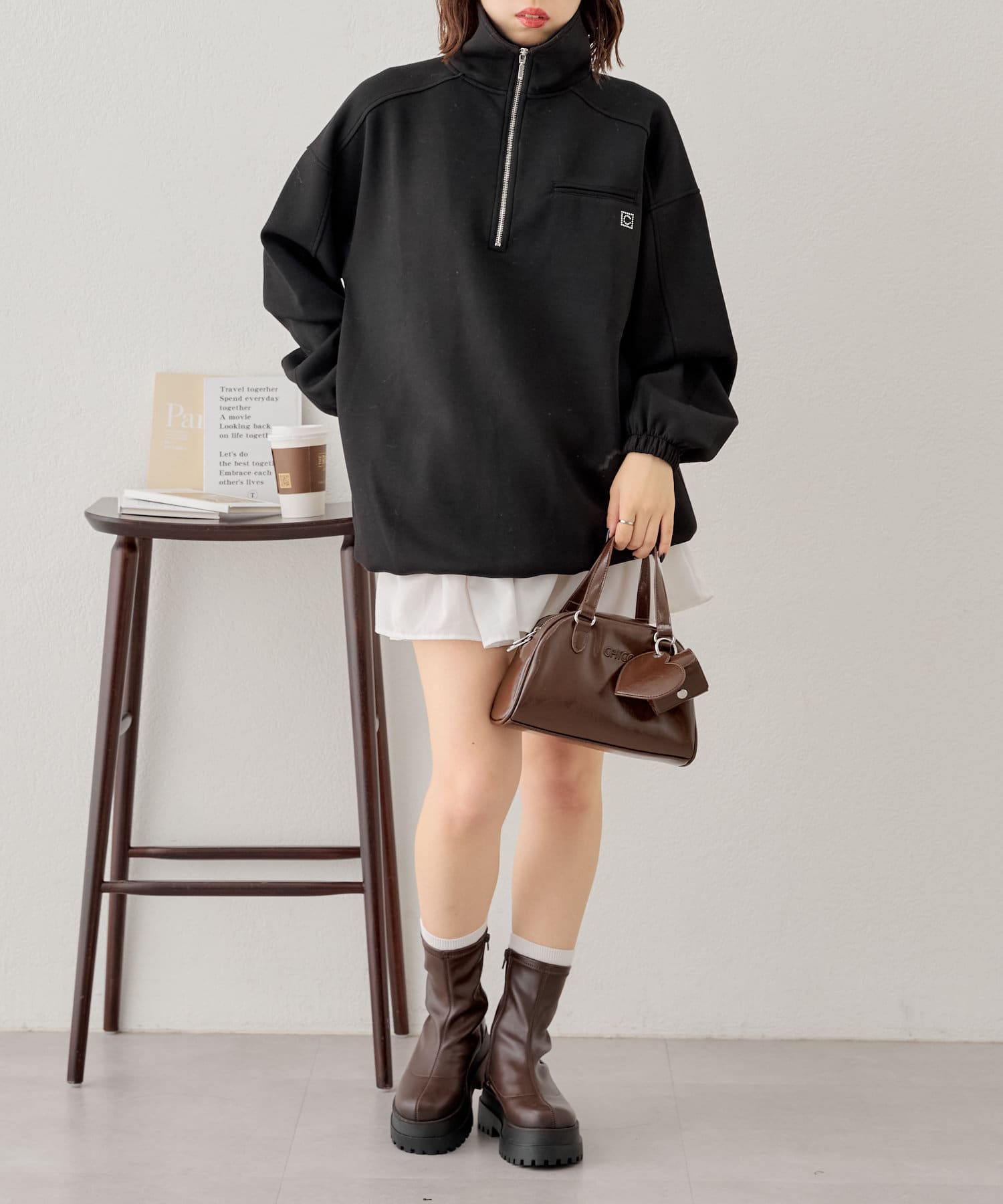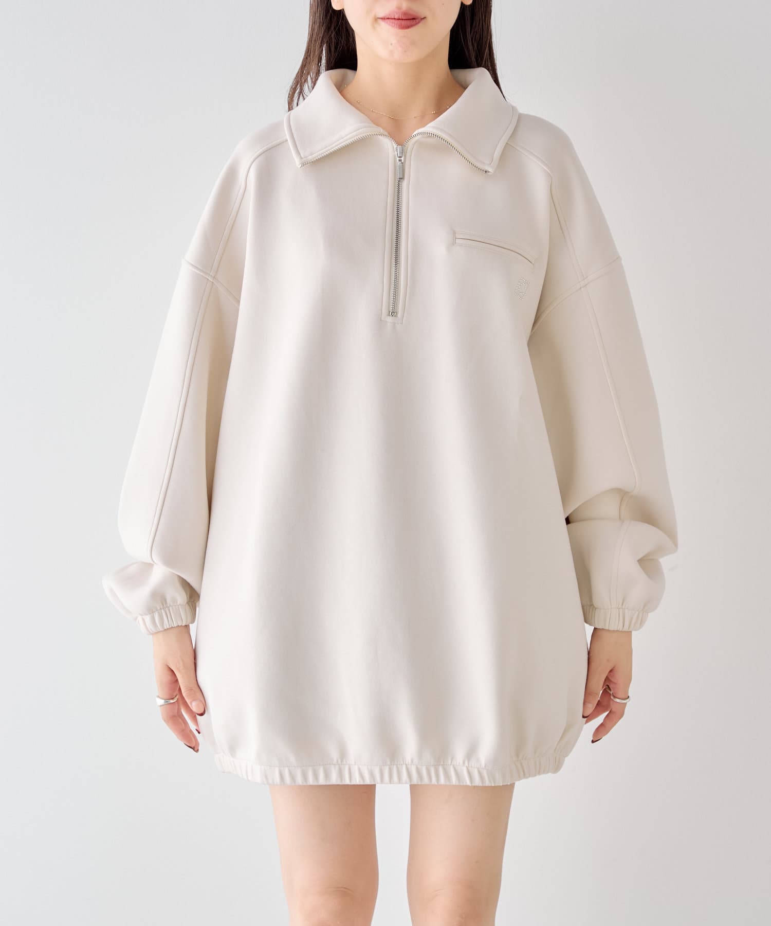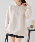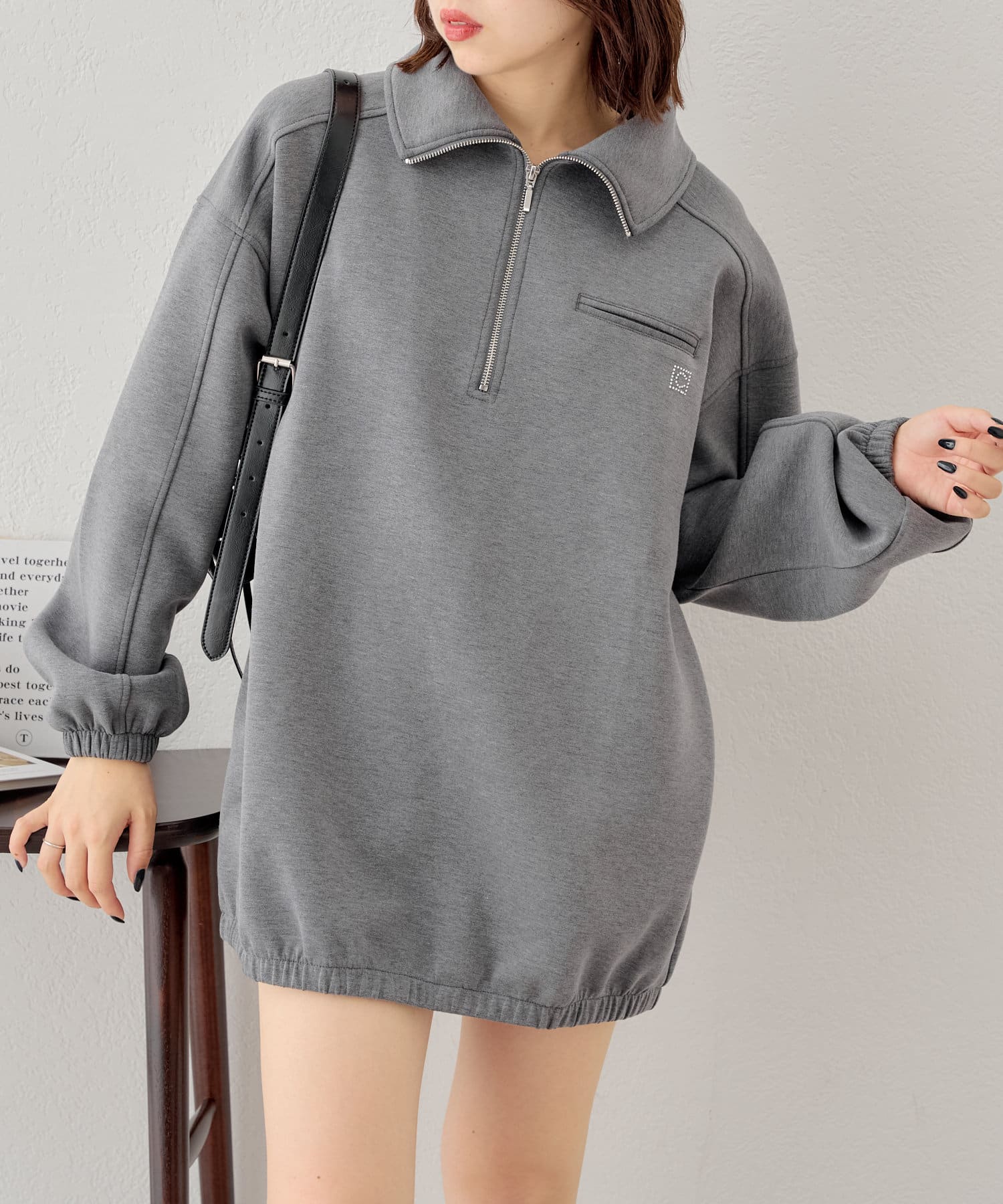 胸元のさりげないビジューロゴが可愛いハーフジップスェット♡