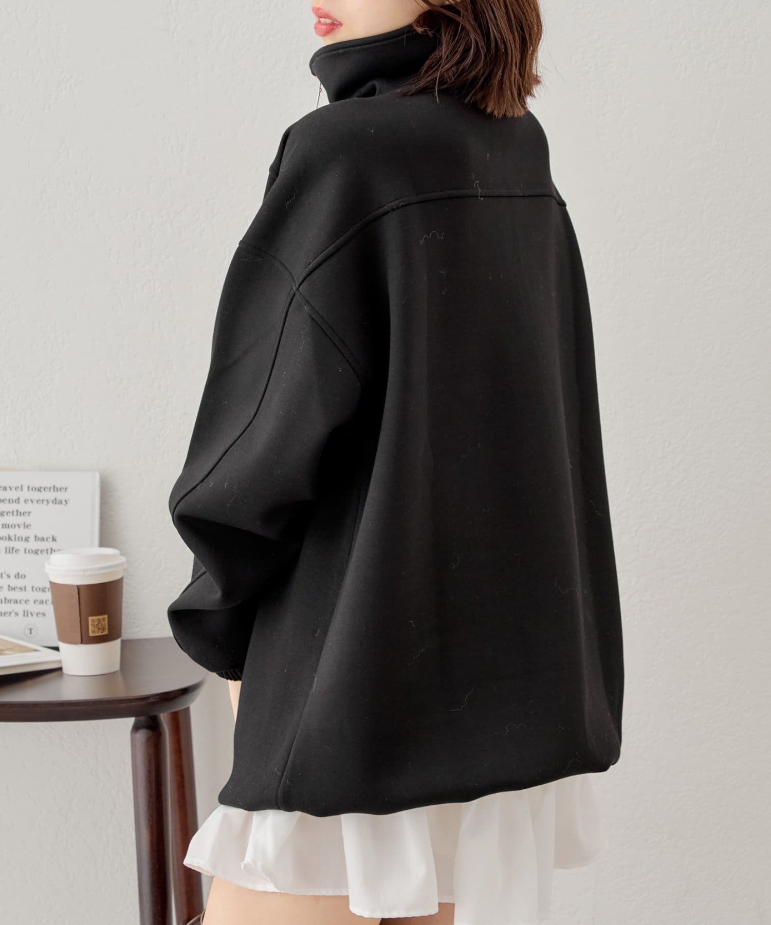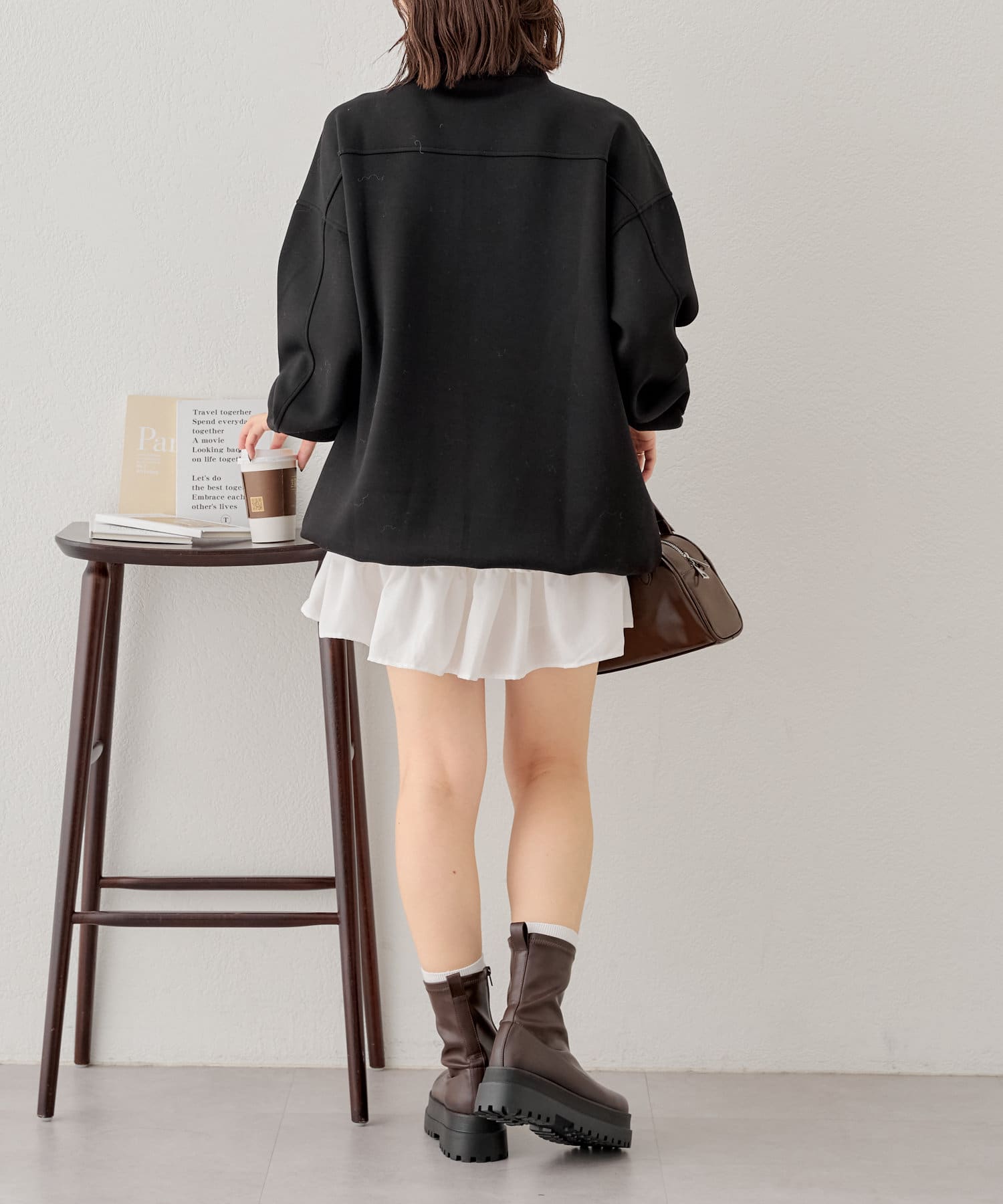 ・ジップを上まで上げずインナーにタートルネックをレイヤードしても可愛いです!