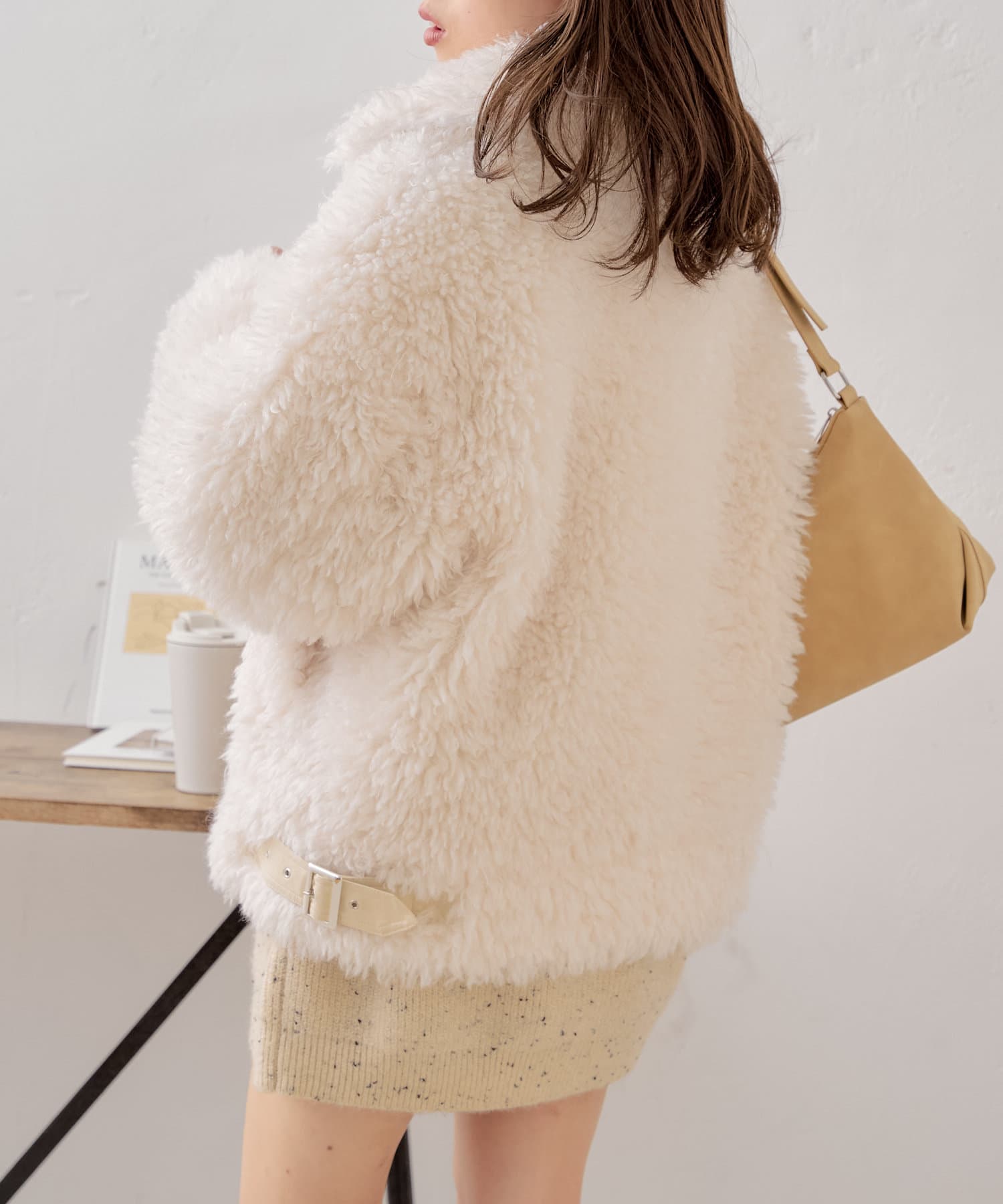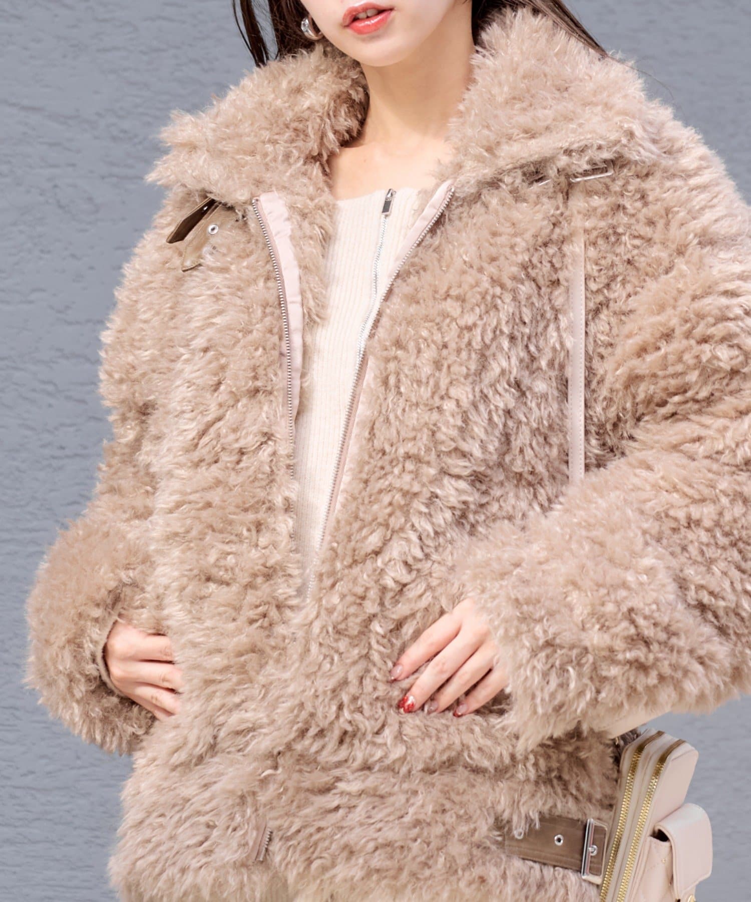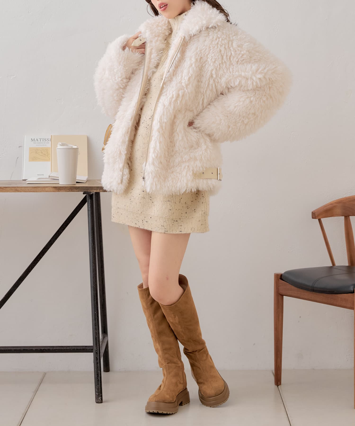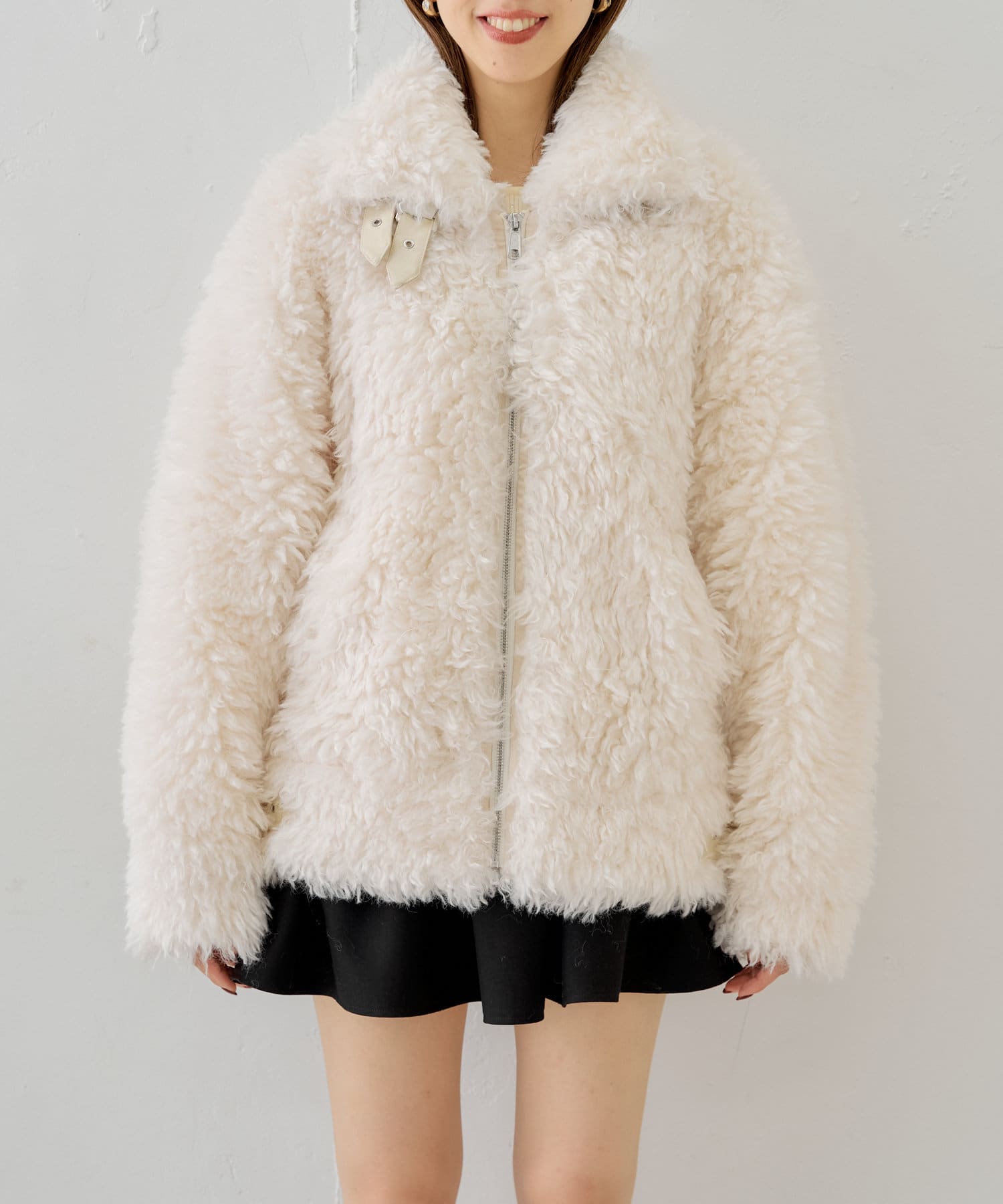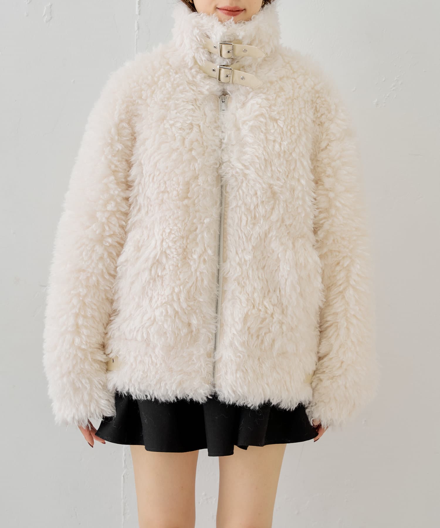 スタンドネックと2way仕様のジップつきのモコモコジャケット♡