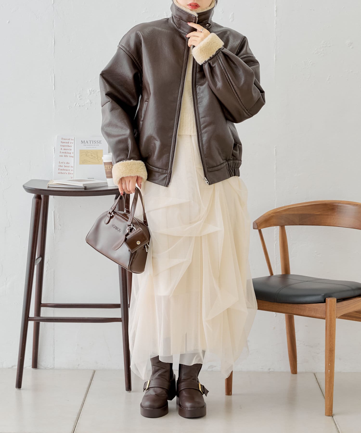 ・ボリュームのあるアウターなのでコンパクトなボトムスと合わせるとバランスが良いです◎