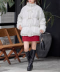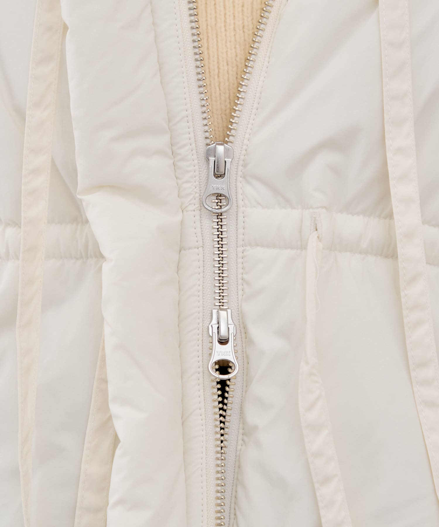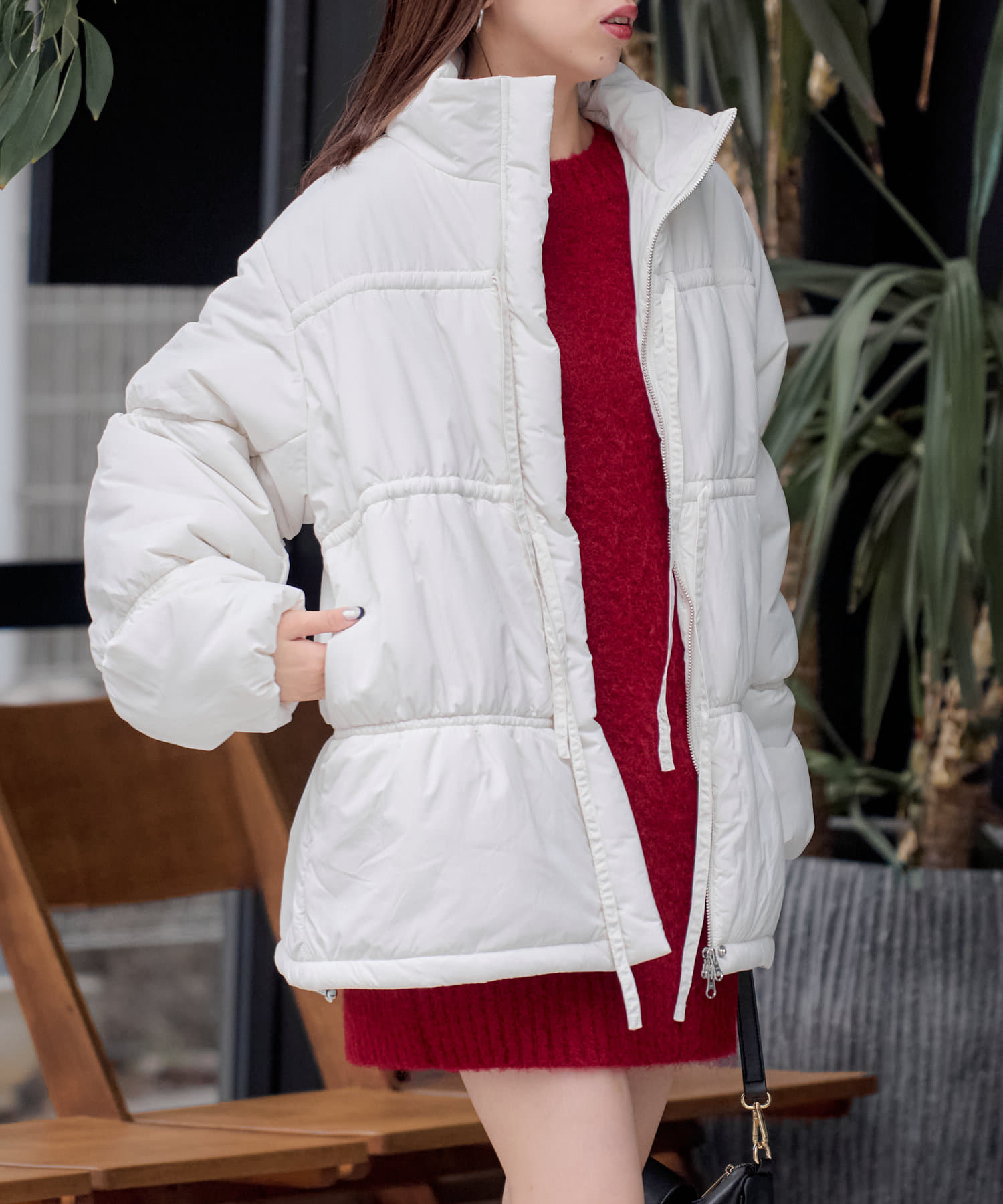 この正面の紐リボンがとても可愛く一目惚れして買いました。実際に着てみるととても軽いのに暖かくてビックリしました。今年の冬はこれを沢山着ようと思います!!