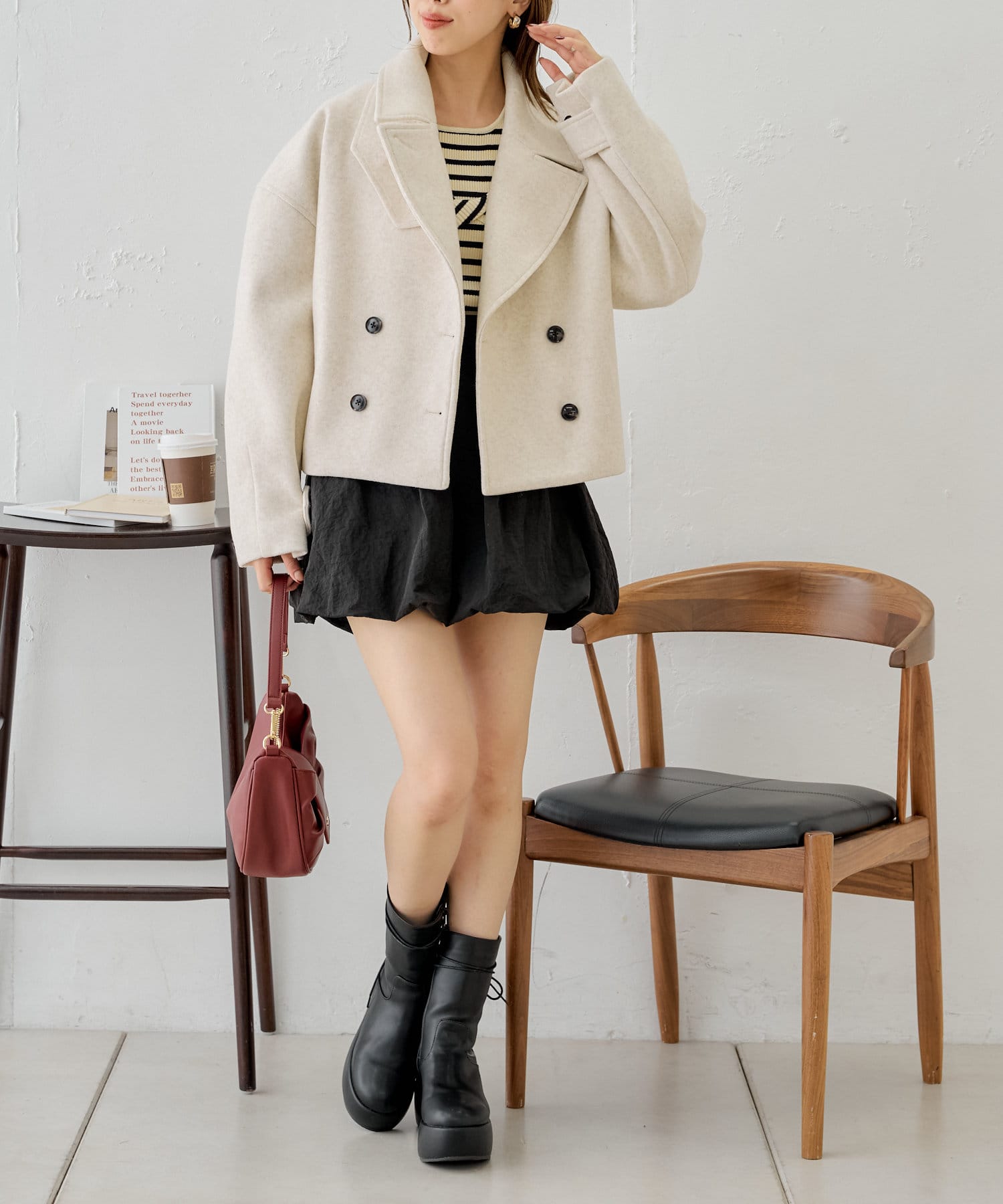 ・ボリュームのあるアウターなのでコンパクトなボトムスと合わせるとバランスが良いです◎
