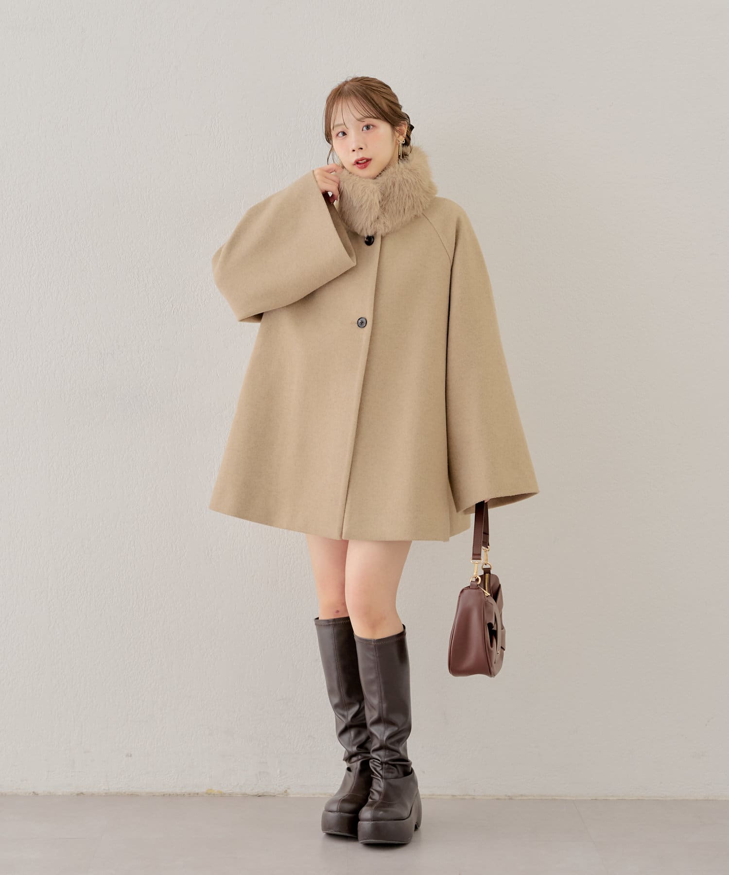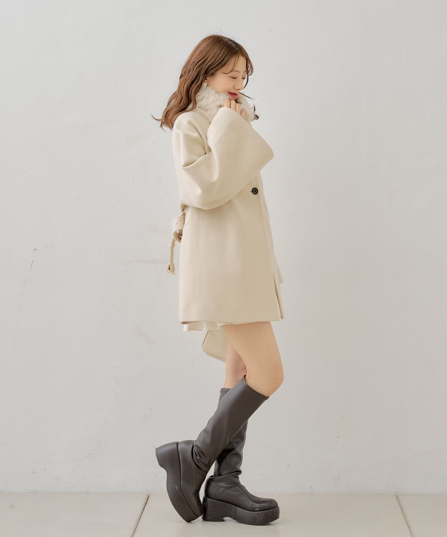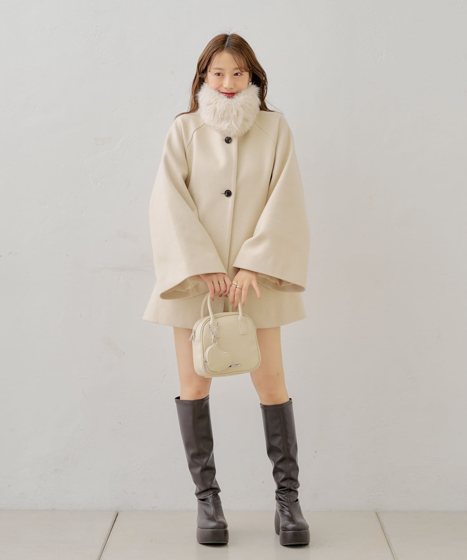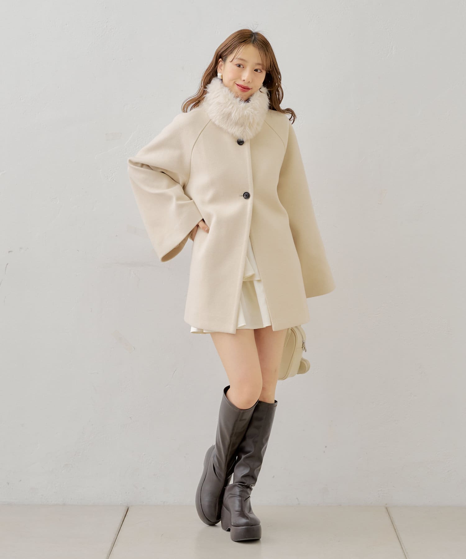 ・ファー衿はそのままで閉めて着ていただくと暖かくて、甘くて可愛いです♡