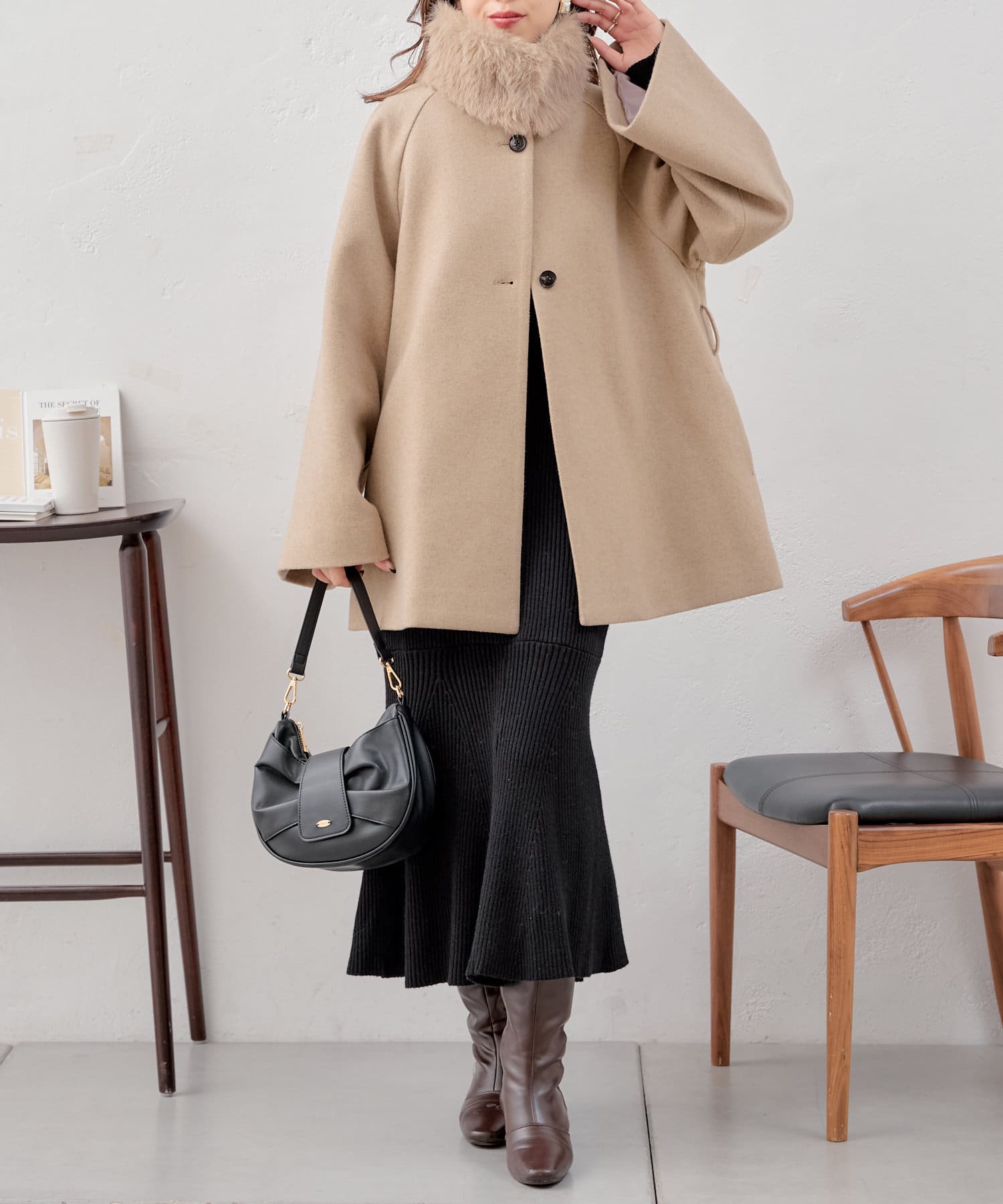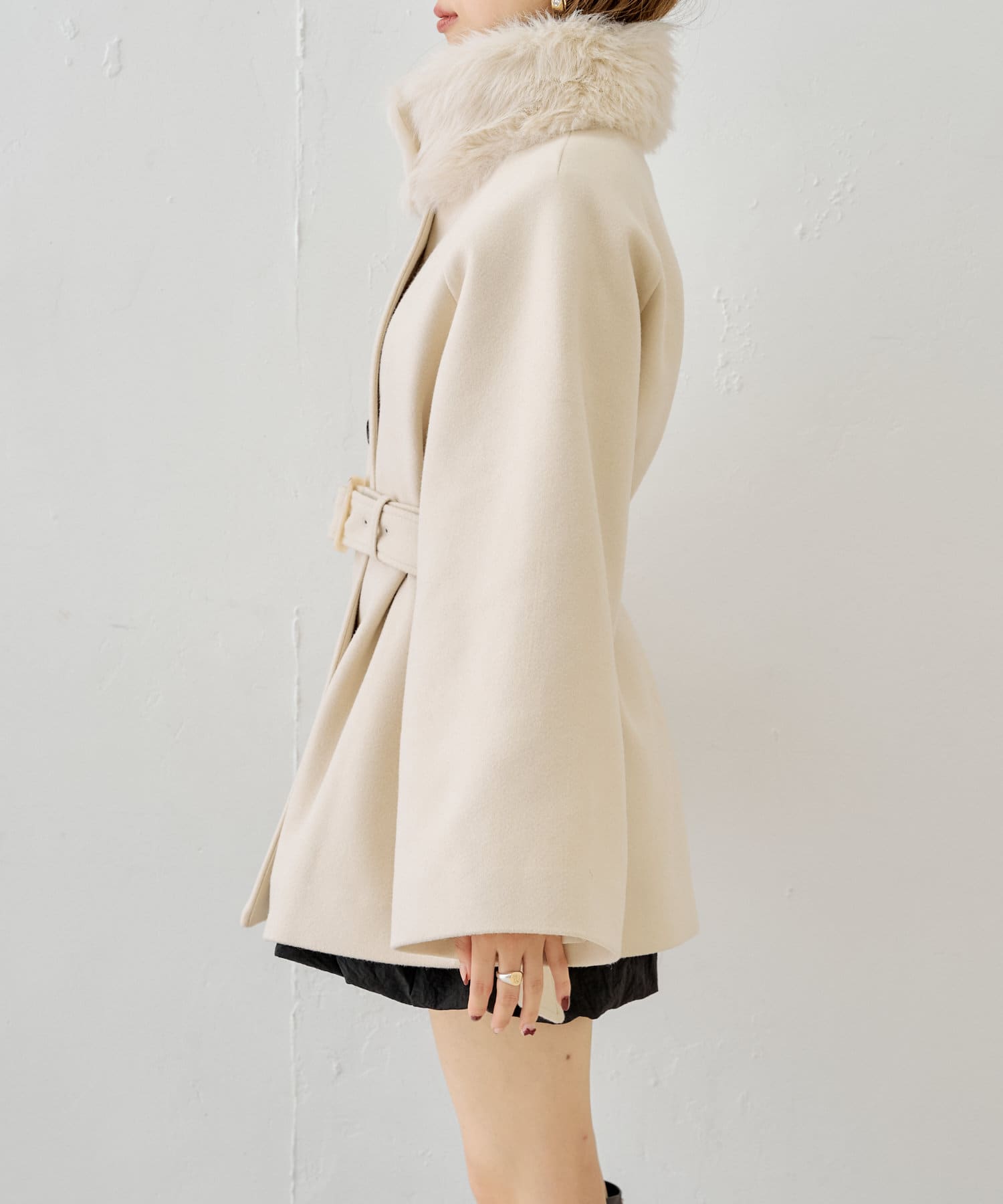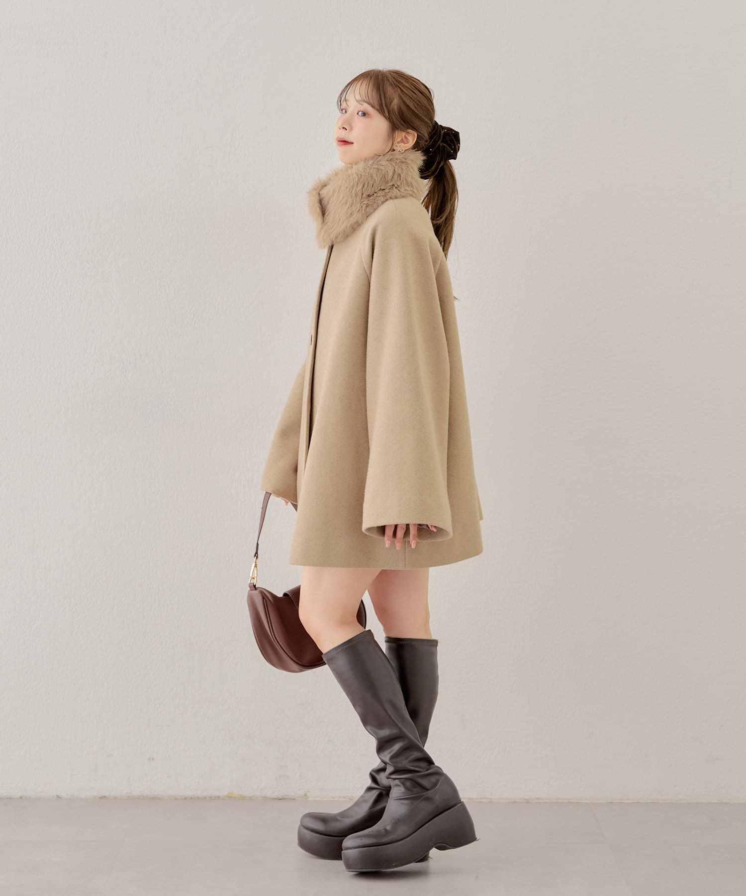 ・ファー衿はそのままで閉めて着ていただくと暖かくて、甘くて可愛いです♡