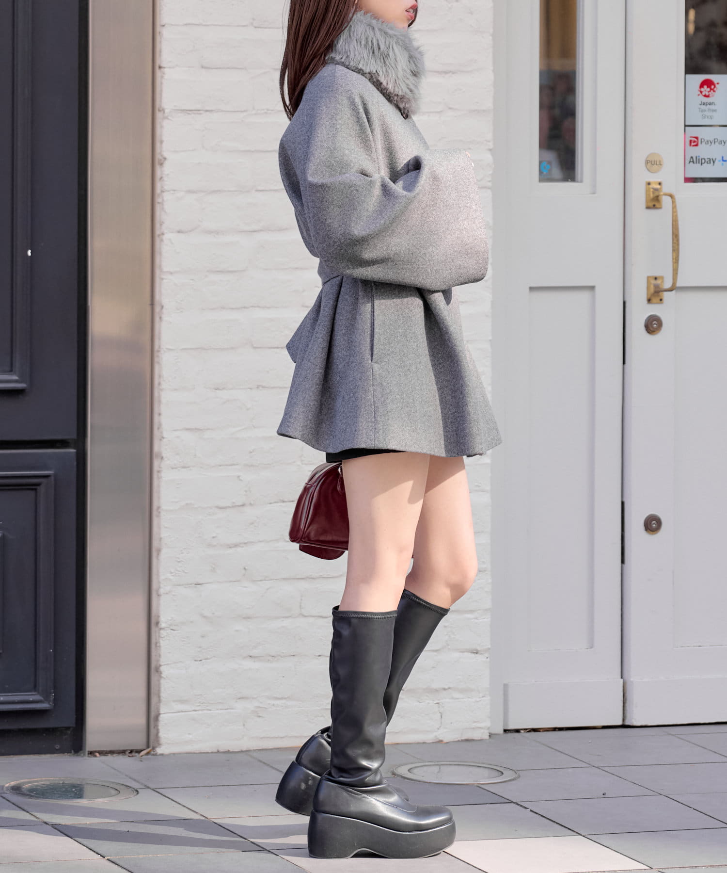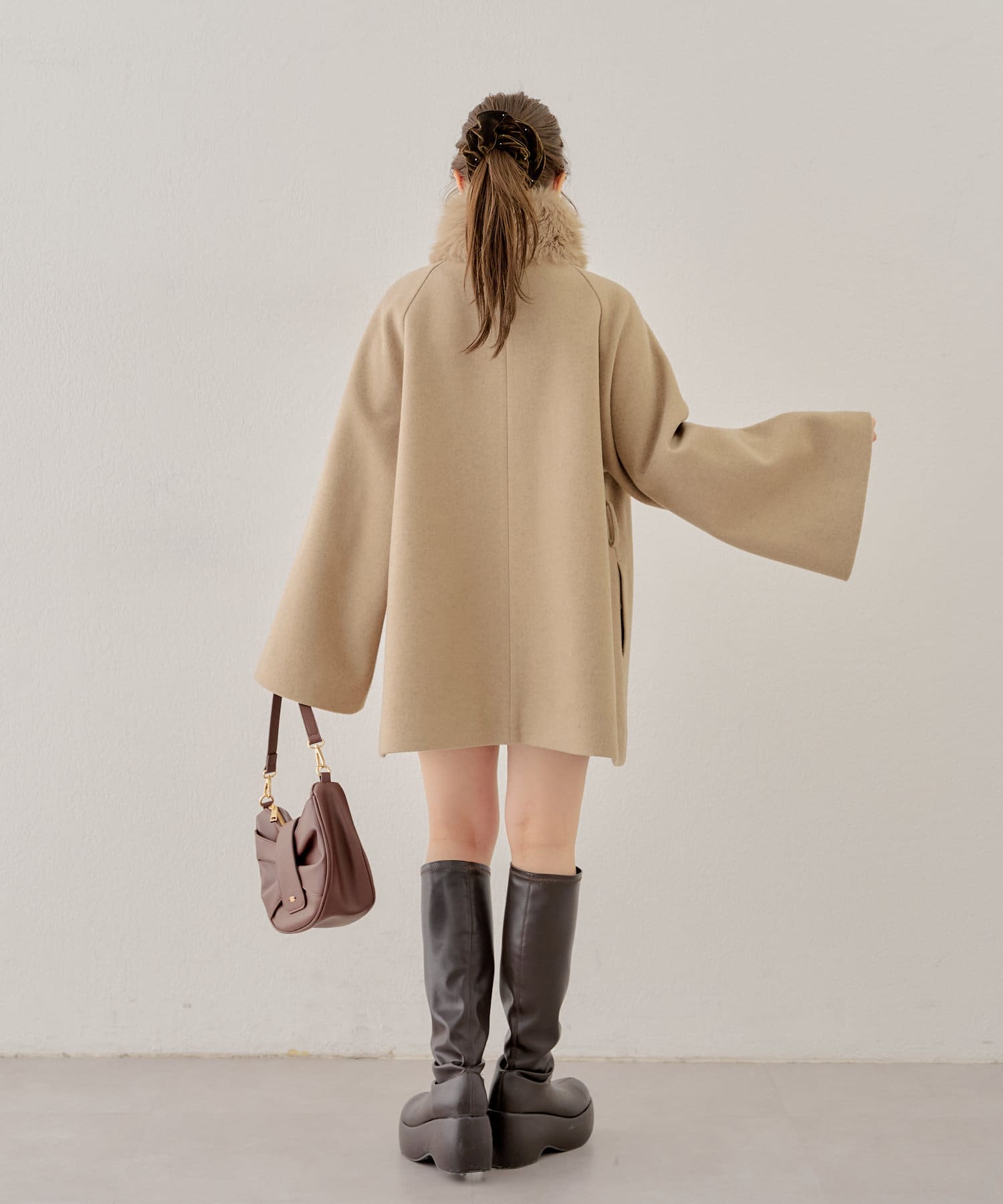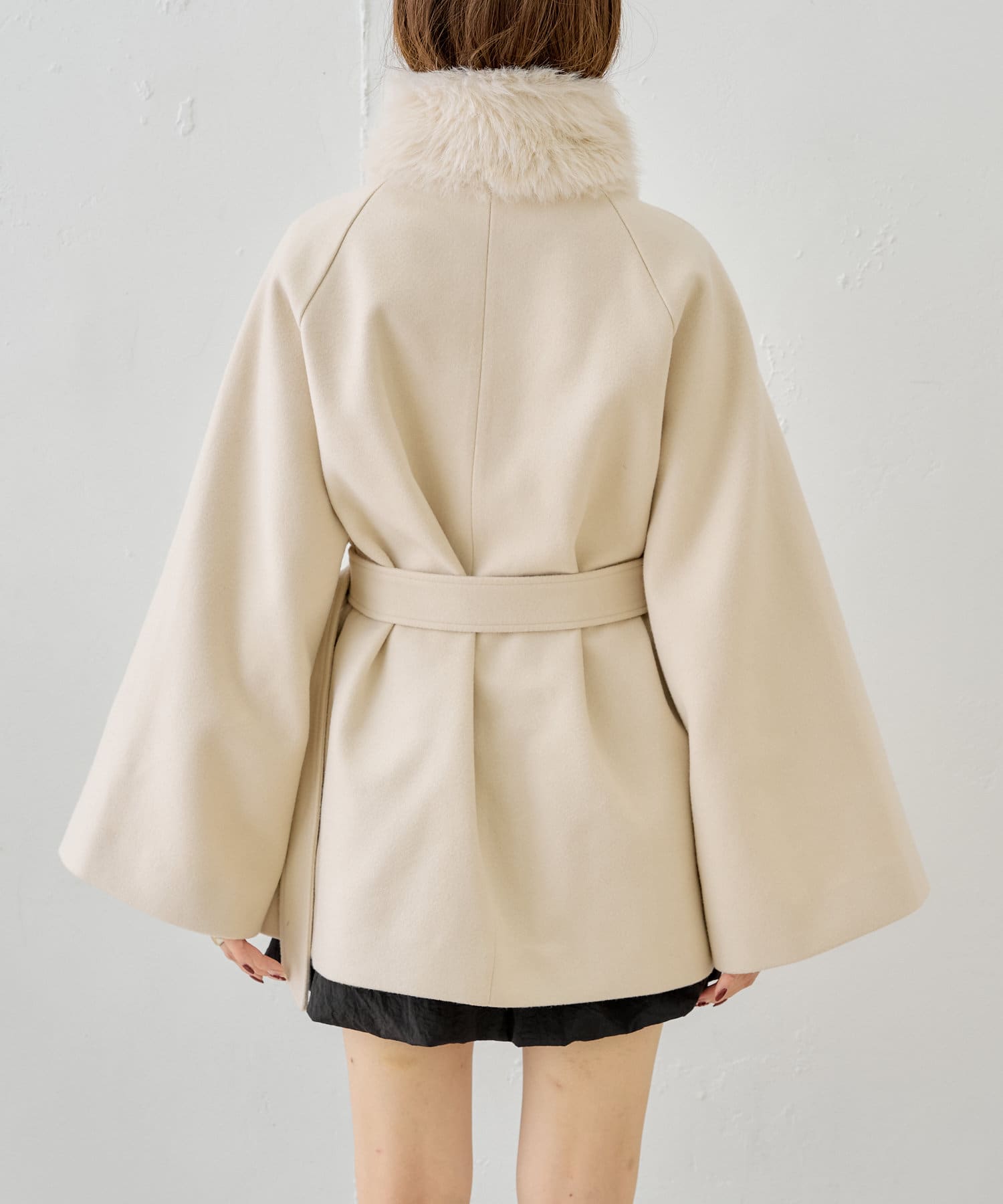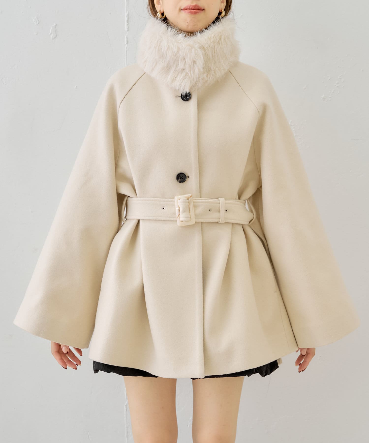 ・ファー衿はそのままで閉めて着ていただくと暖かくて、甘くて可愛いです♡