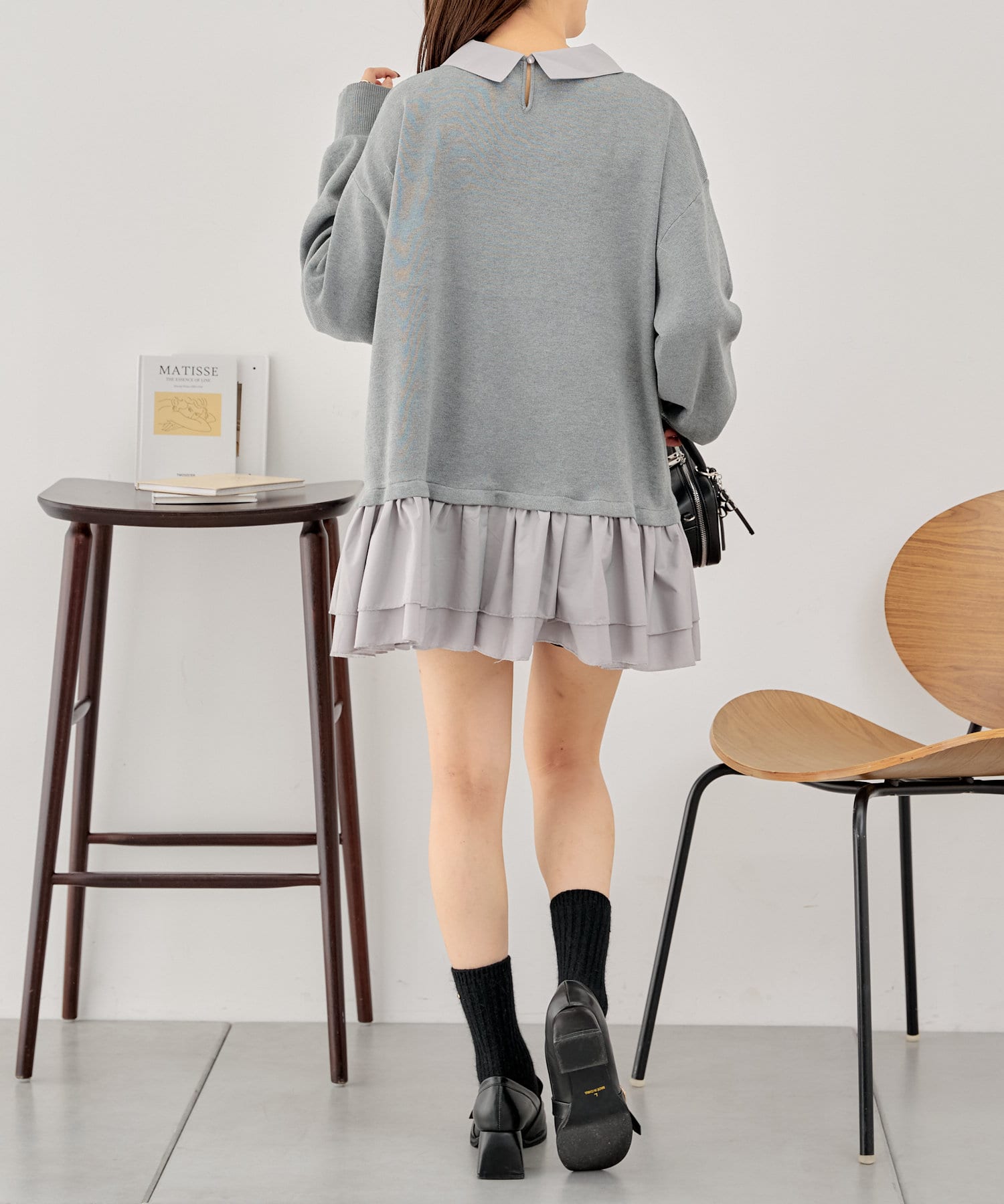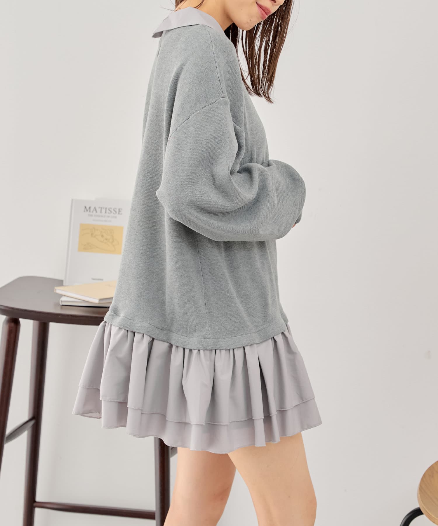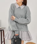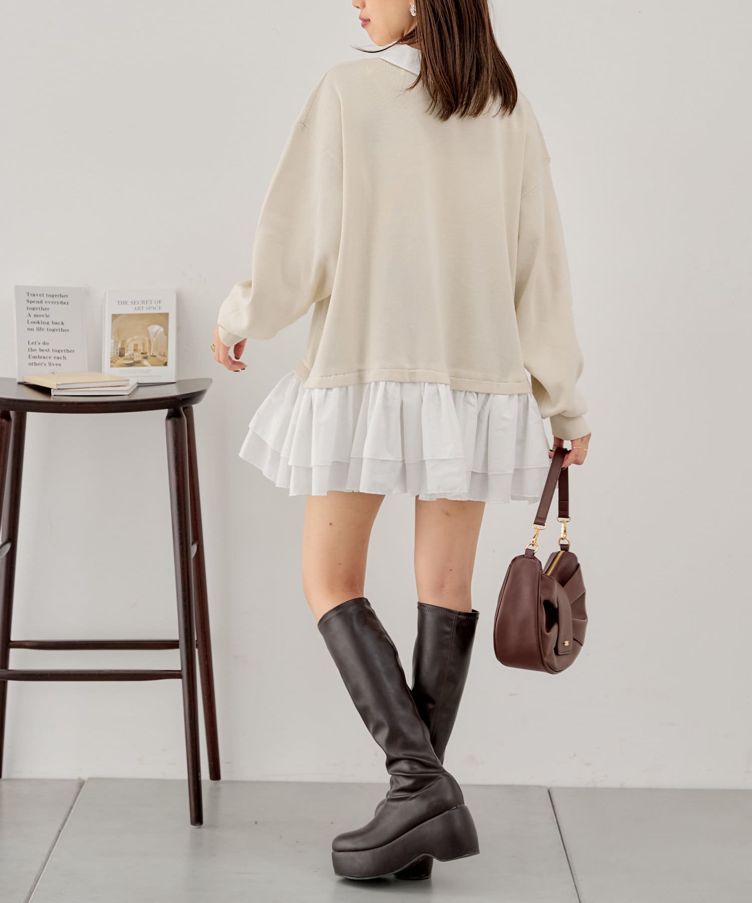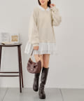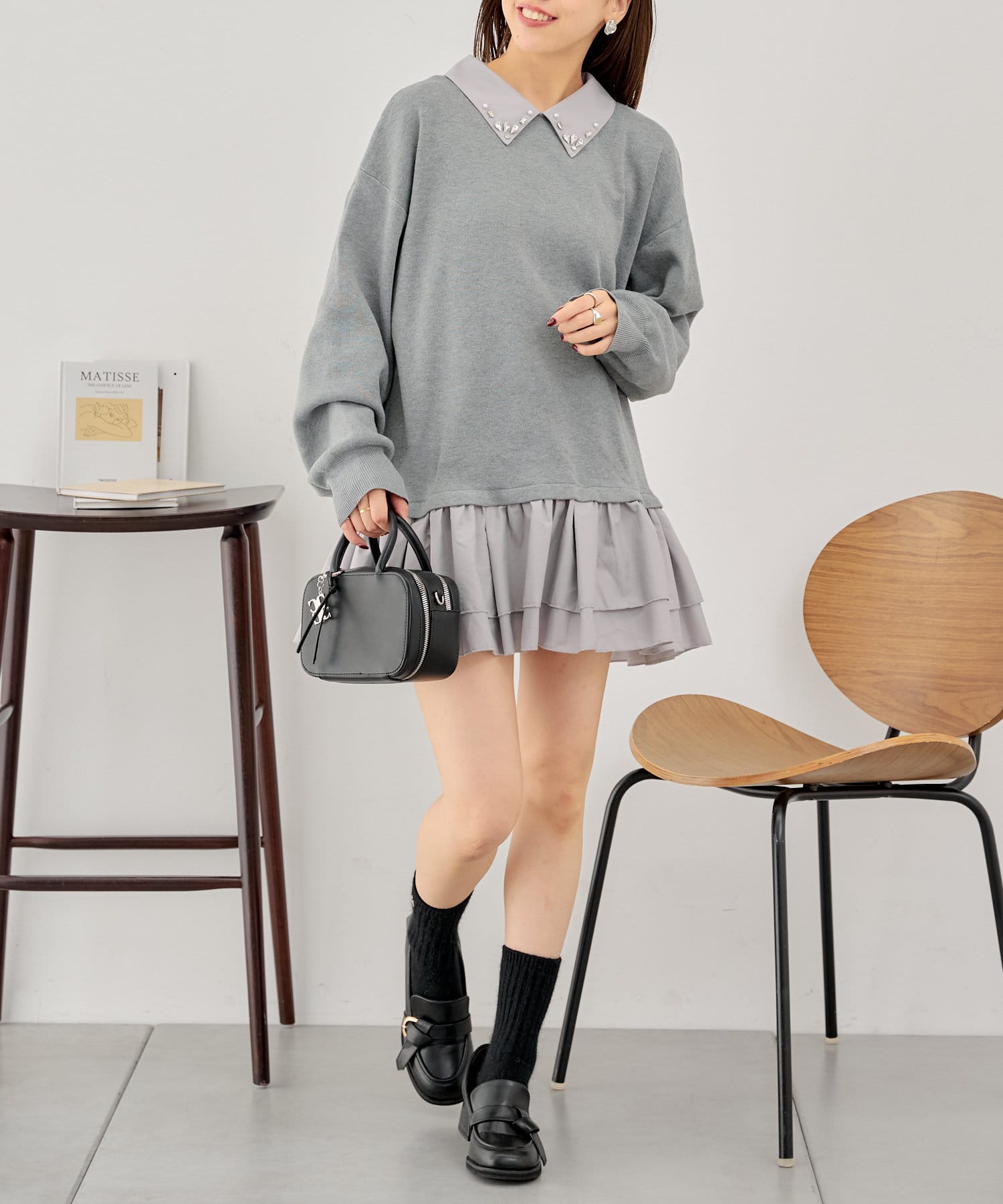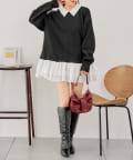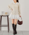 ・シャツとニットがドッキングされたレイヤード風ミニワンピース♡