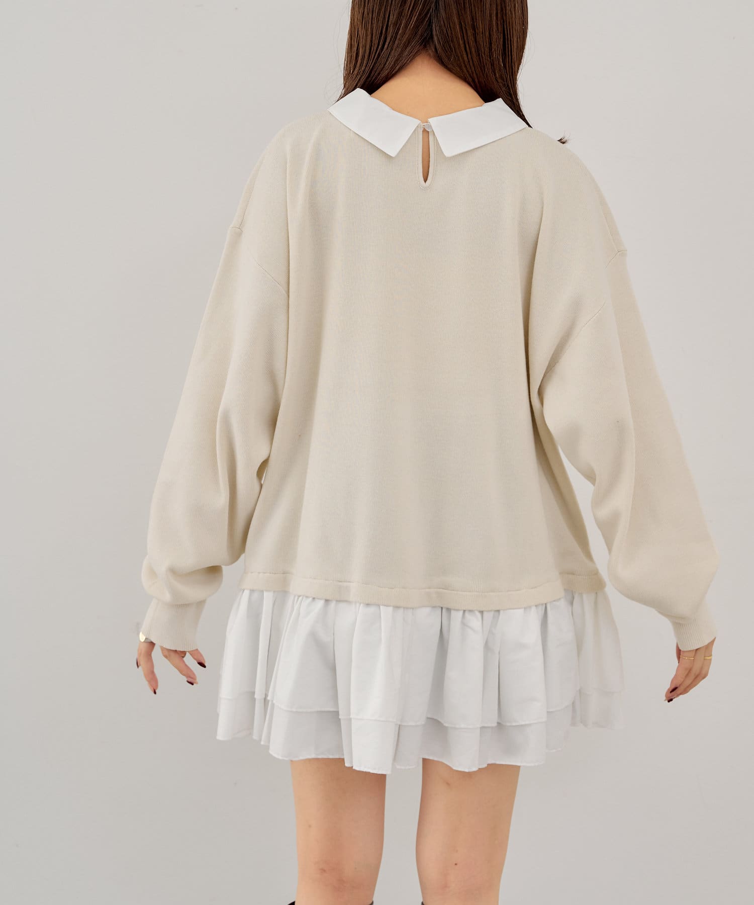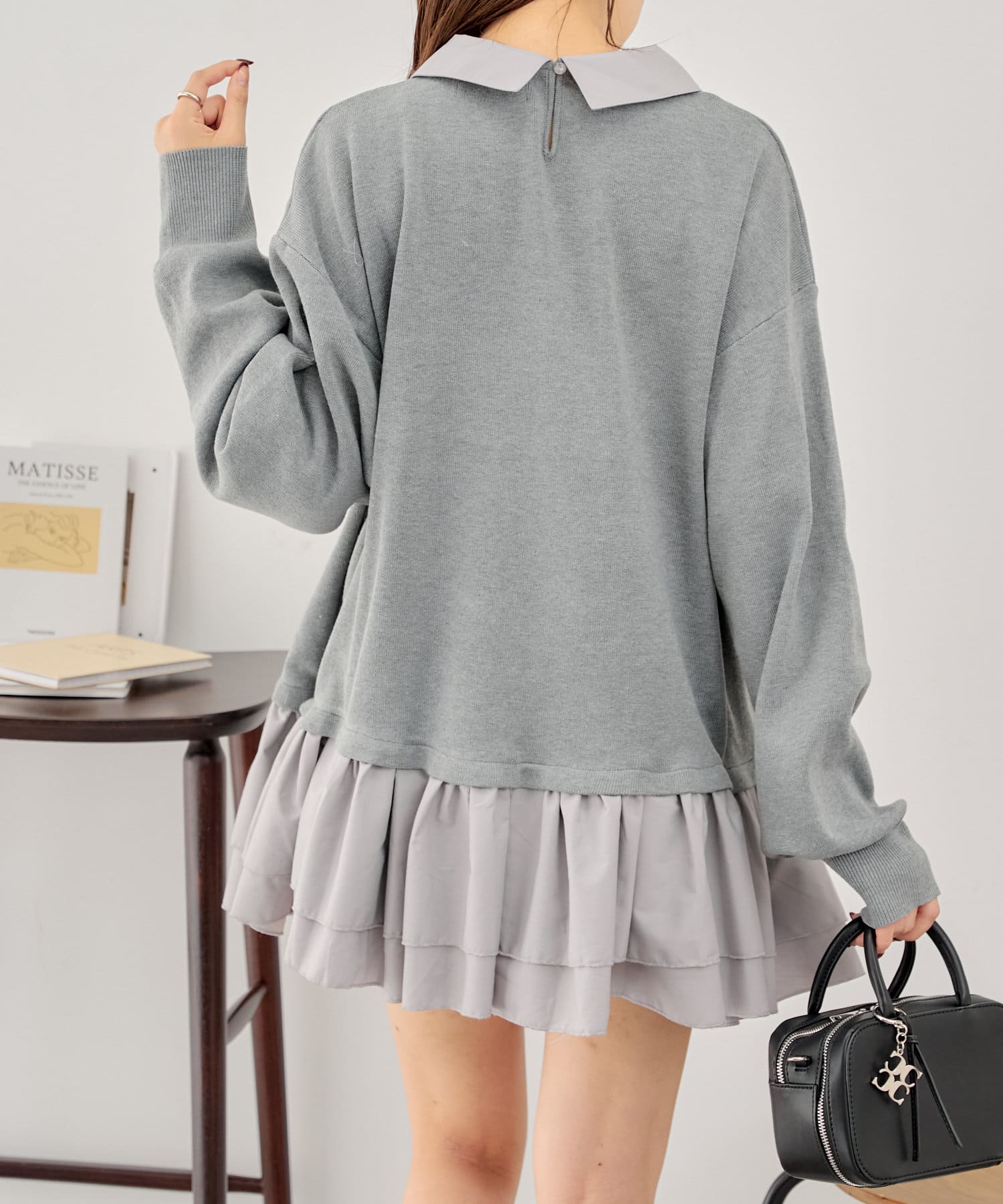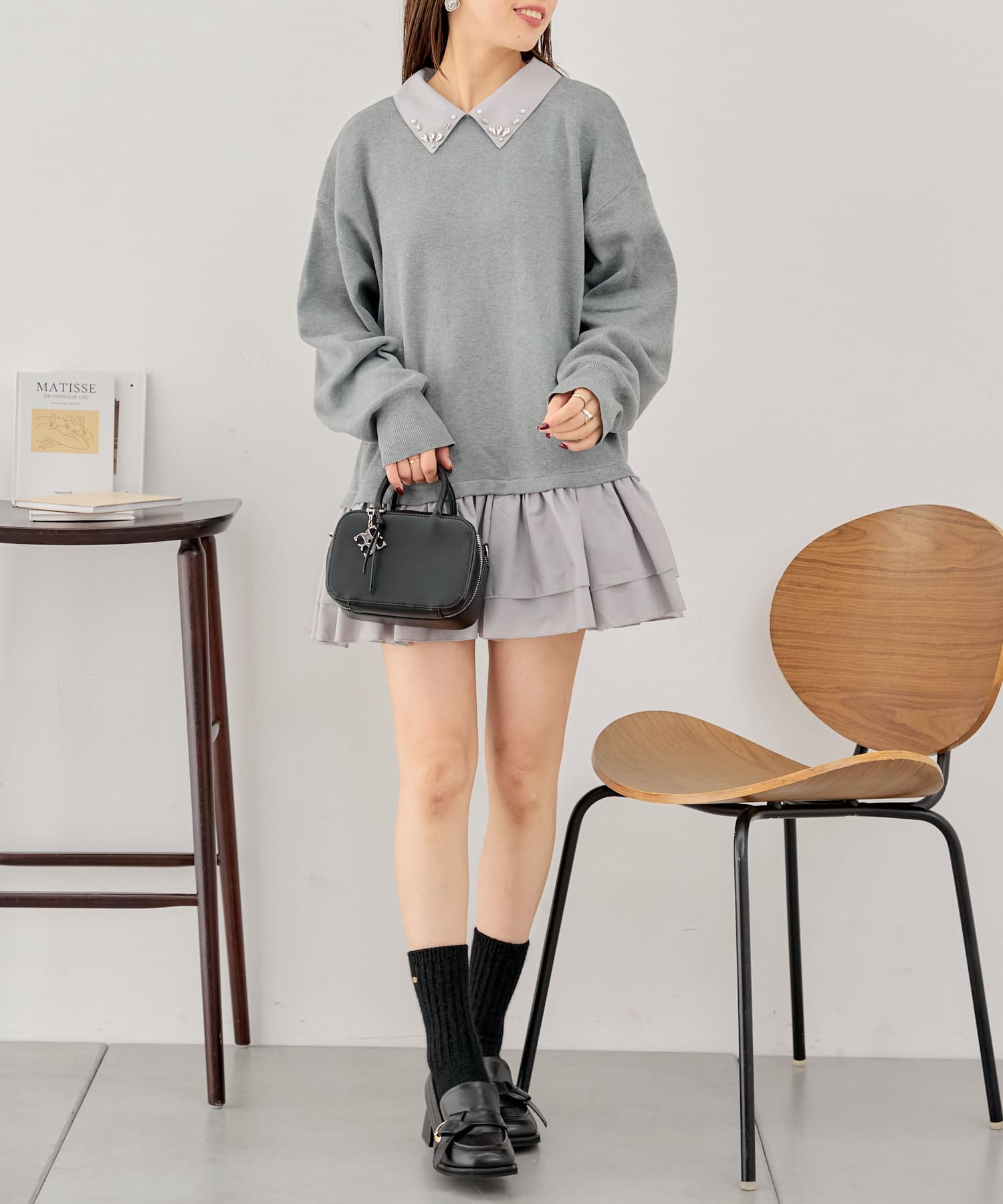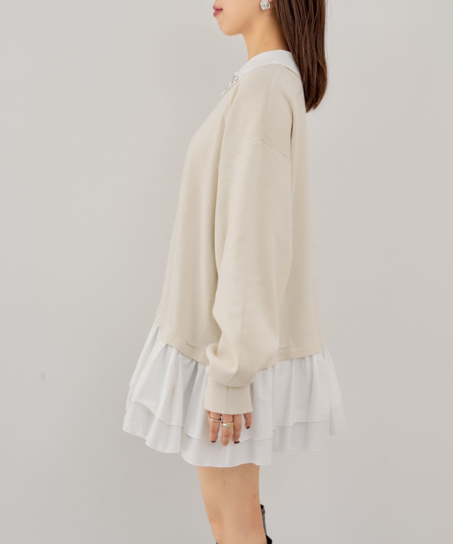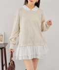 ・シャツとニットがドッキングされたレイヤード風ミニワンピース♡