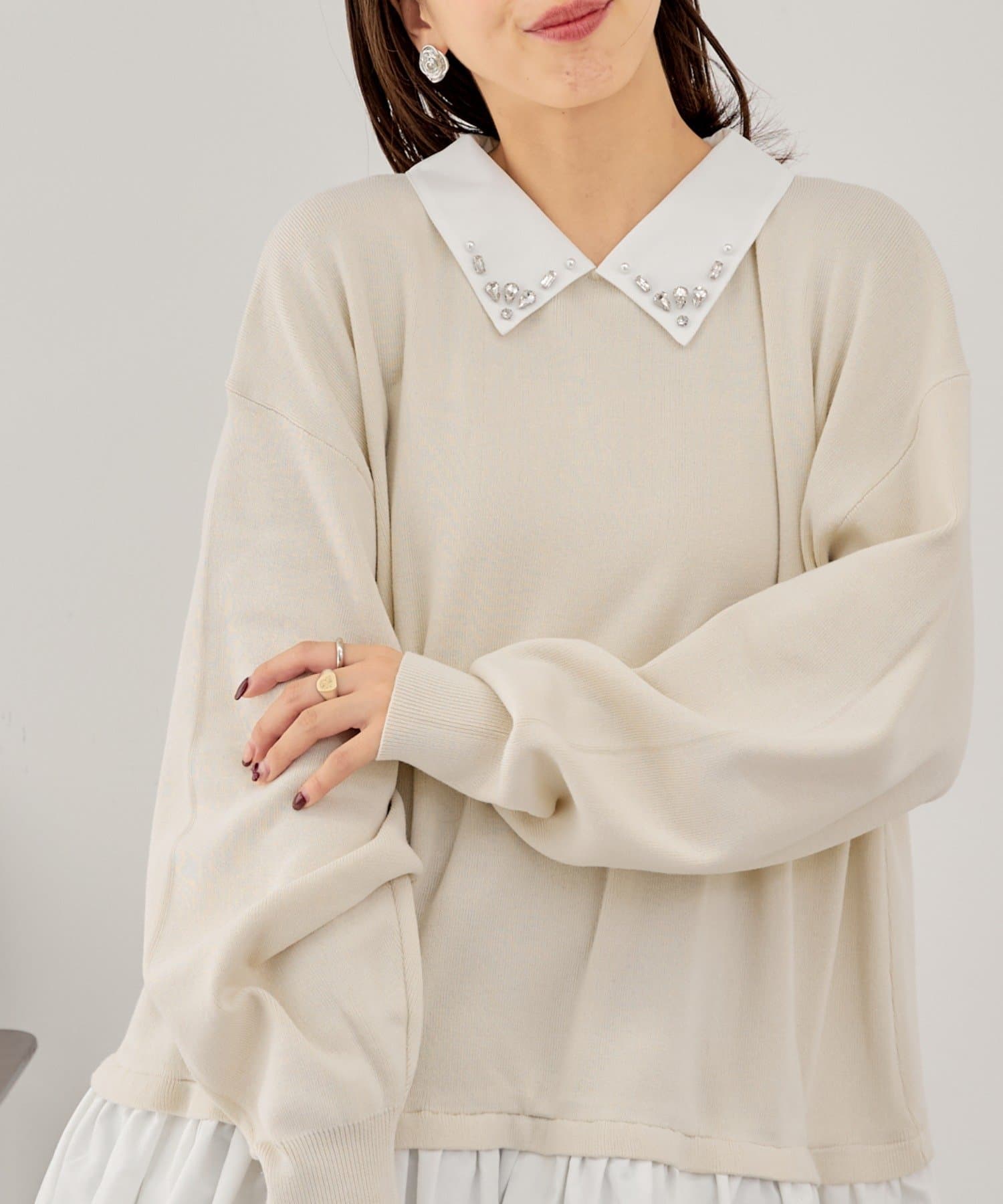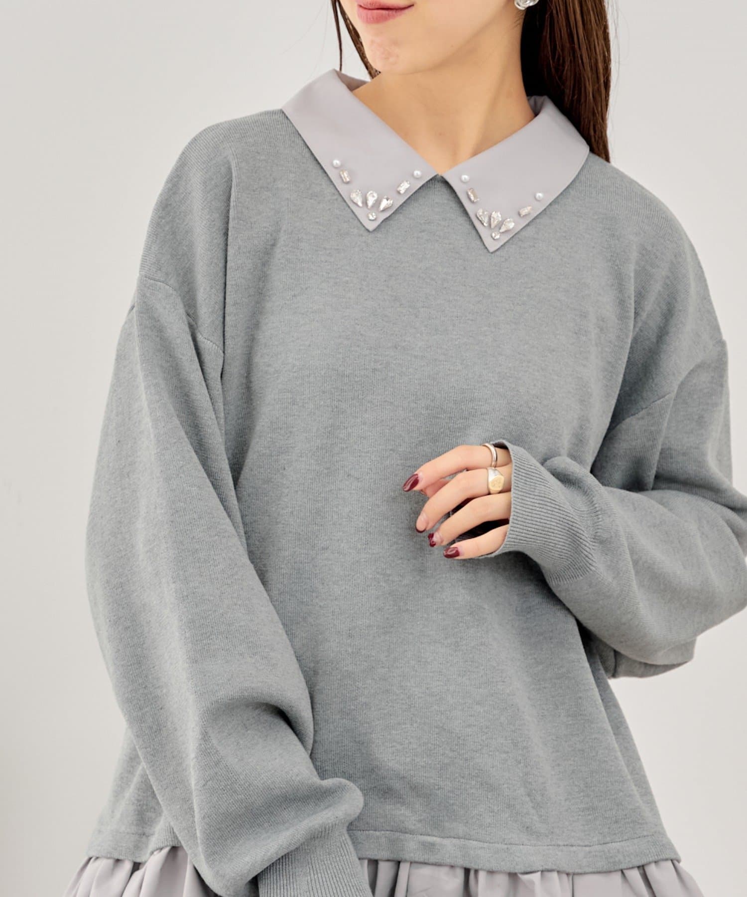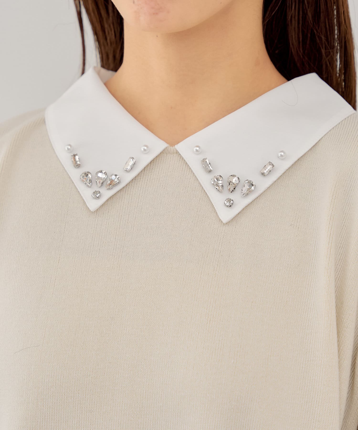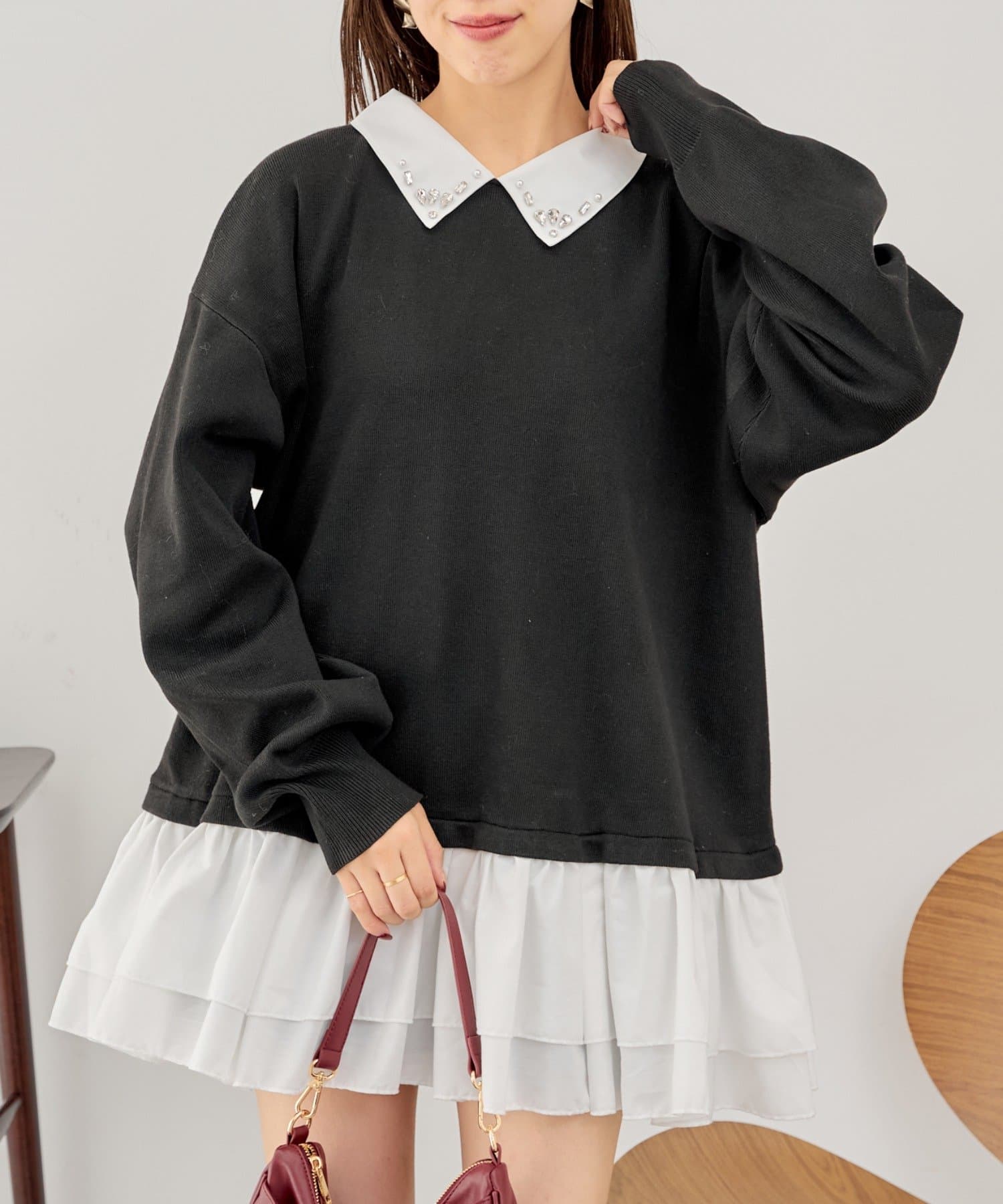 【Chico】ビジュー襟フリルデザインミニワンピース