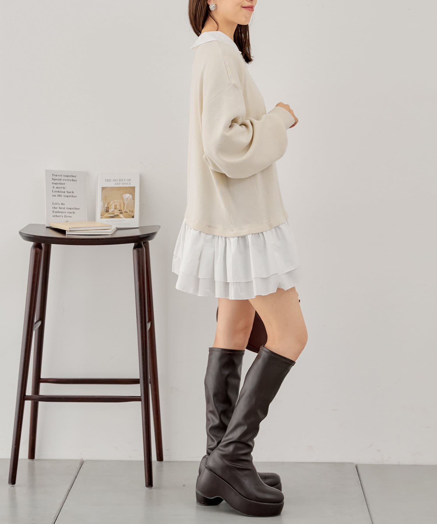 ・裾のシャツ部分はティアードになっていておしゃれ見えします!