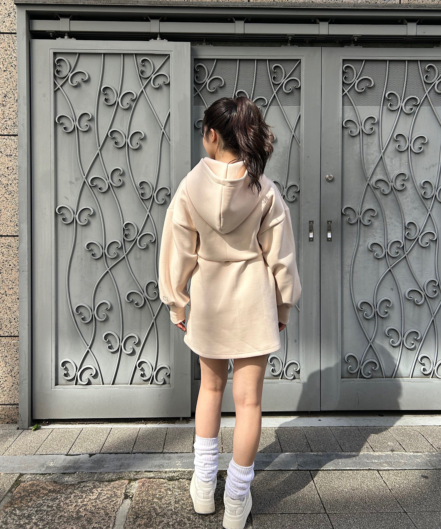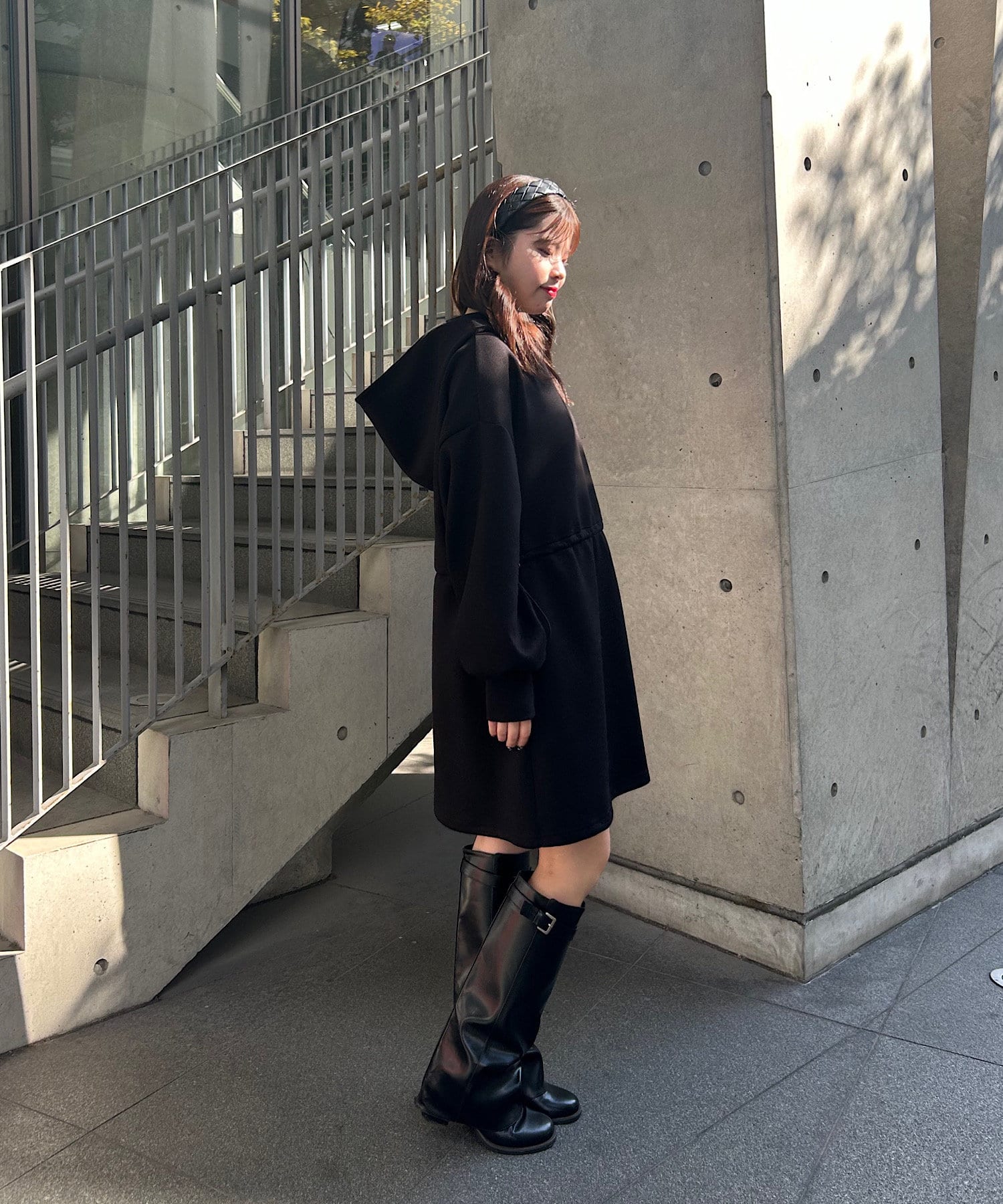 ・オーバーサイズですがウエストを絞ることで脚長効果、身体のメリハリがつき女性らしく着れます
