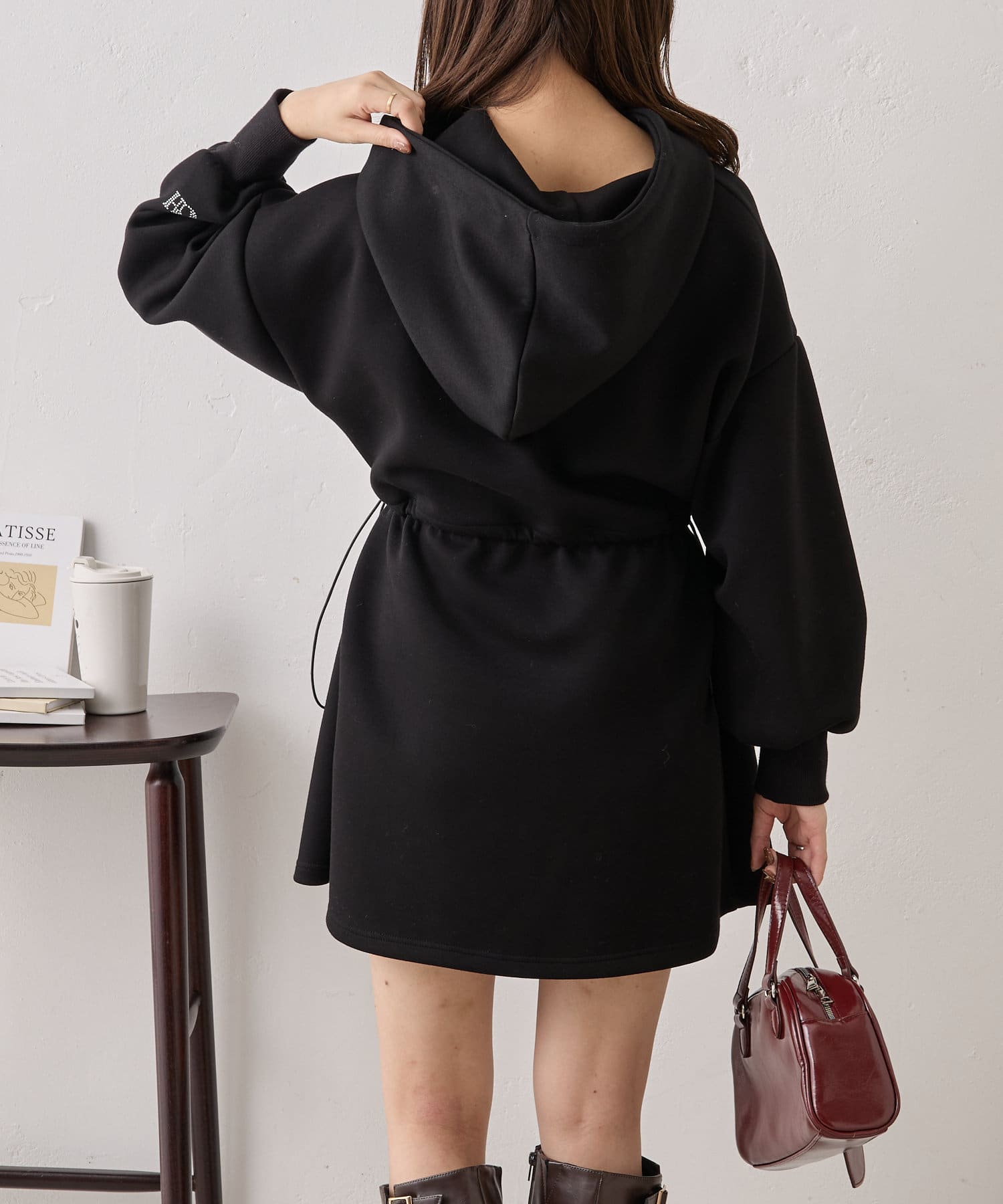 ・ウエストを絞らずに着るとAラインのようなシルエットで女の子らしく、ウエストを絞るとセットアップ風なシルエットにもなります!