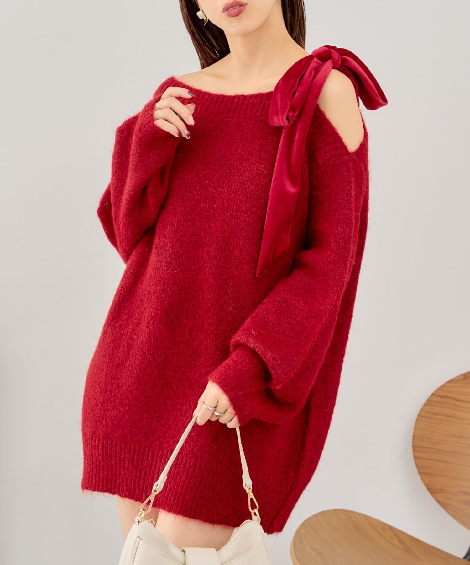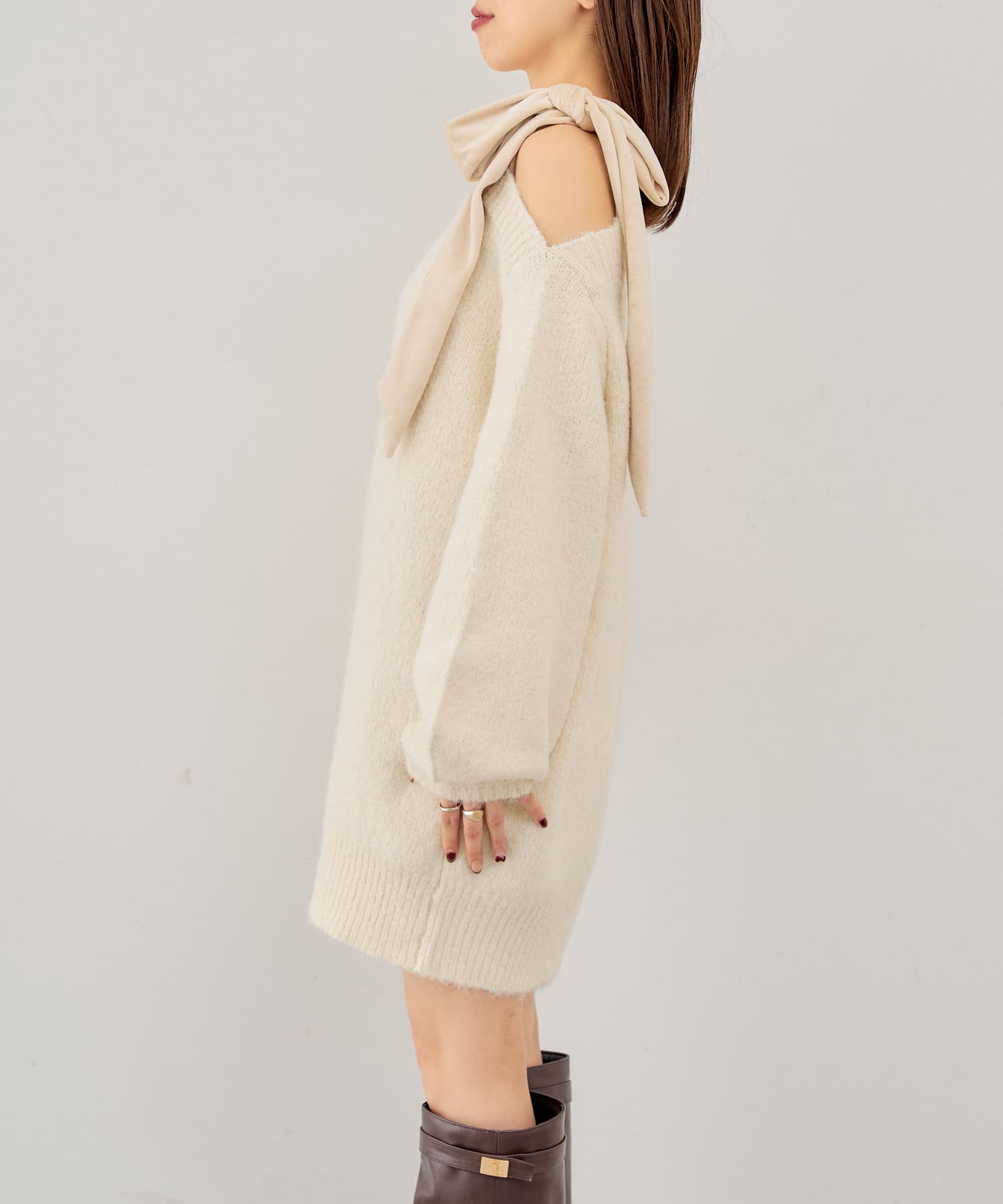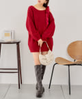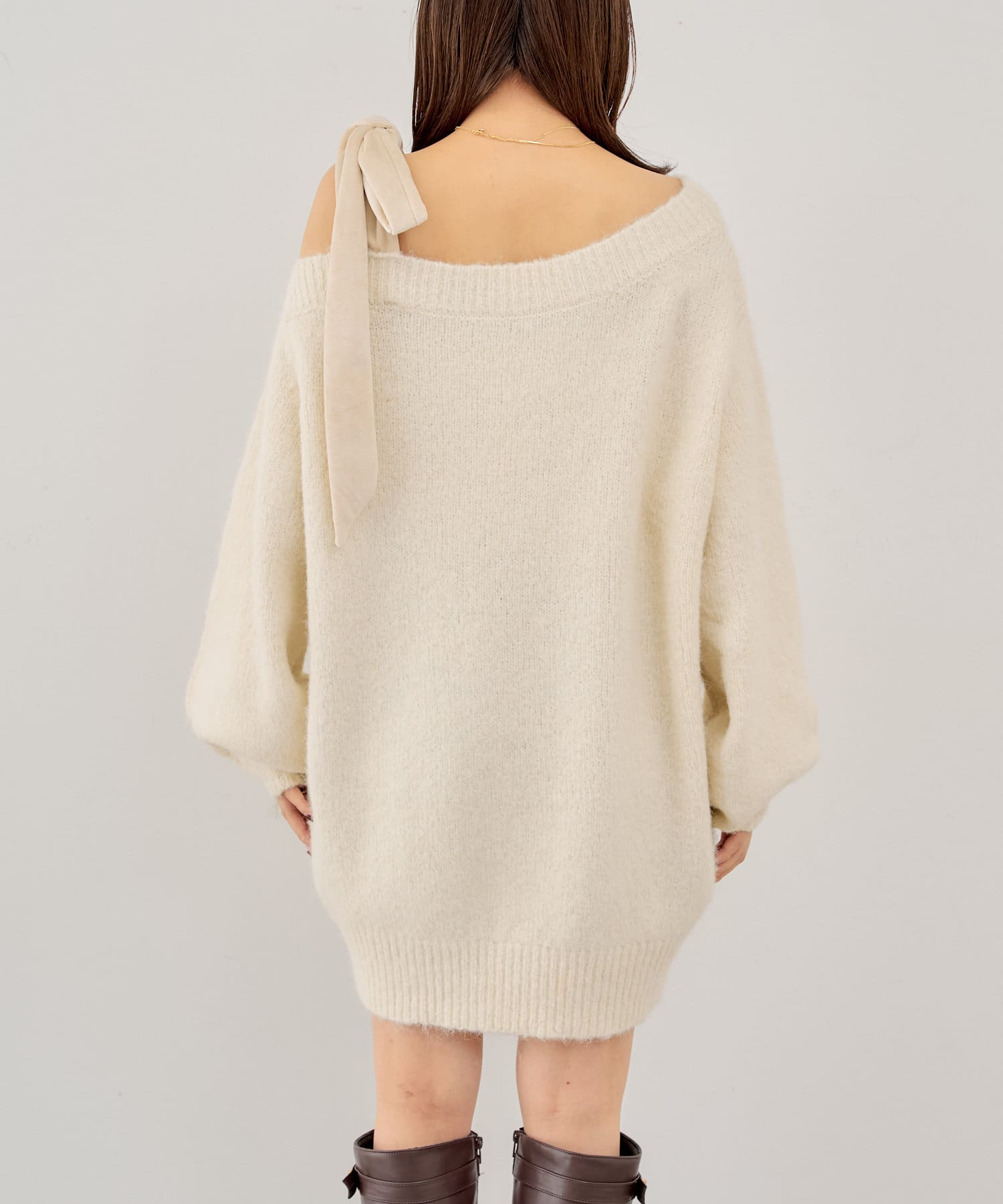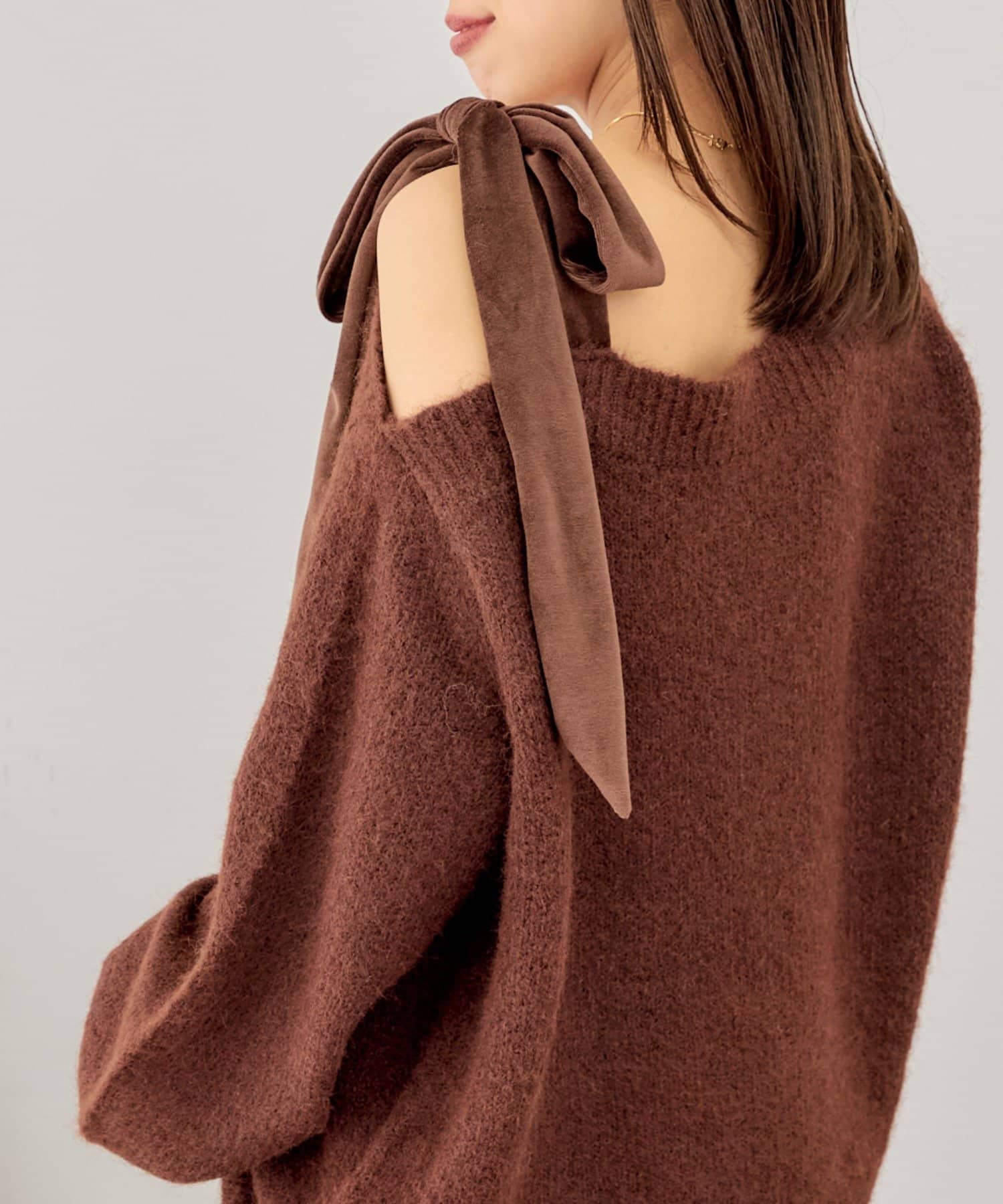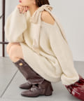 ベロアリボンワンショルルーズニット