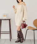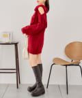 ベロアリボンワンショルシャギーミニワンピース