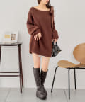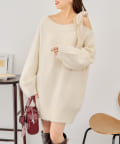 ルーズな丈感のワンショルニットワンピース♡