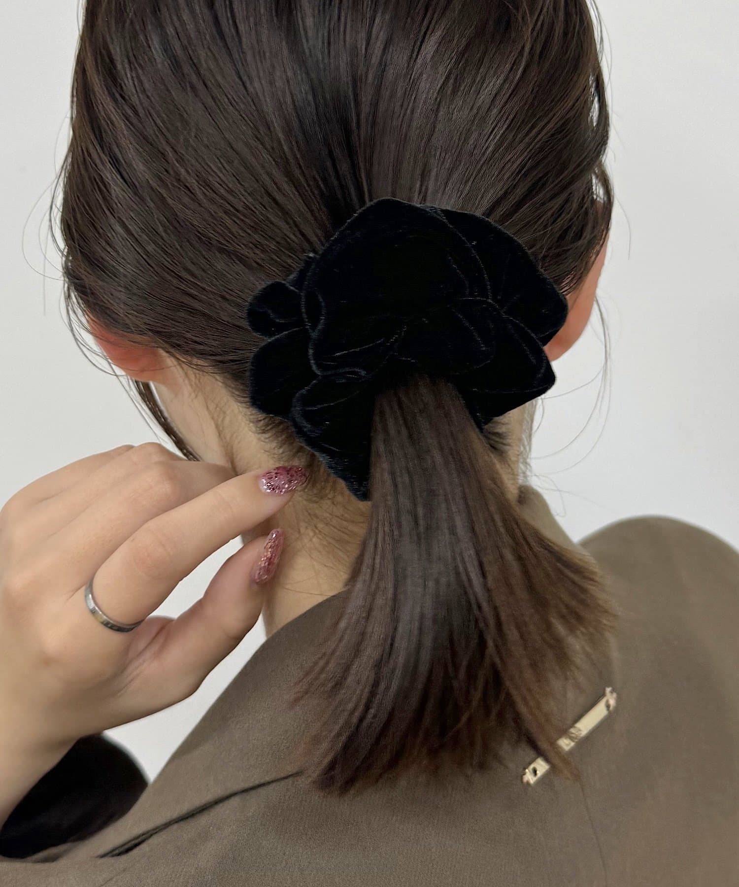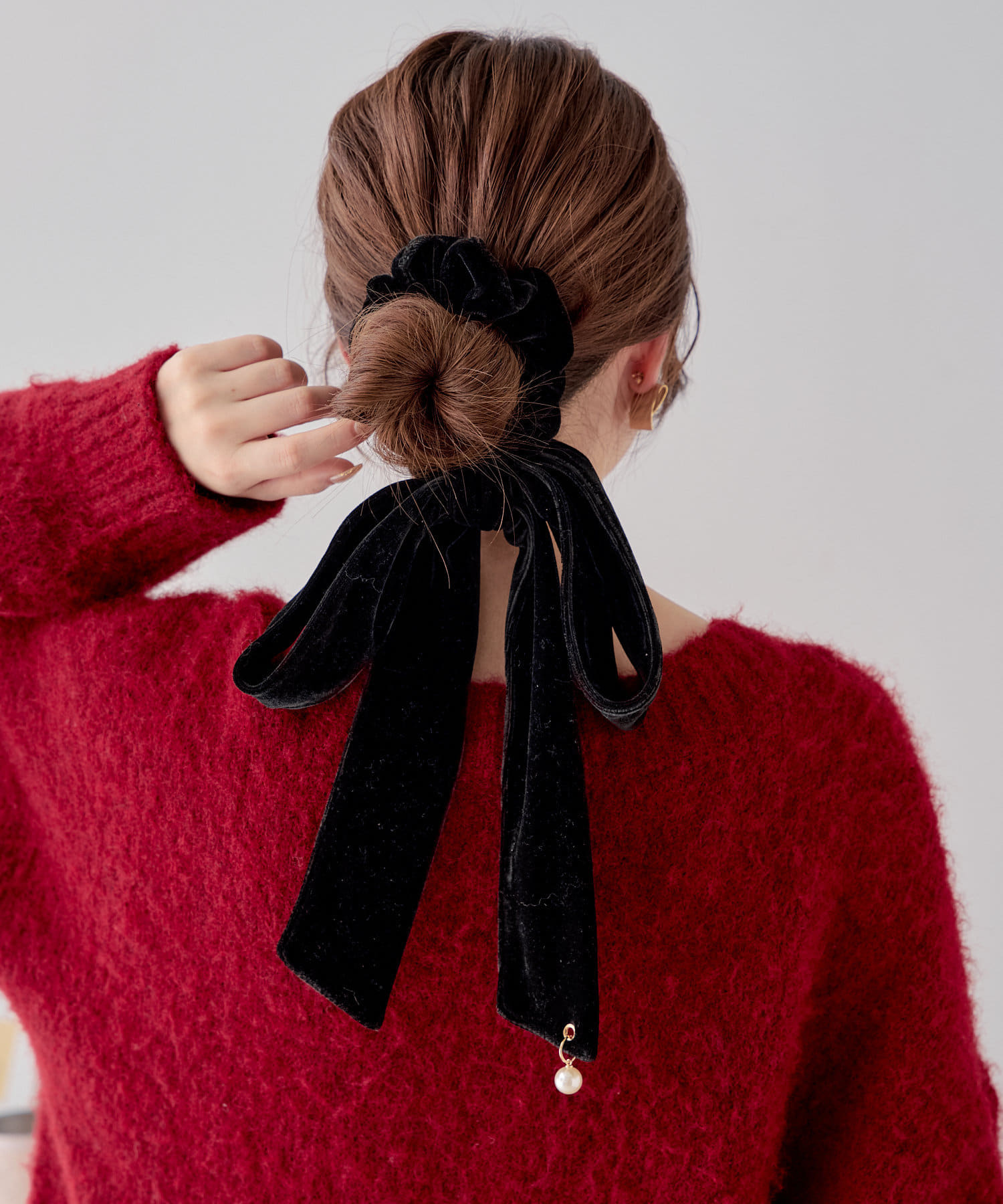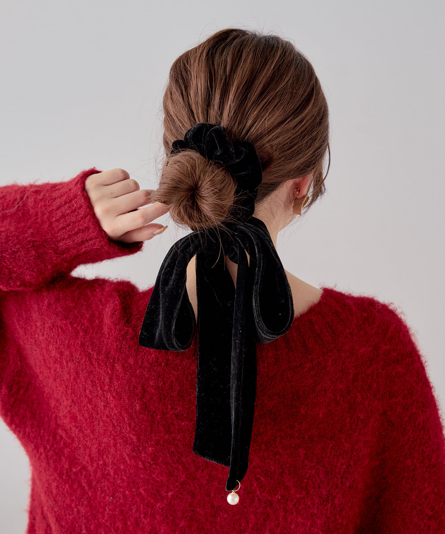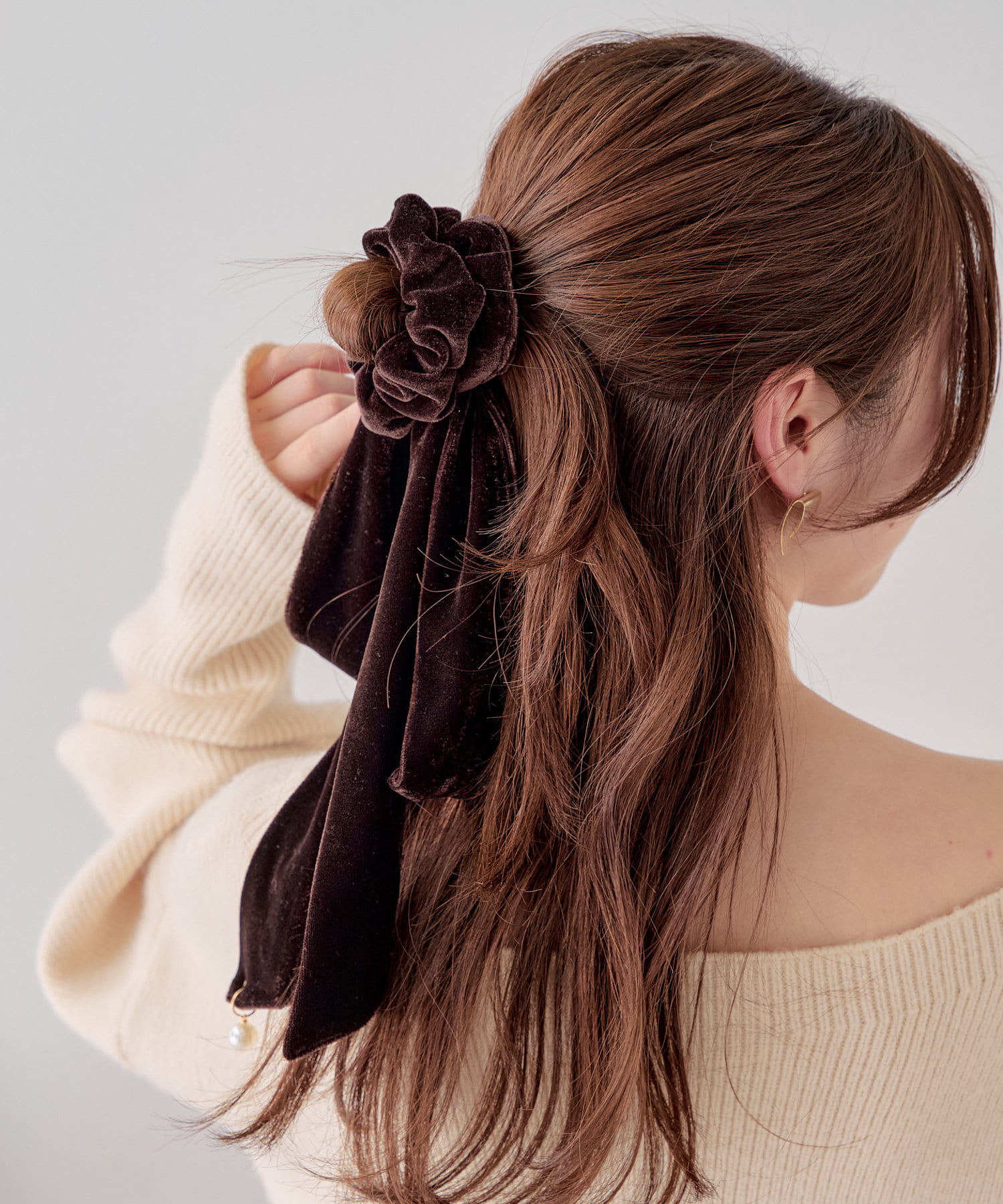 ベロア素材が高見えする2wayのリボンシュシュ♡