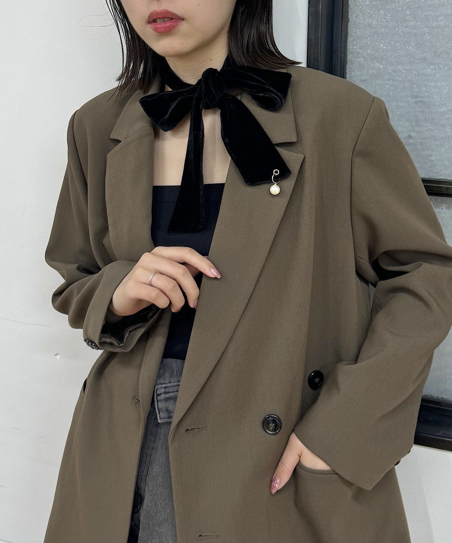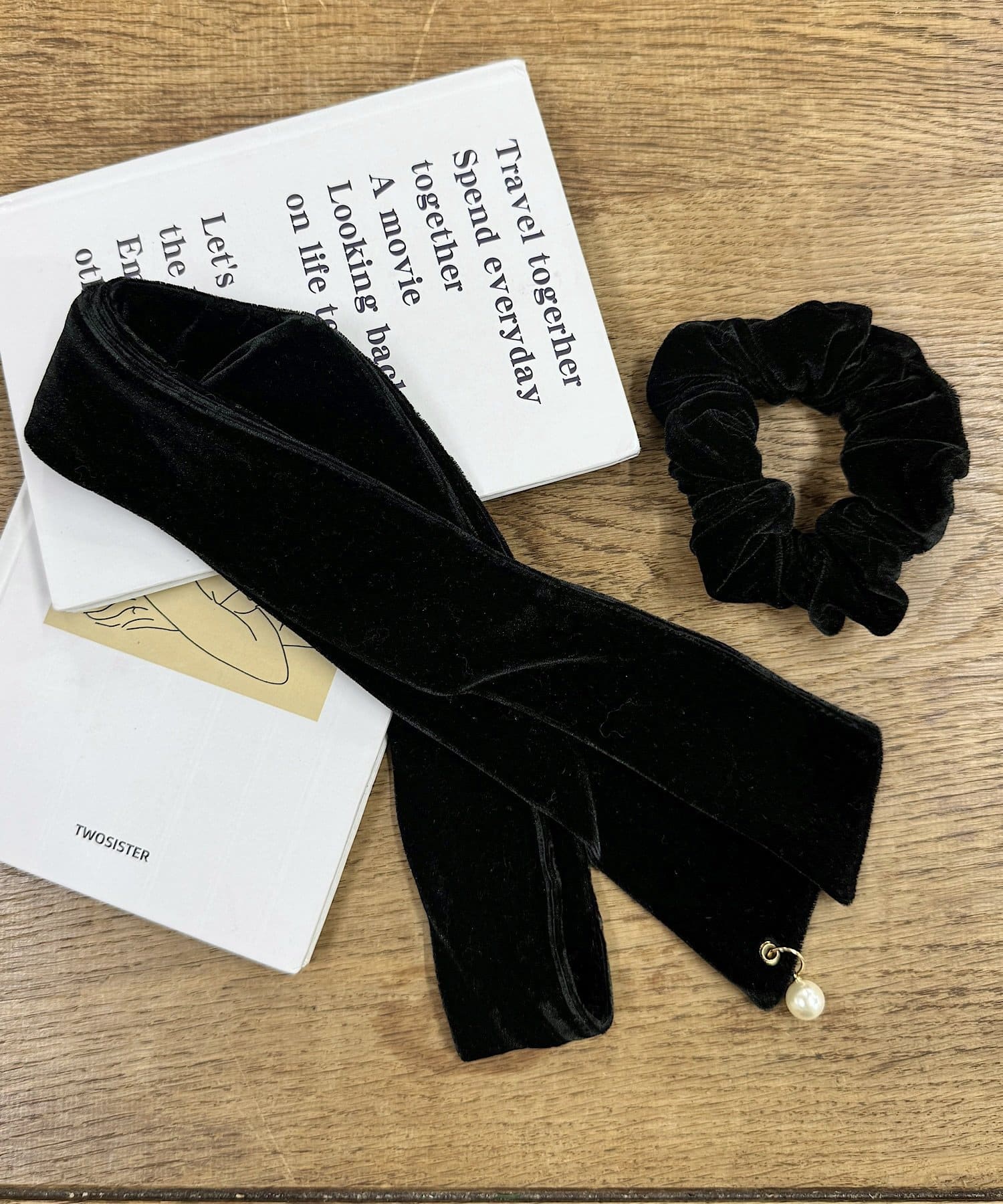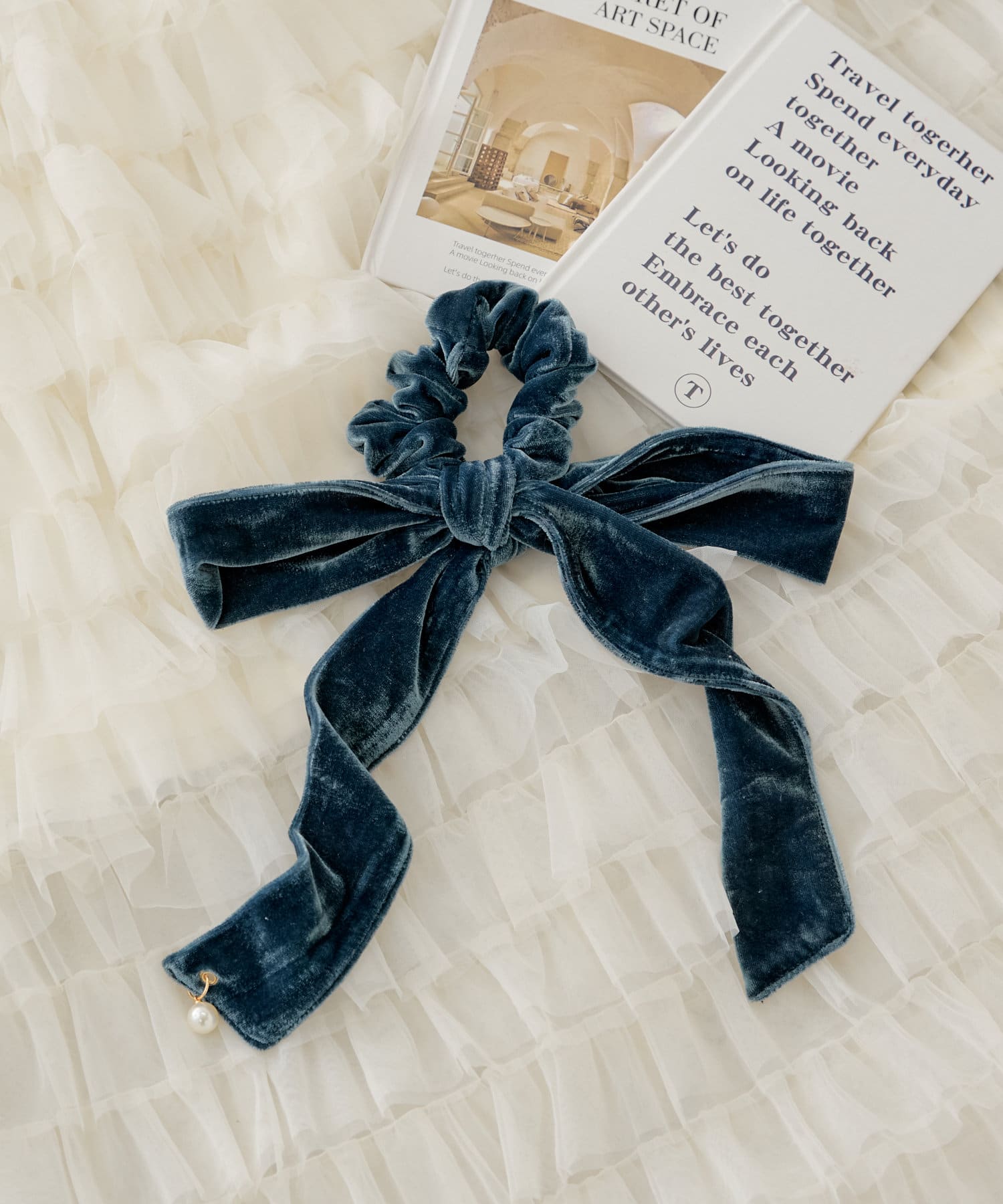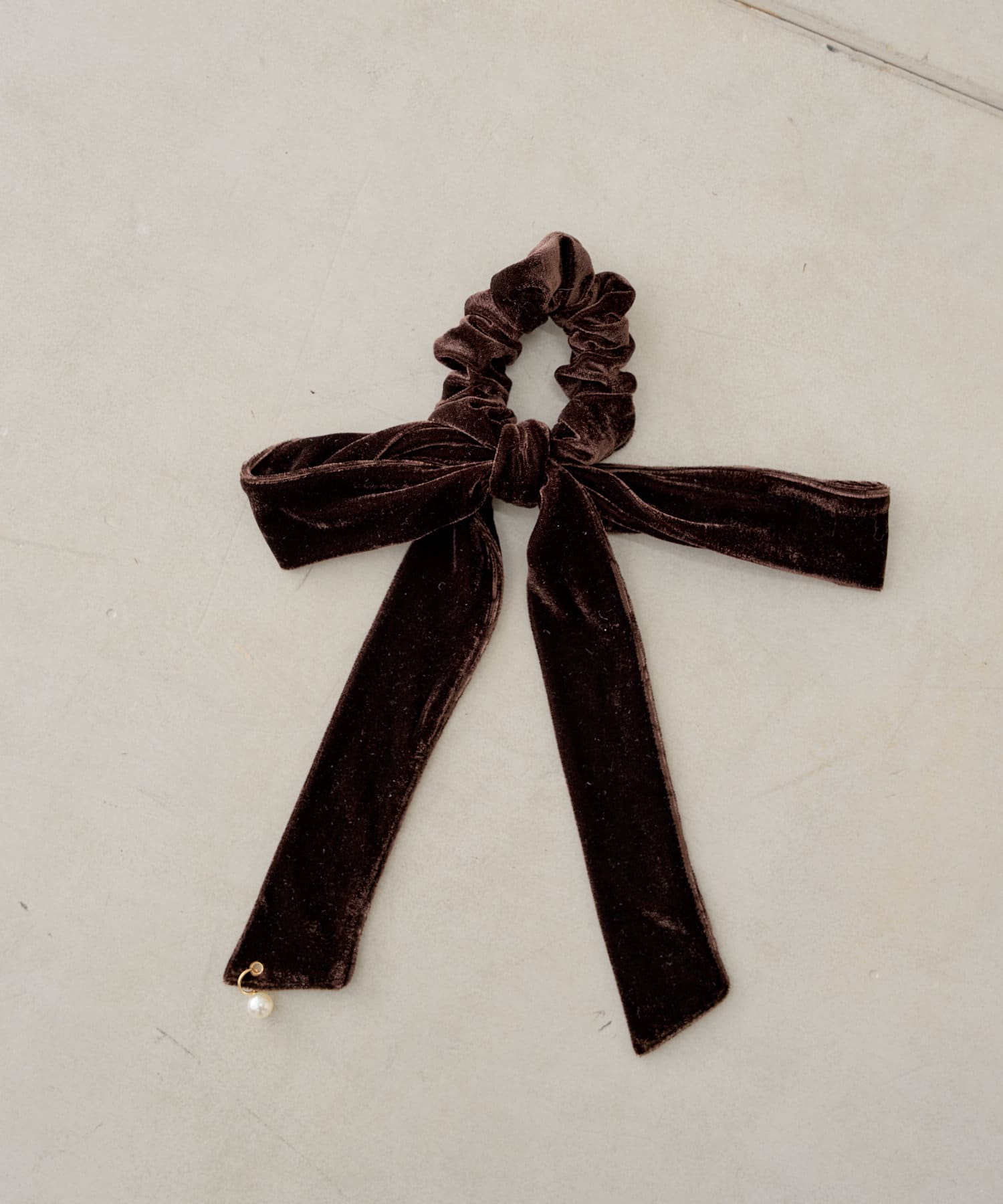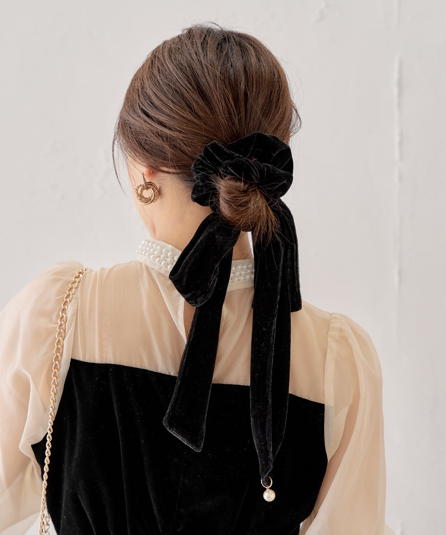 ベロア素材が高見えする2wayのリボンシュシュ♡