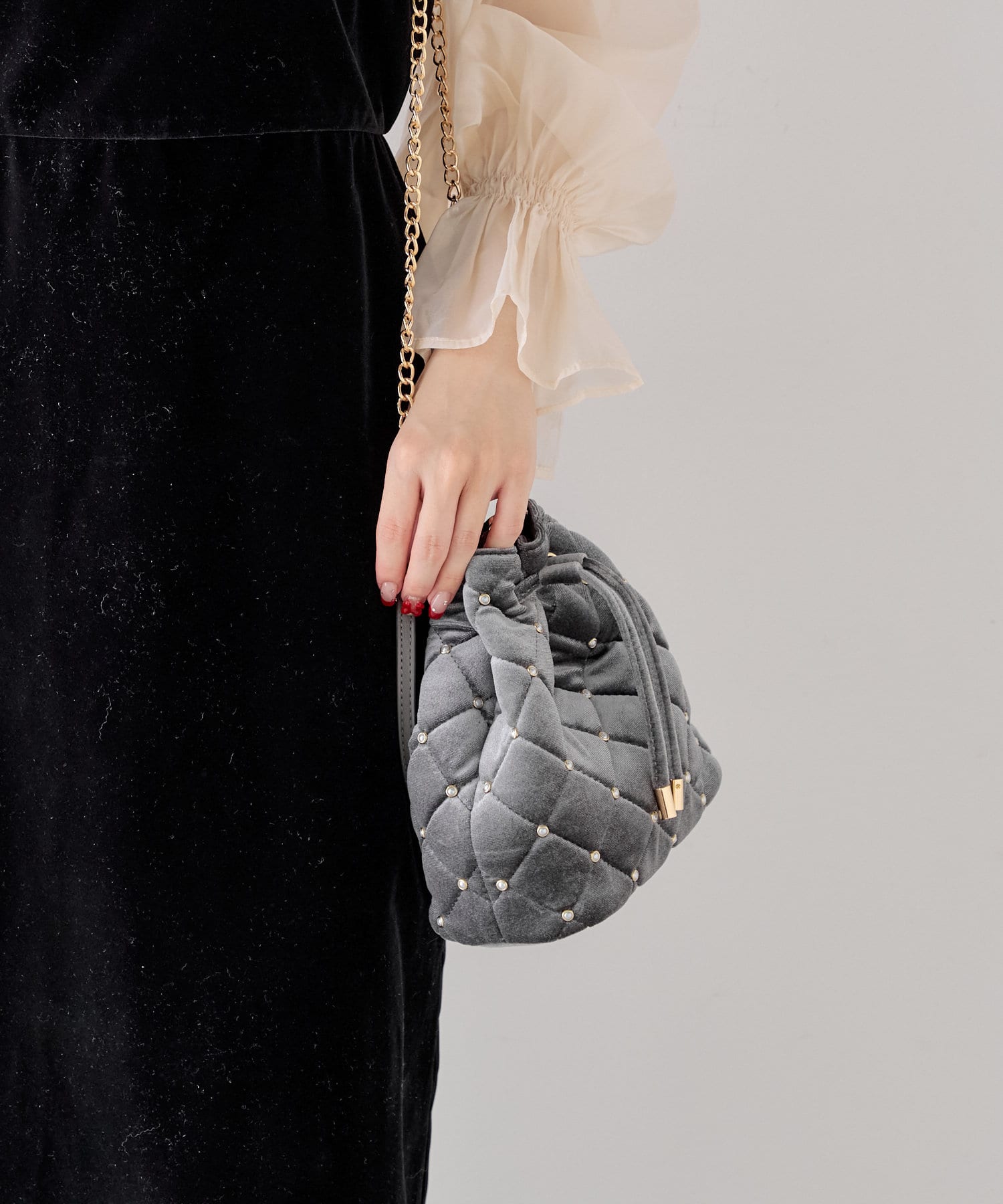 ベロア生地のキルティングデザインが高見えバッグ!