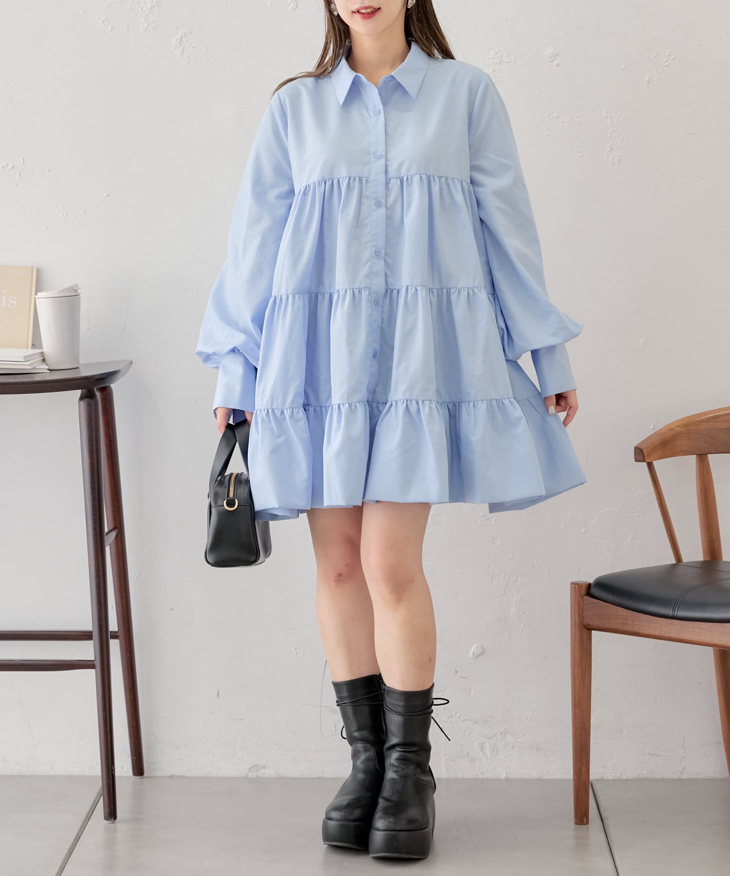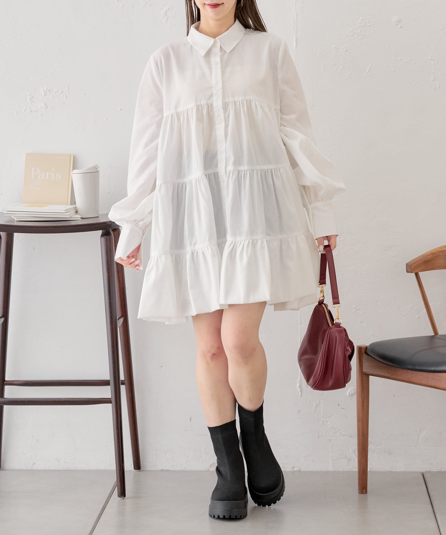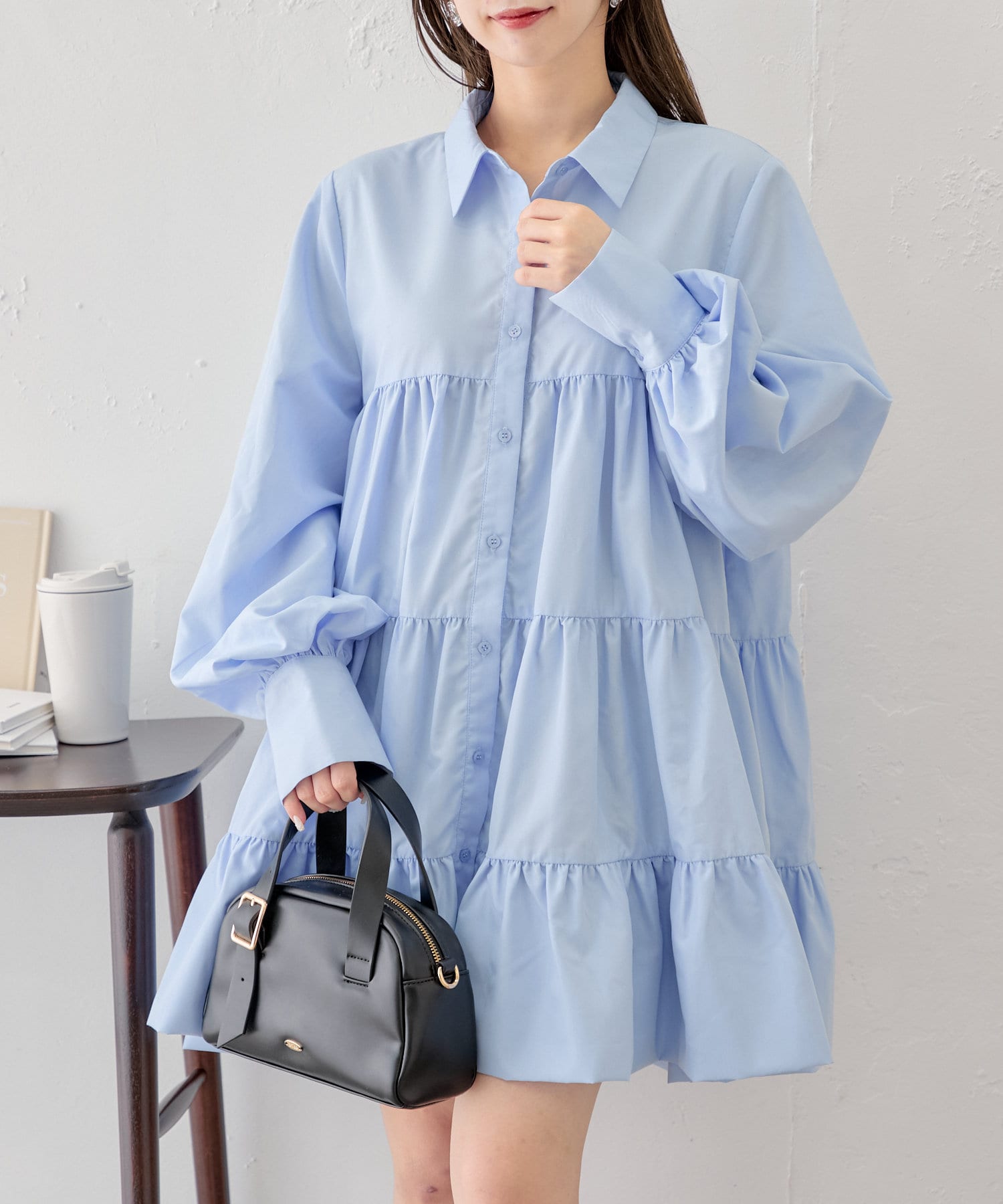ふんわりとしたシルエットのティアードが可愛いチュニックシャツ♡