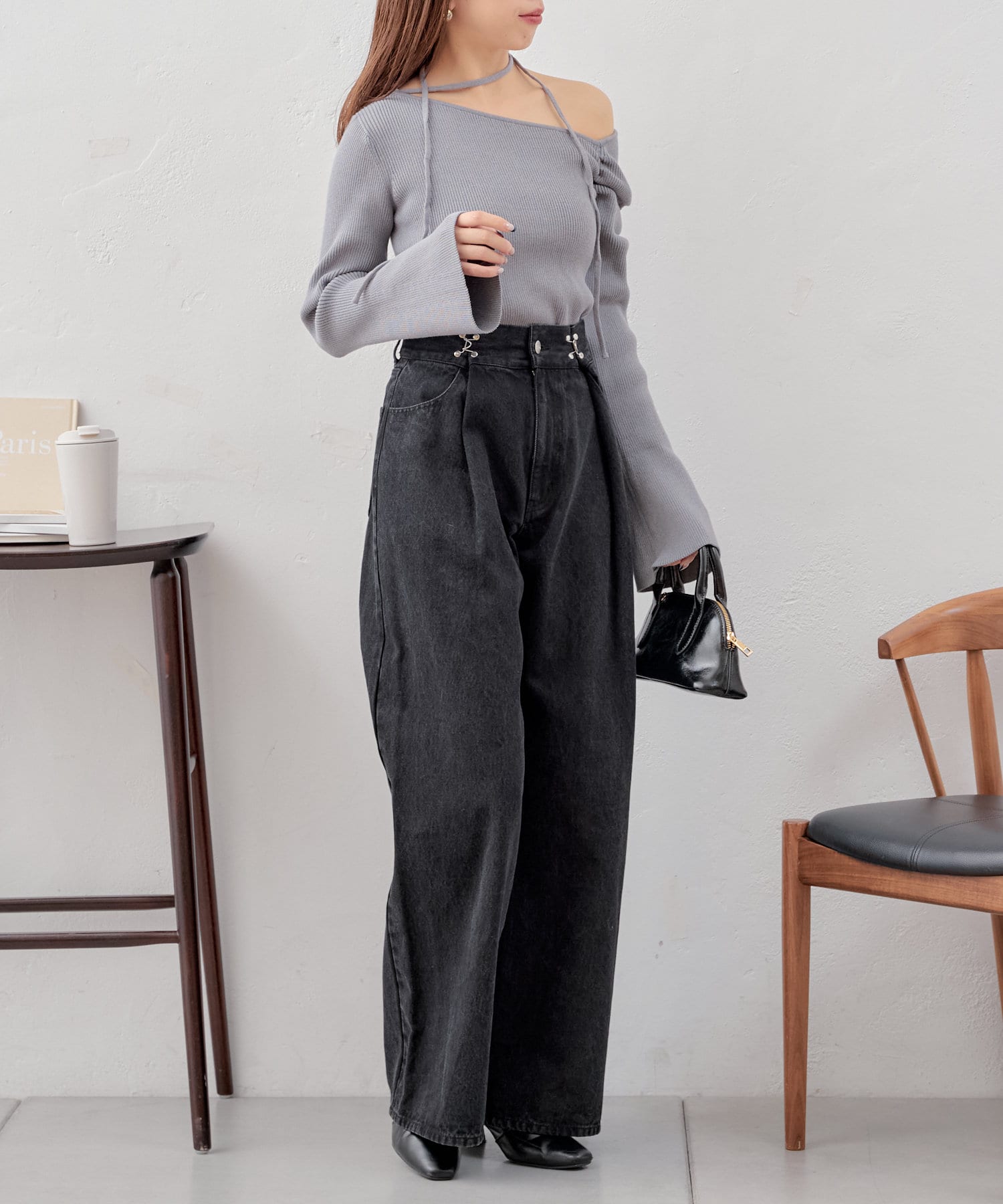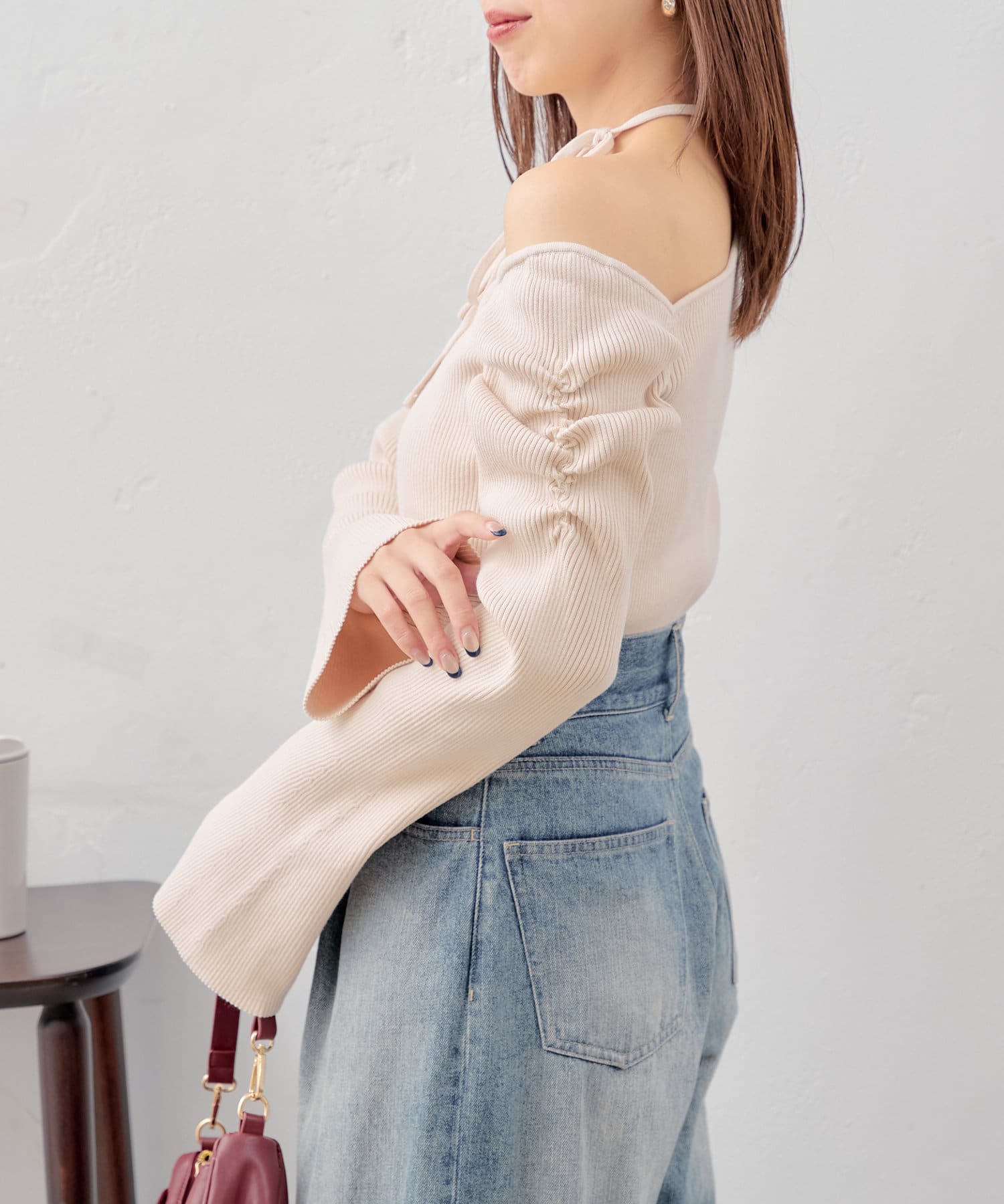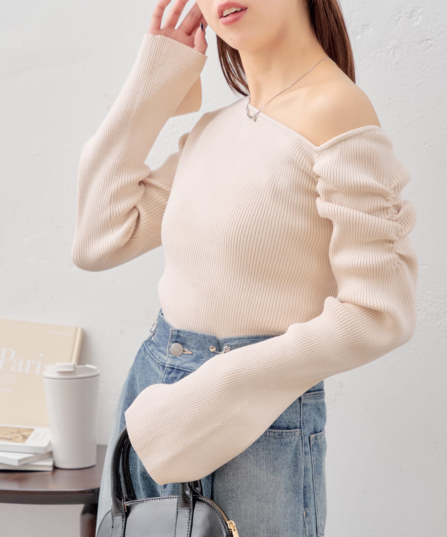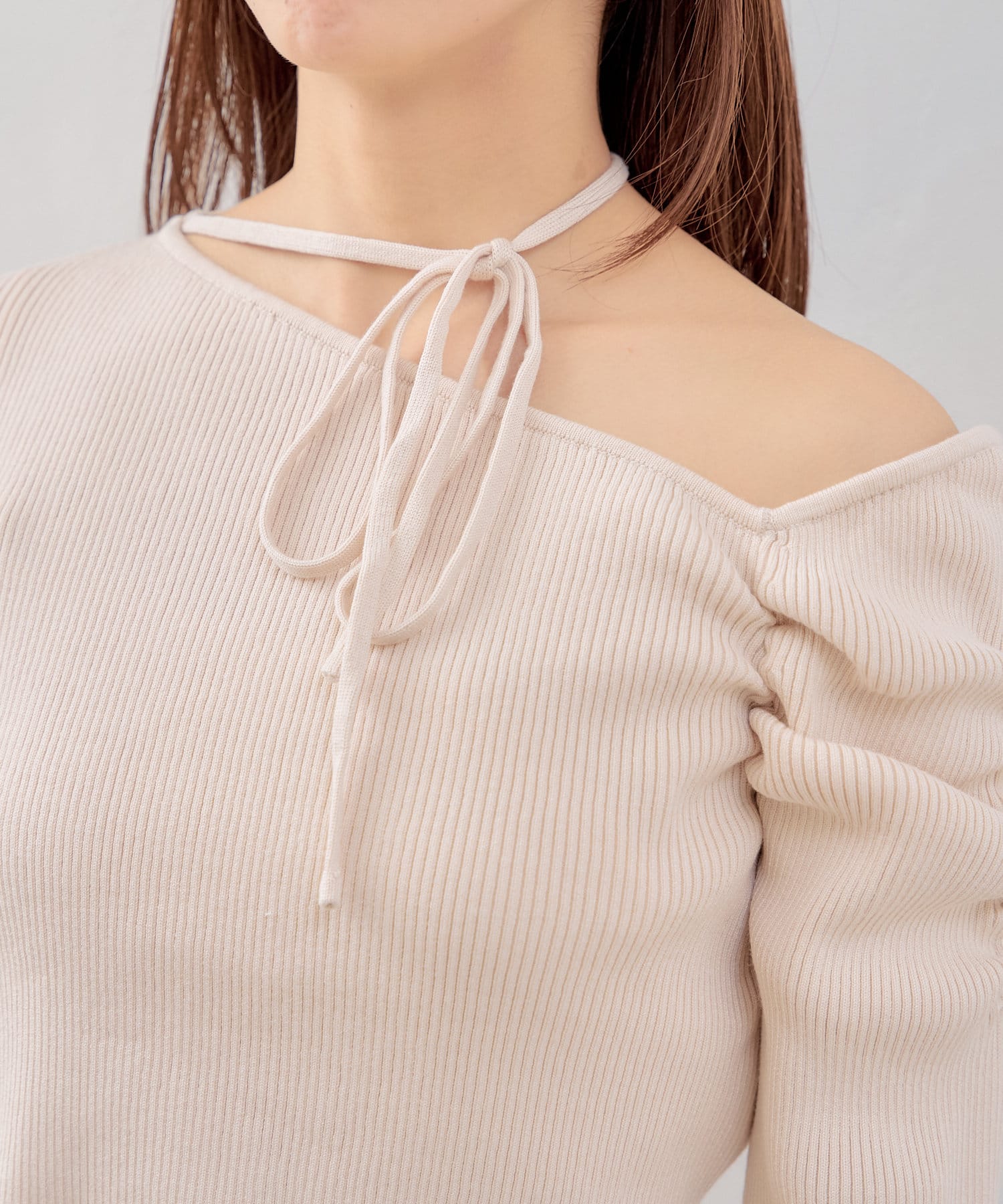 →(リブ素材は骨格的に苦手ですが伸縮性抜群でワンショルデザイン