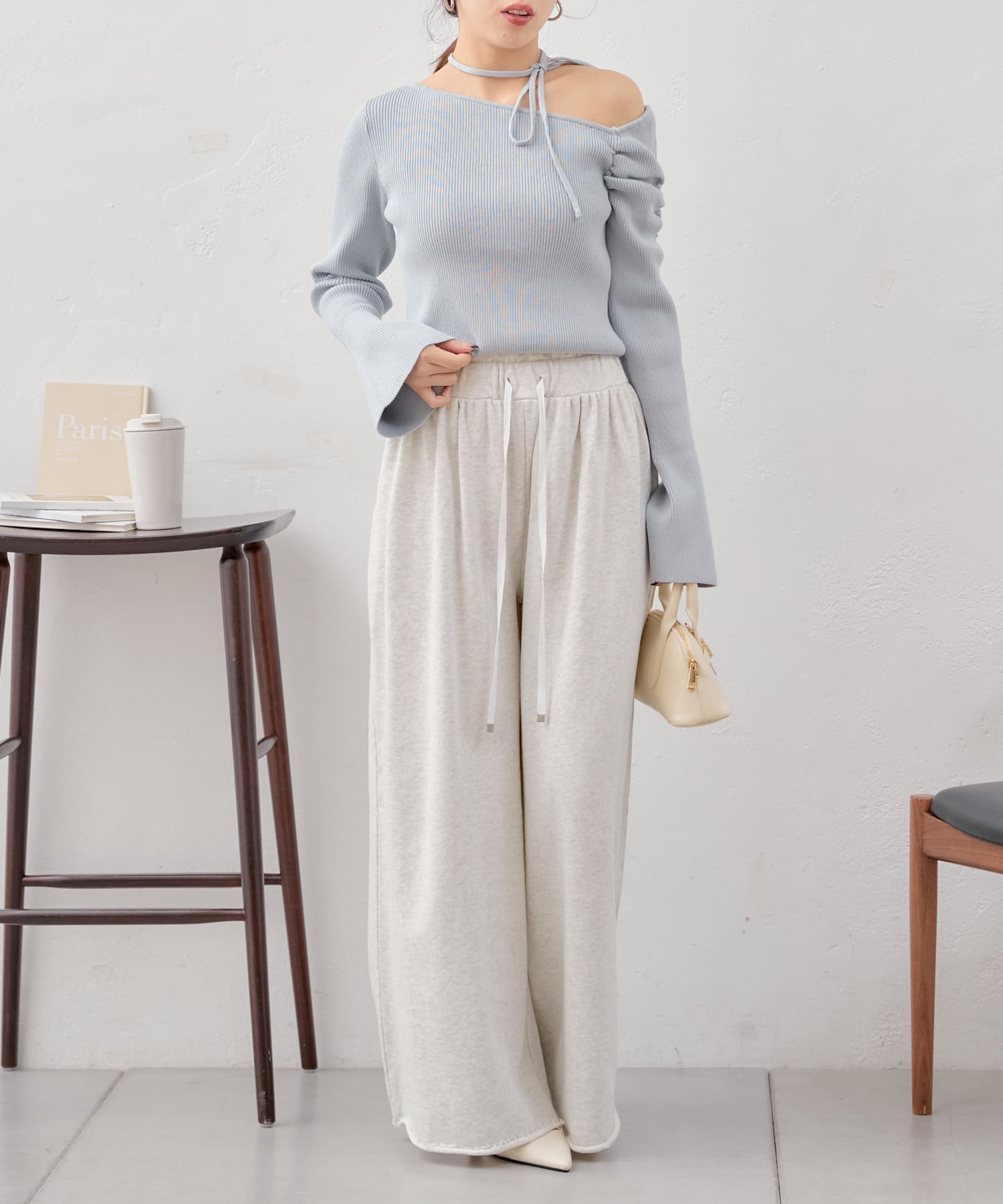 ・キレイめなトップスですが、スウェット素材のボトムを持ってくるとカジュアルにも着ていただけます。