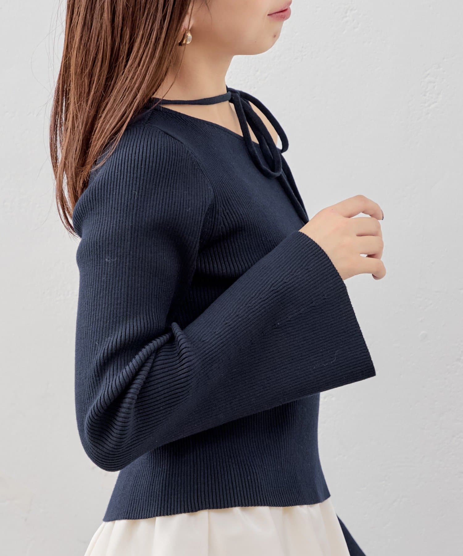 ・リブ素材で身体のラインをキレイに見せてくれるので華奢見えし、スタイルアップ効果も。