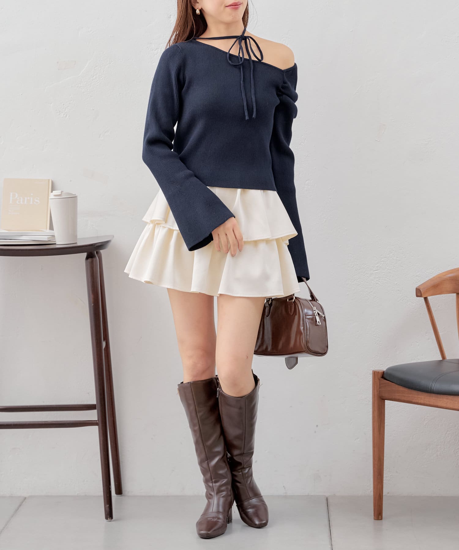 取り外しできる肩紐はそのままリボン結びにして着ると華奢見えしておすすめです!)