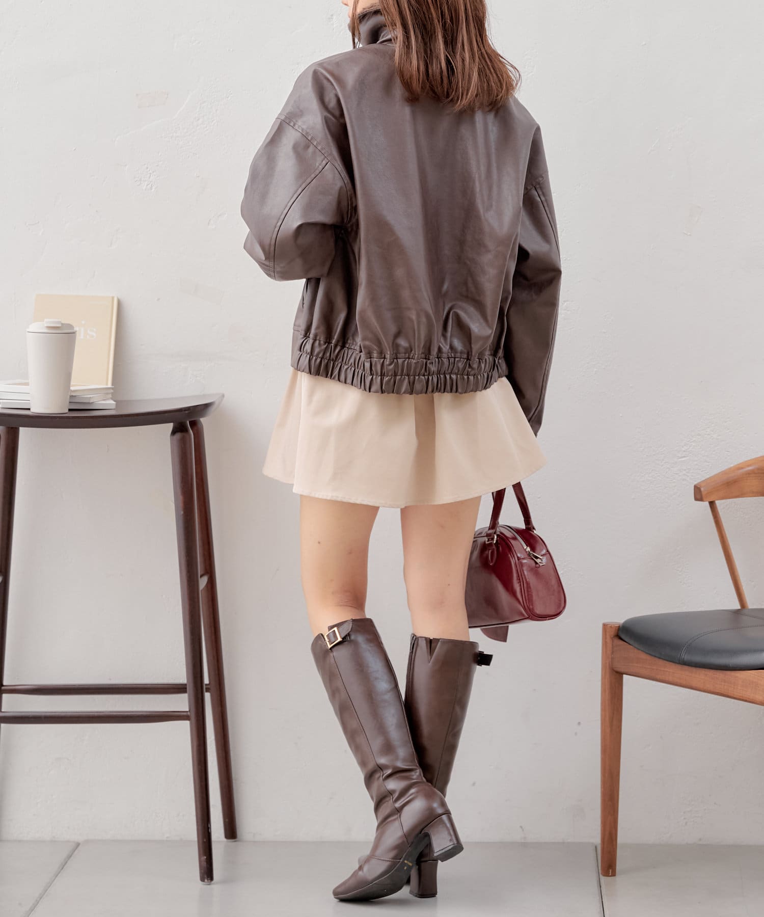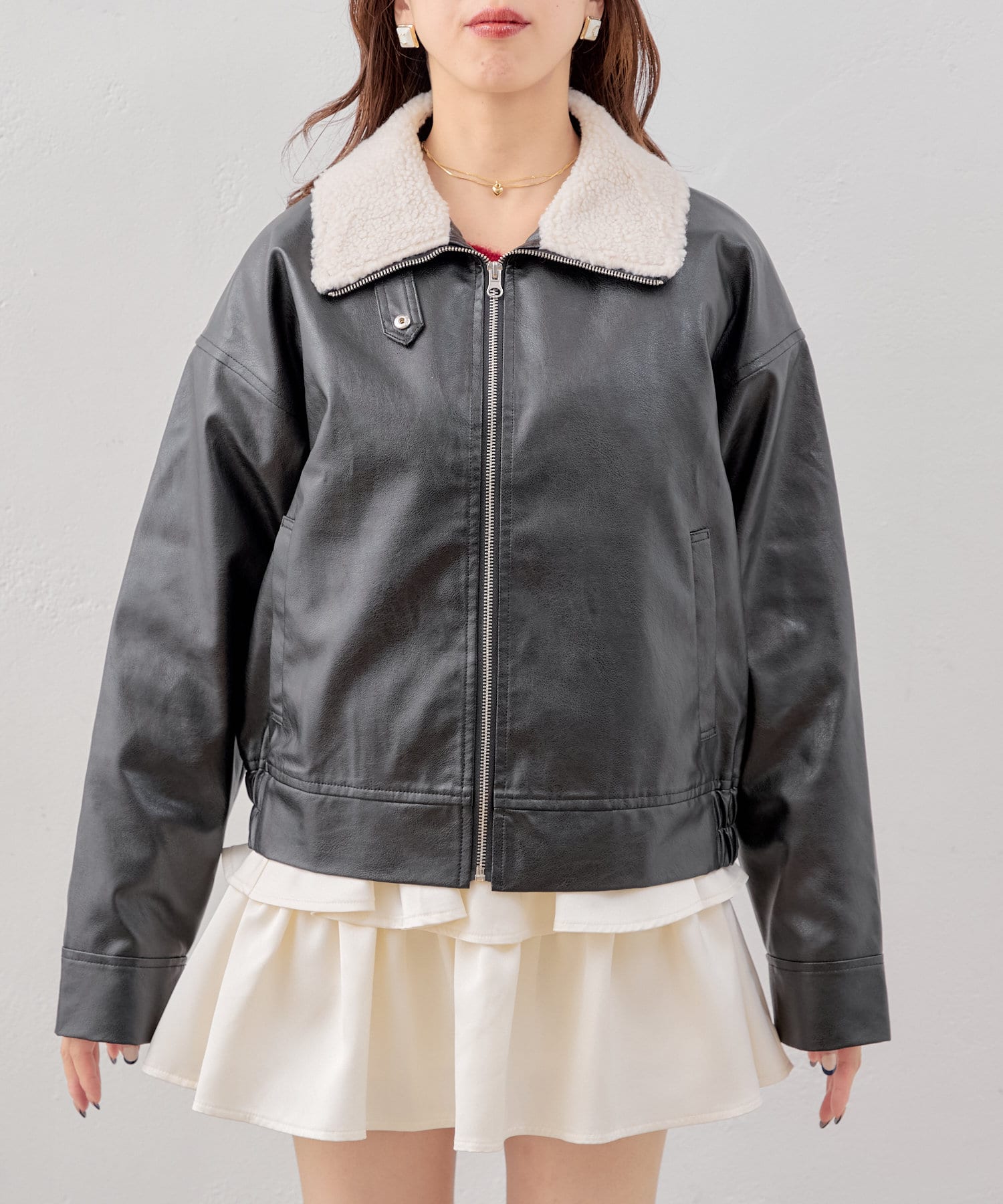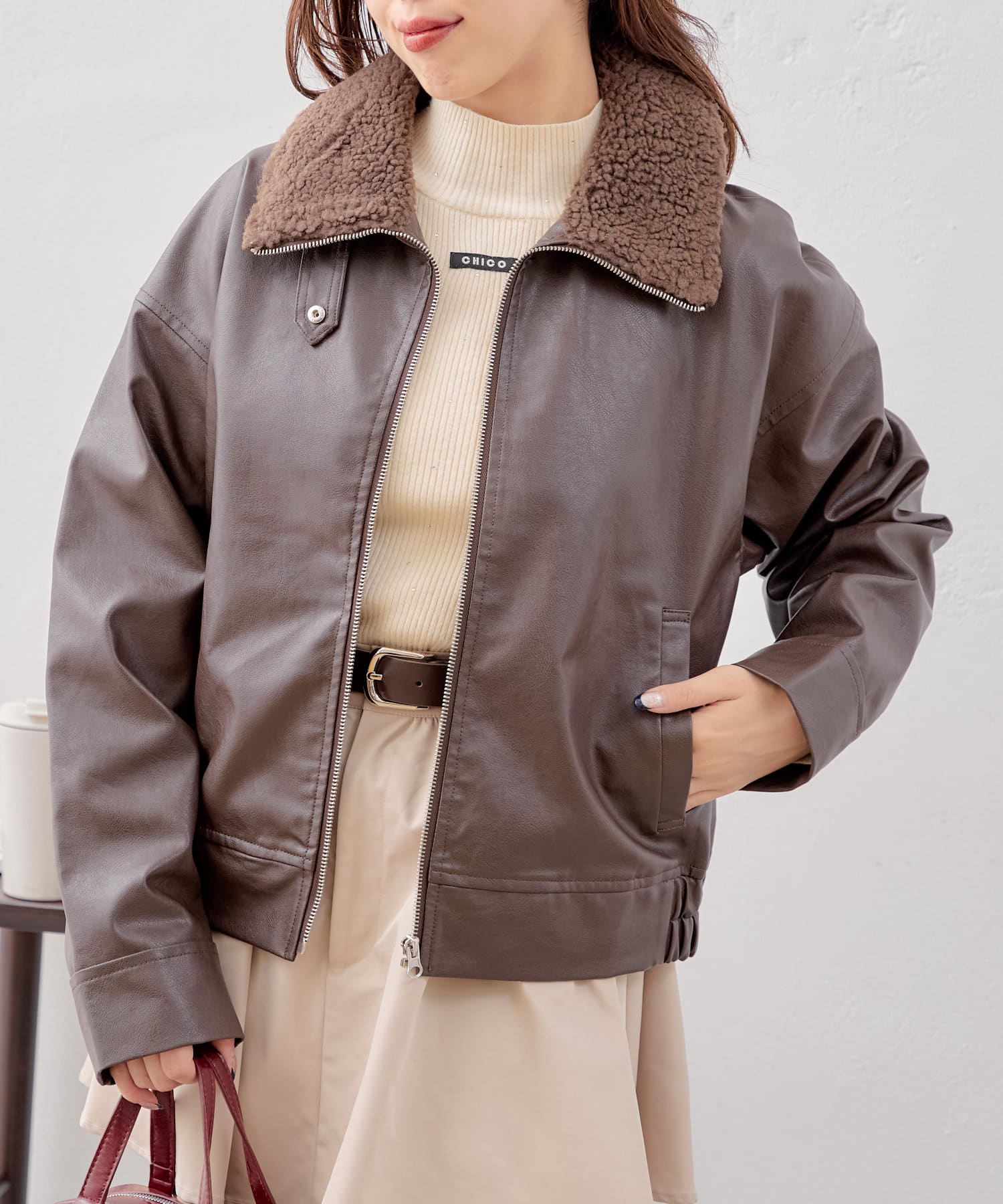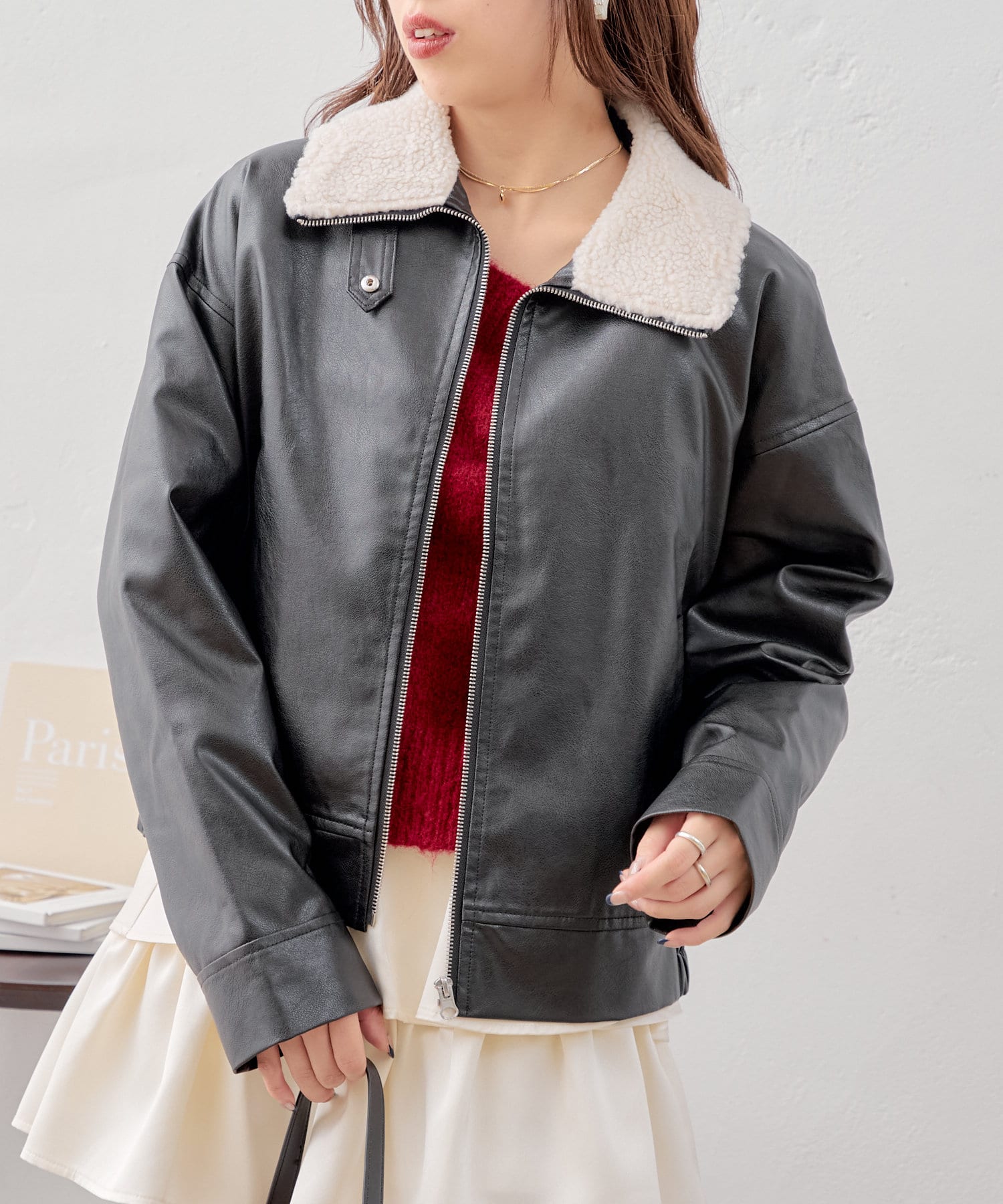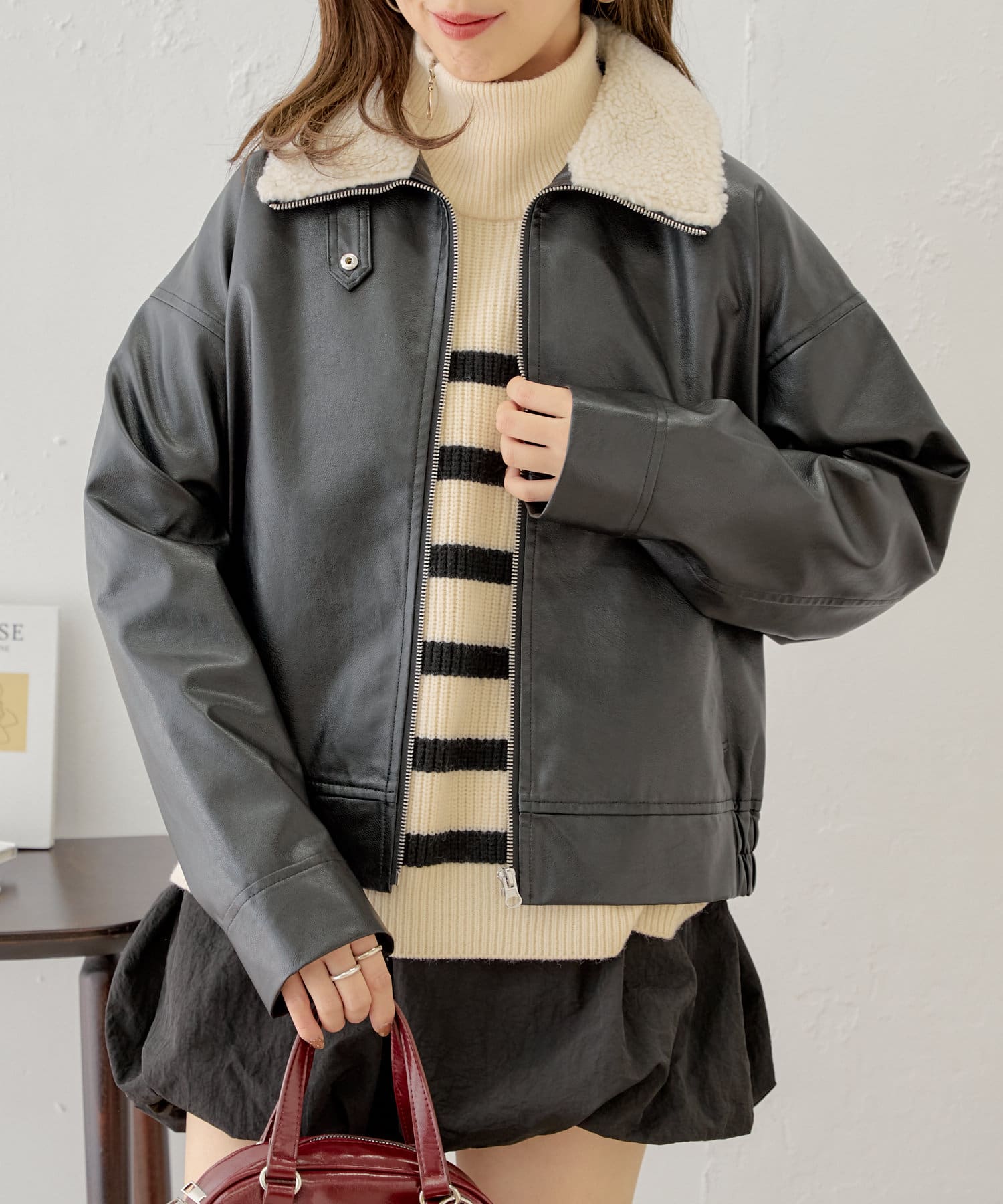 ・レザージャケットなのに軽量なので冬のお出かけコーデにもおすすめです。