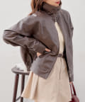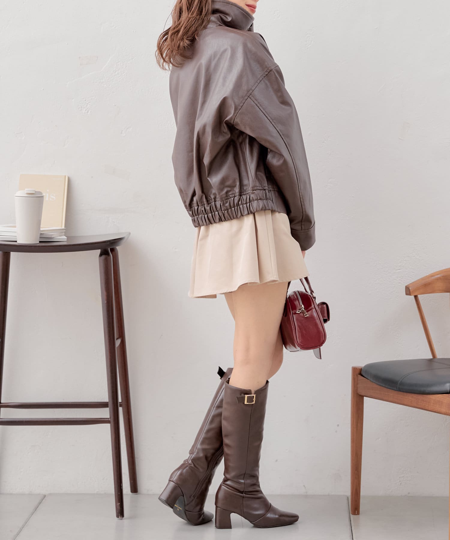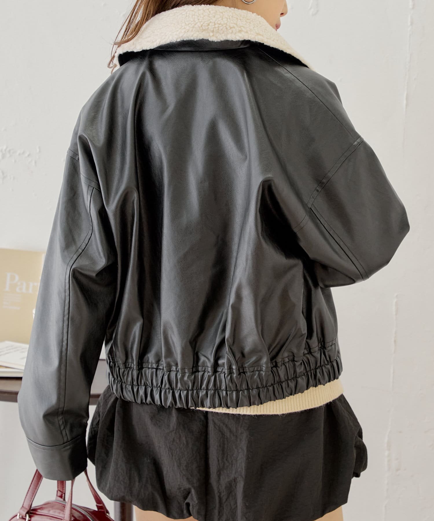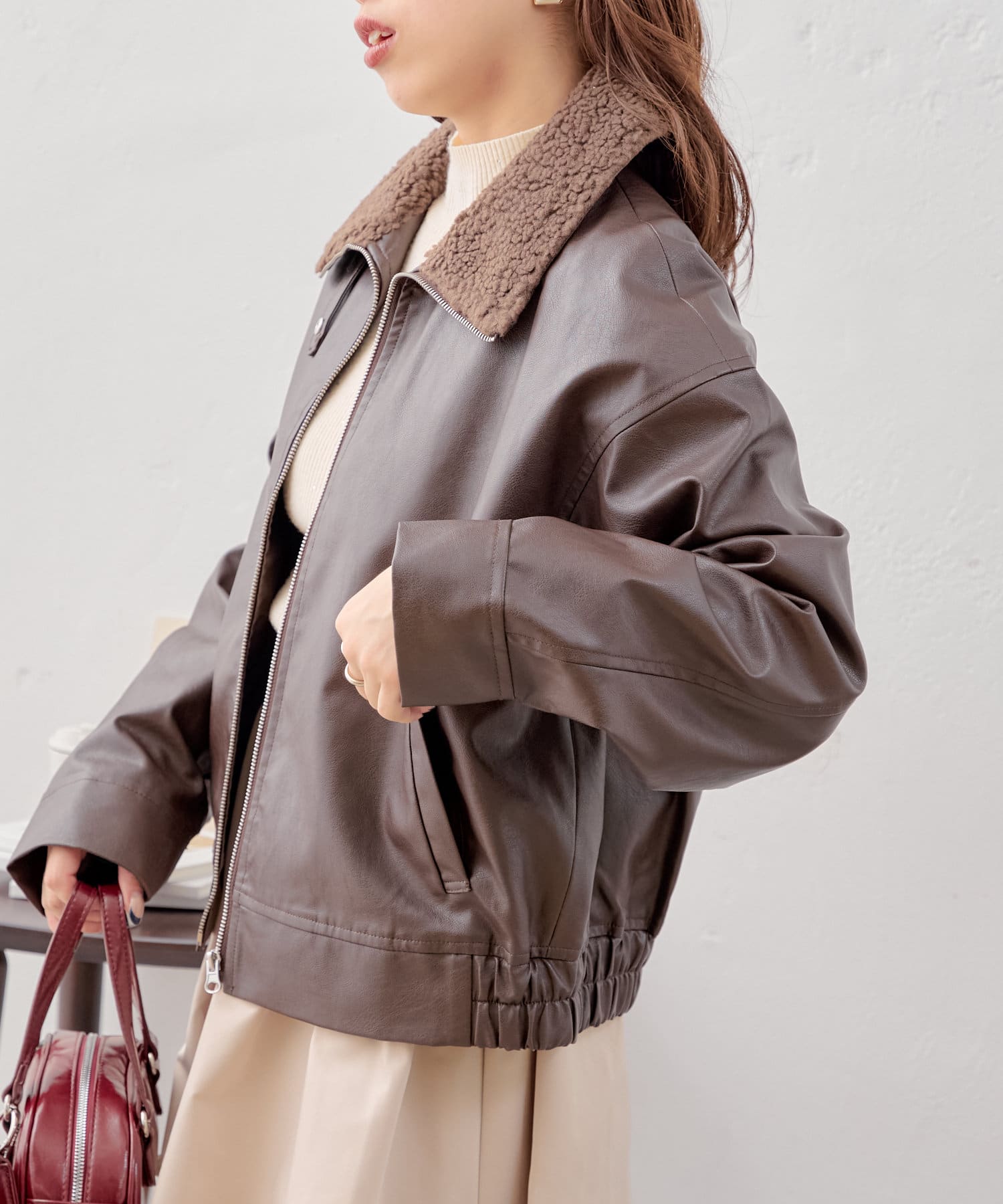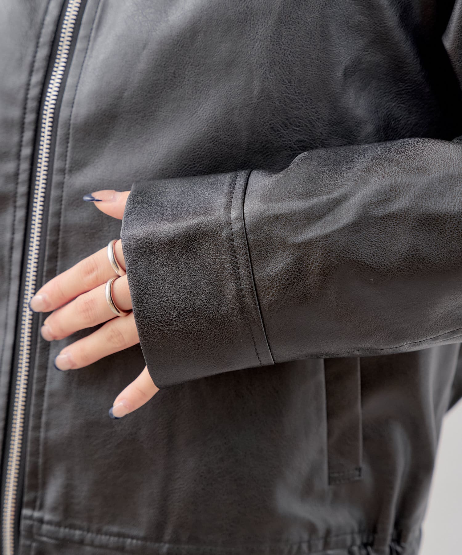 ・レザージャケットなのに軽量なので冬のお出かけコーデにもおすすめです。