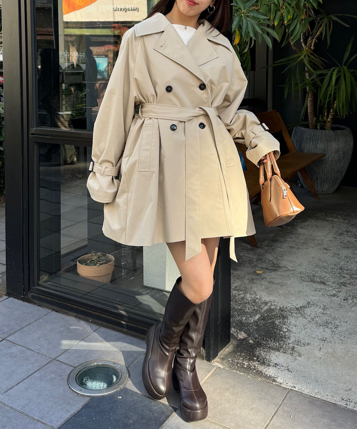 ベーシックなカラーで大人っぽく、さっと羽織るだけでお洒落に決まるトレンチコート