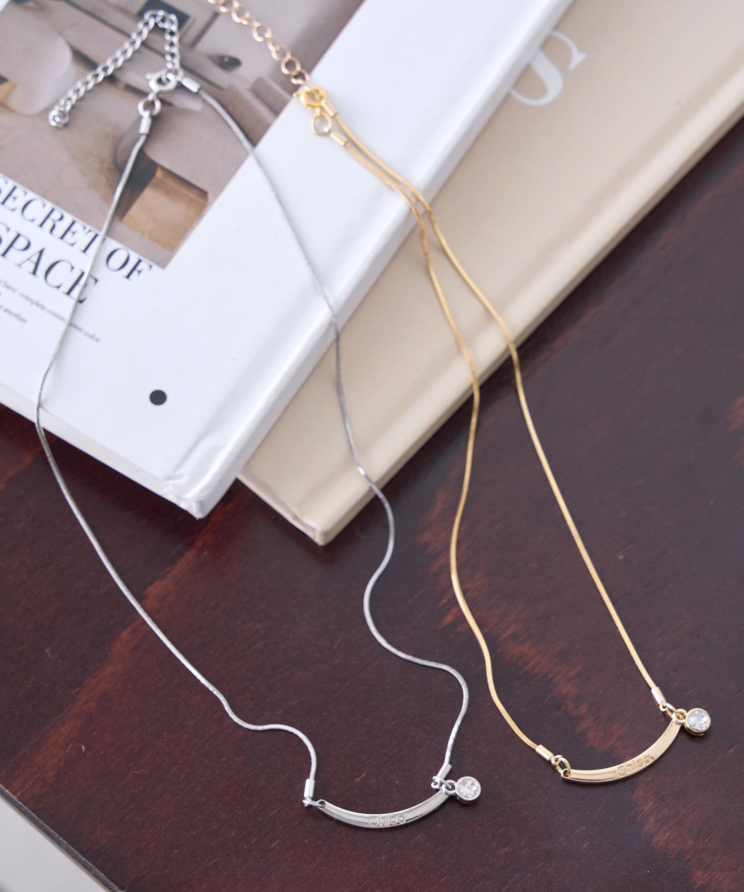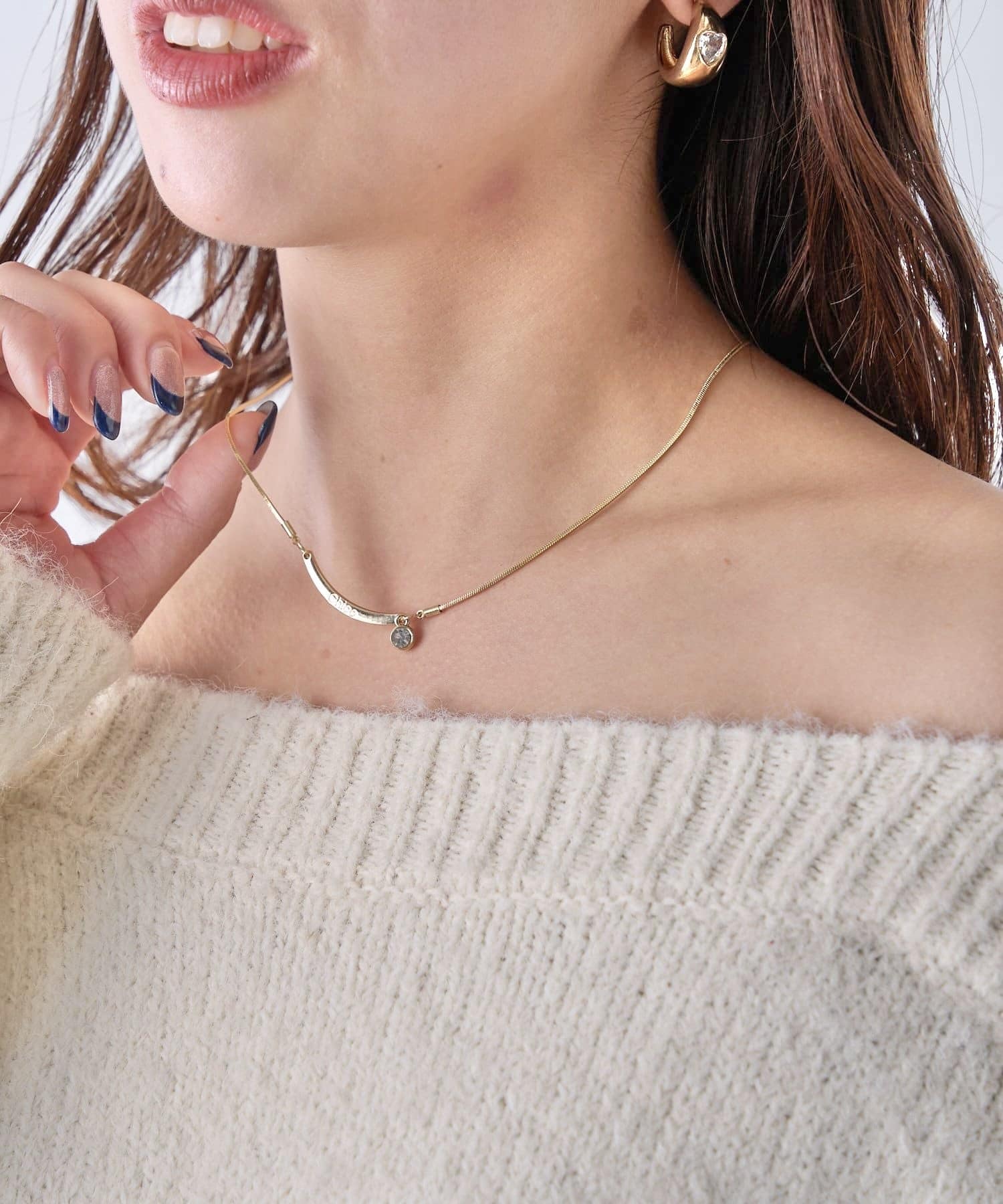 キラキラストーン付きのシンプルなデザインネックレス