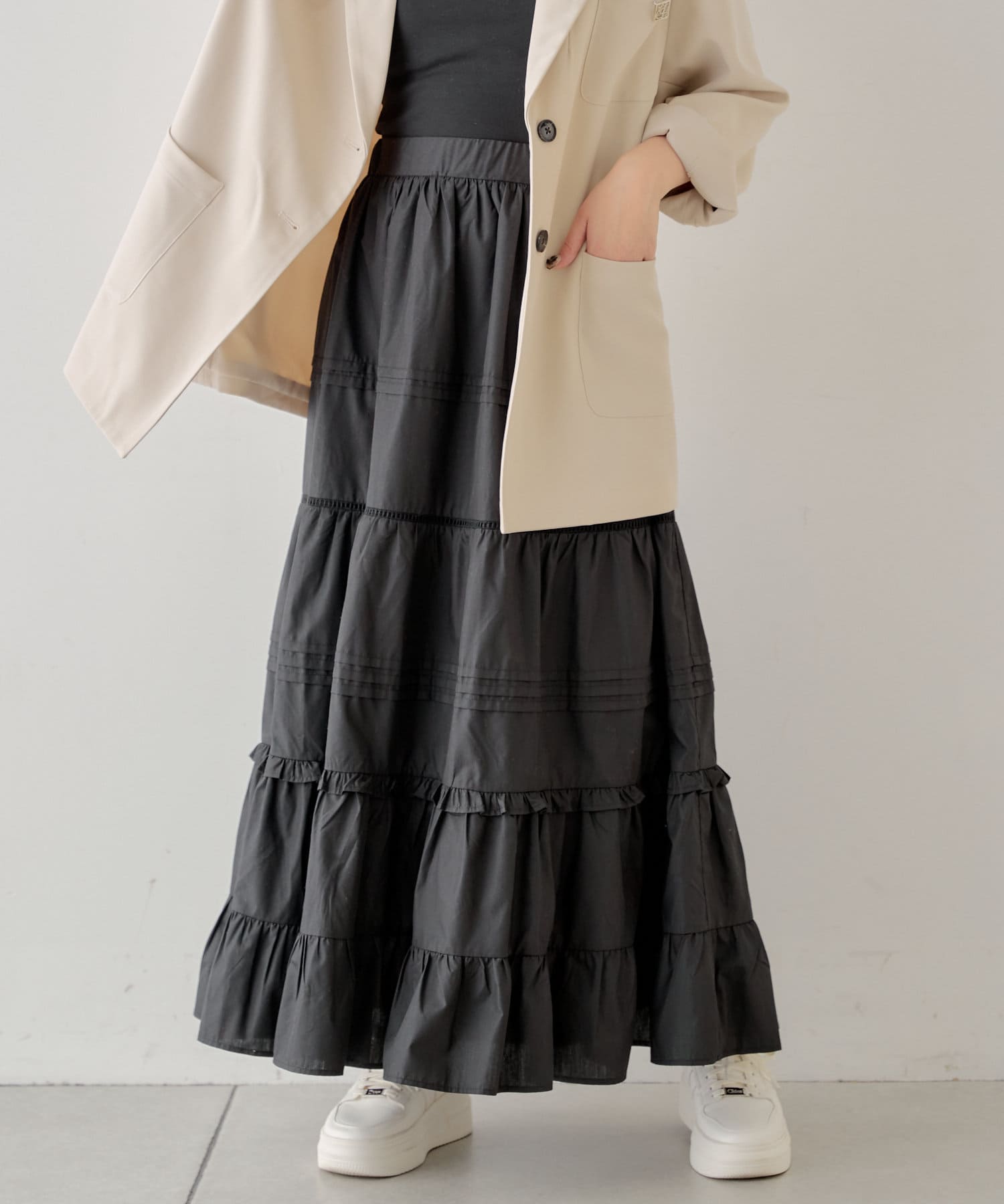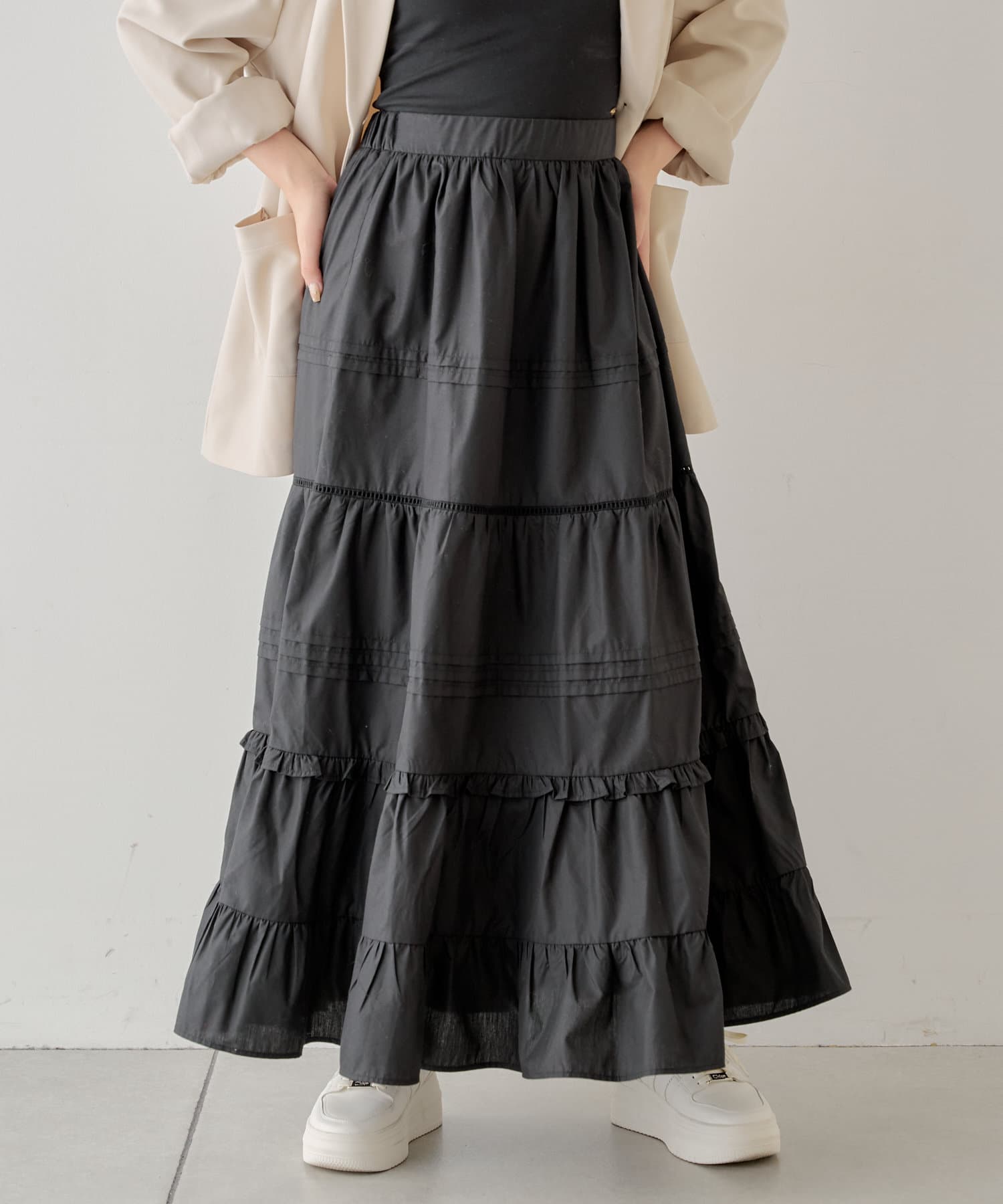 コットンティアードロングスカート