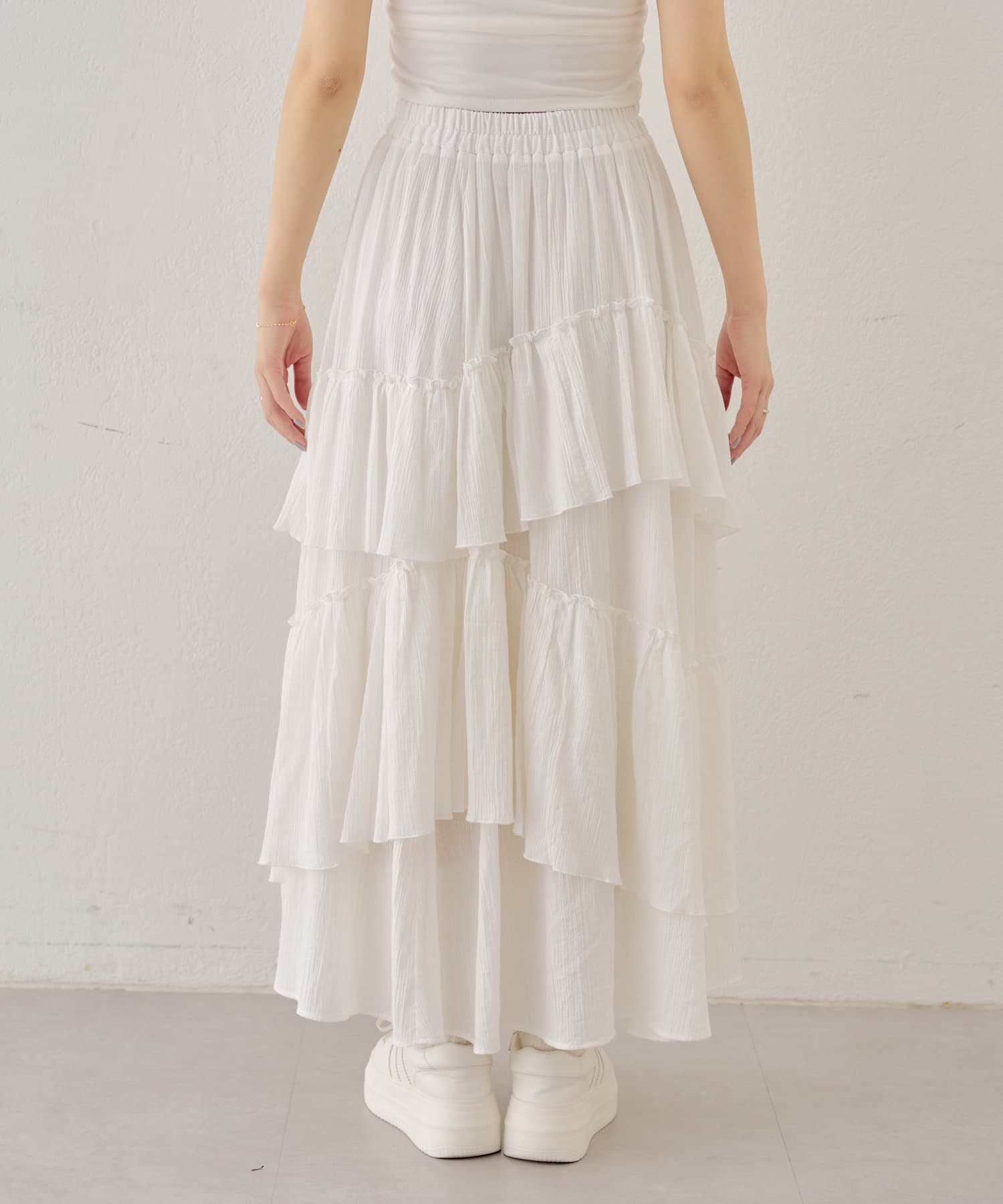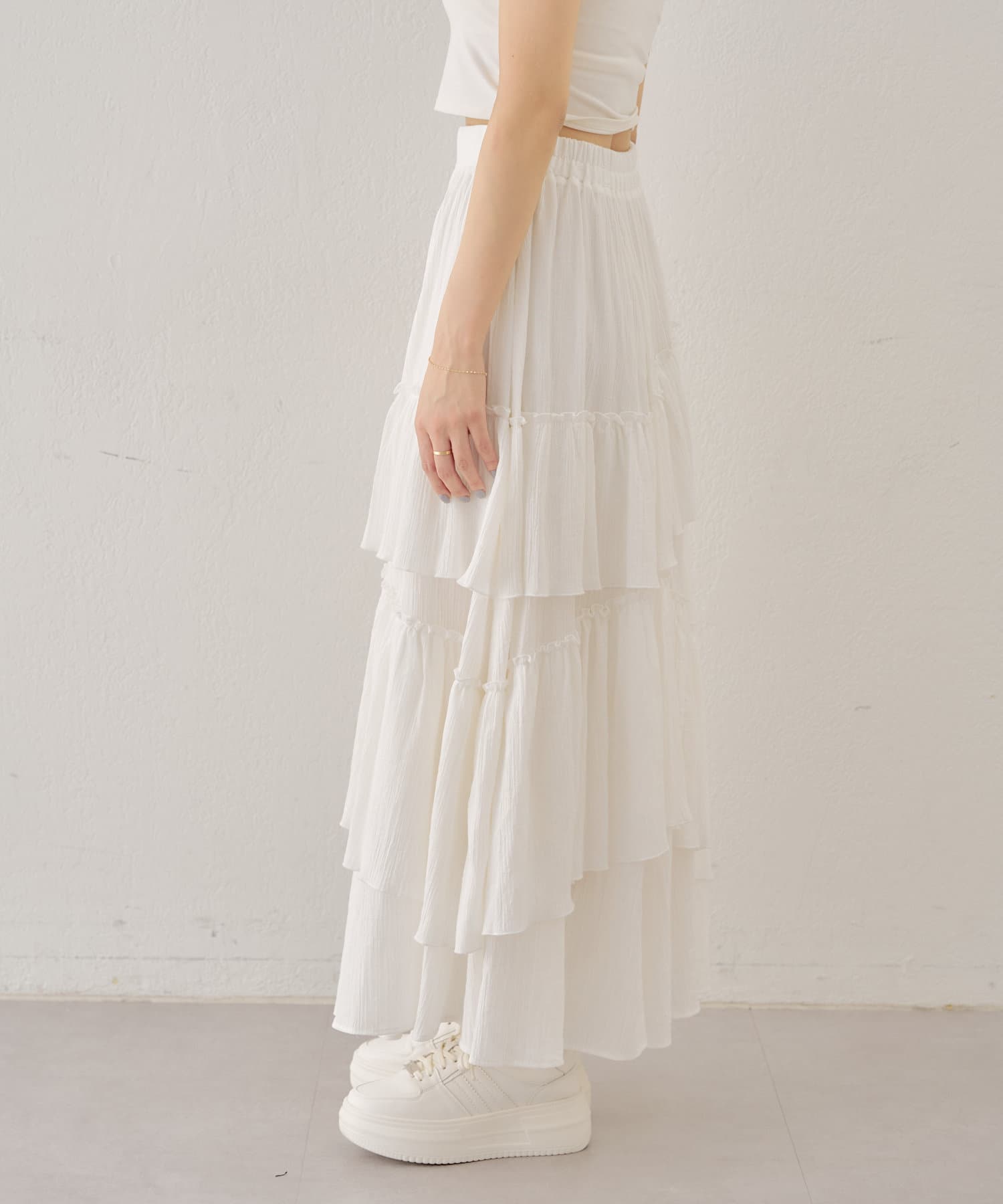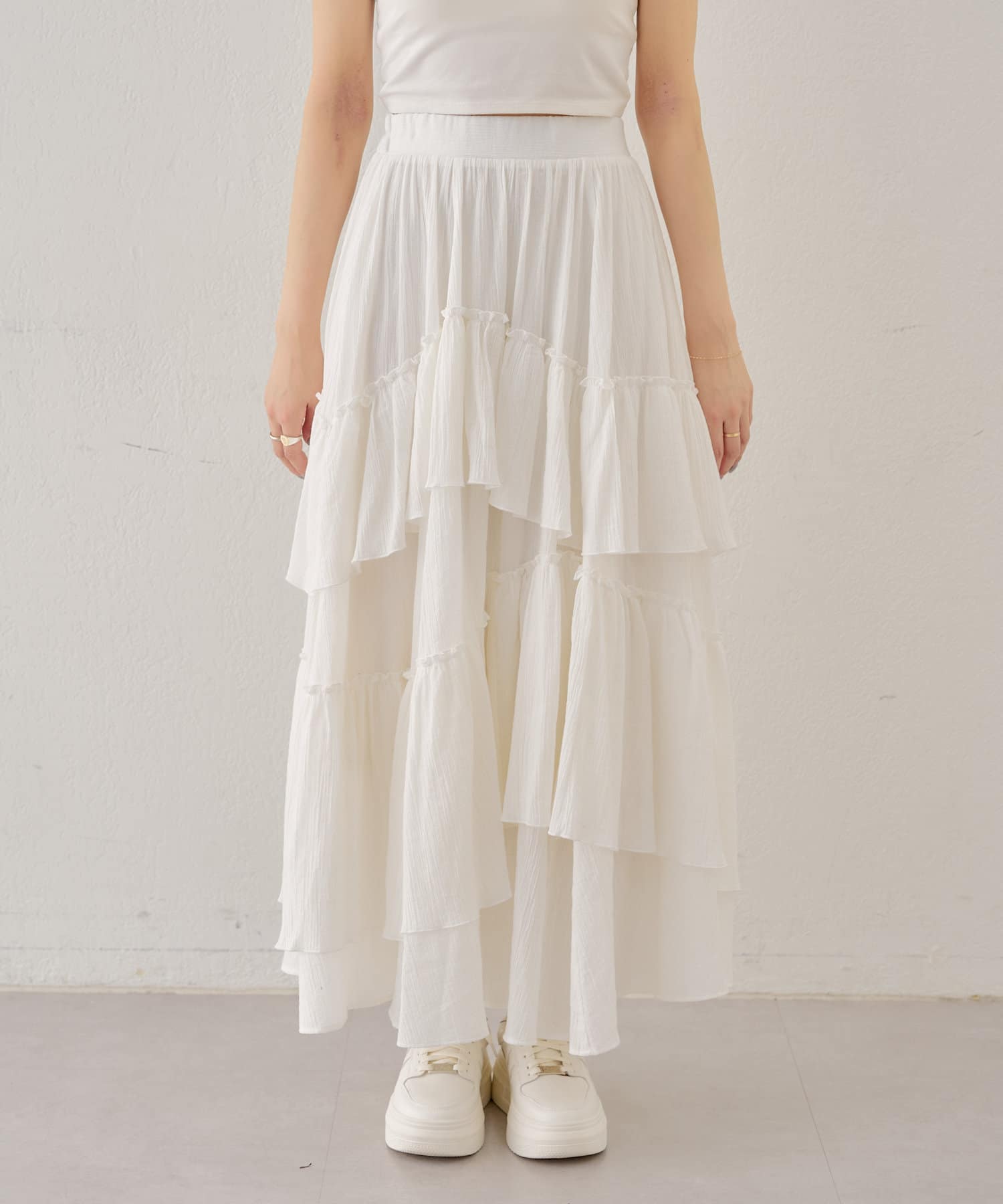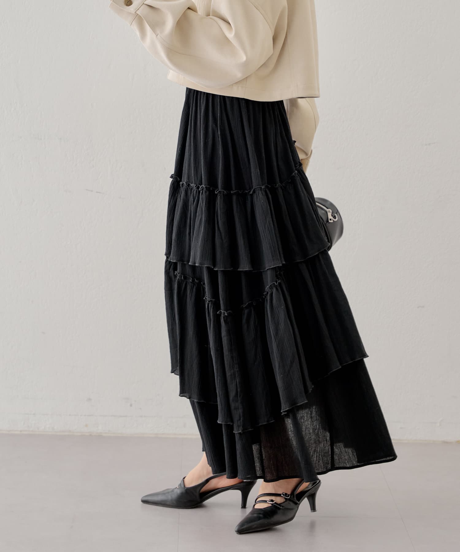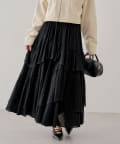 シアー素材が抜け感を演出してくれるフレアティアードスカート