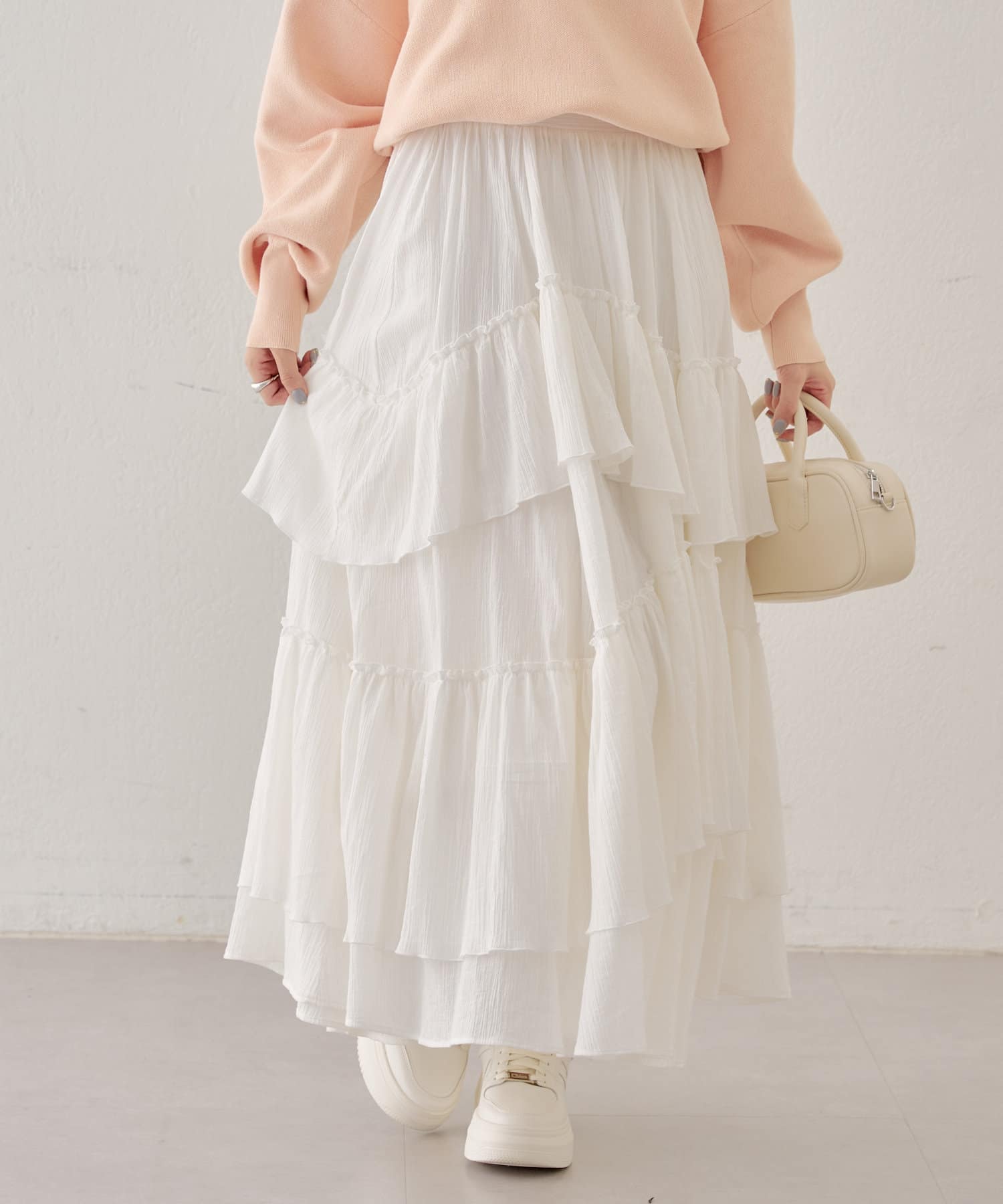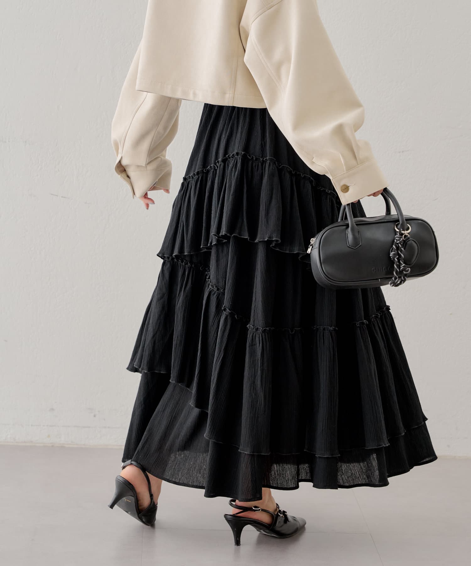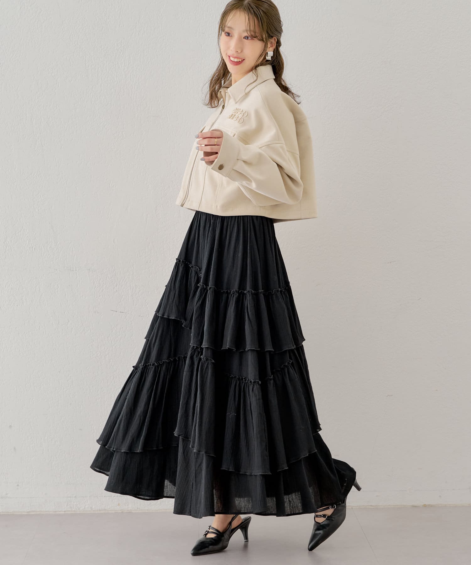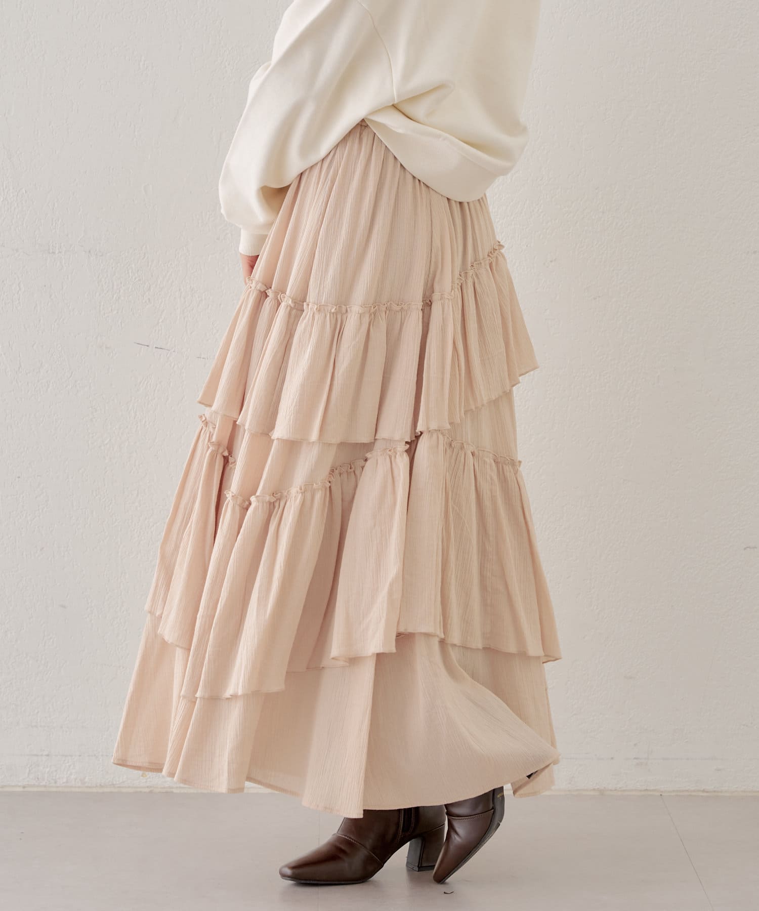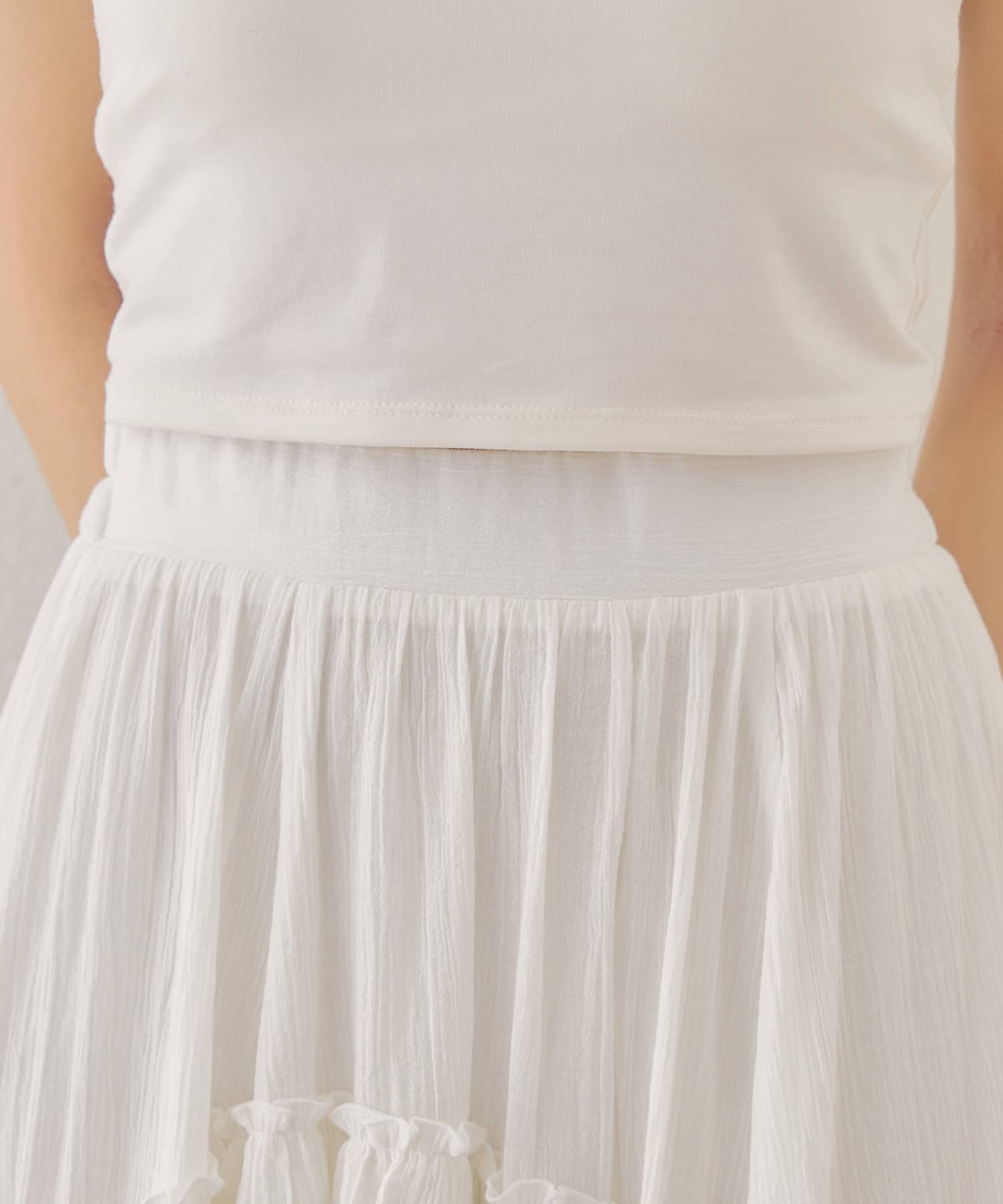 シアー素材が抜け感を演出してくれるフレアティアードスカート