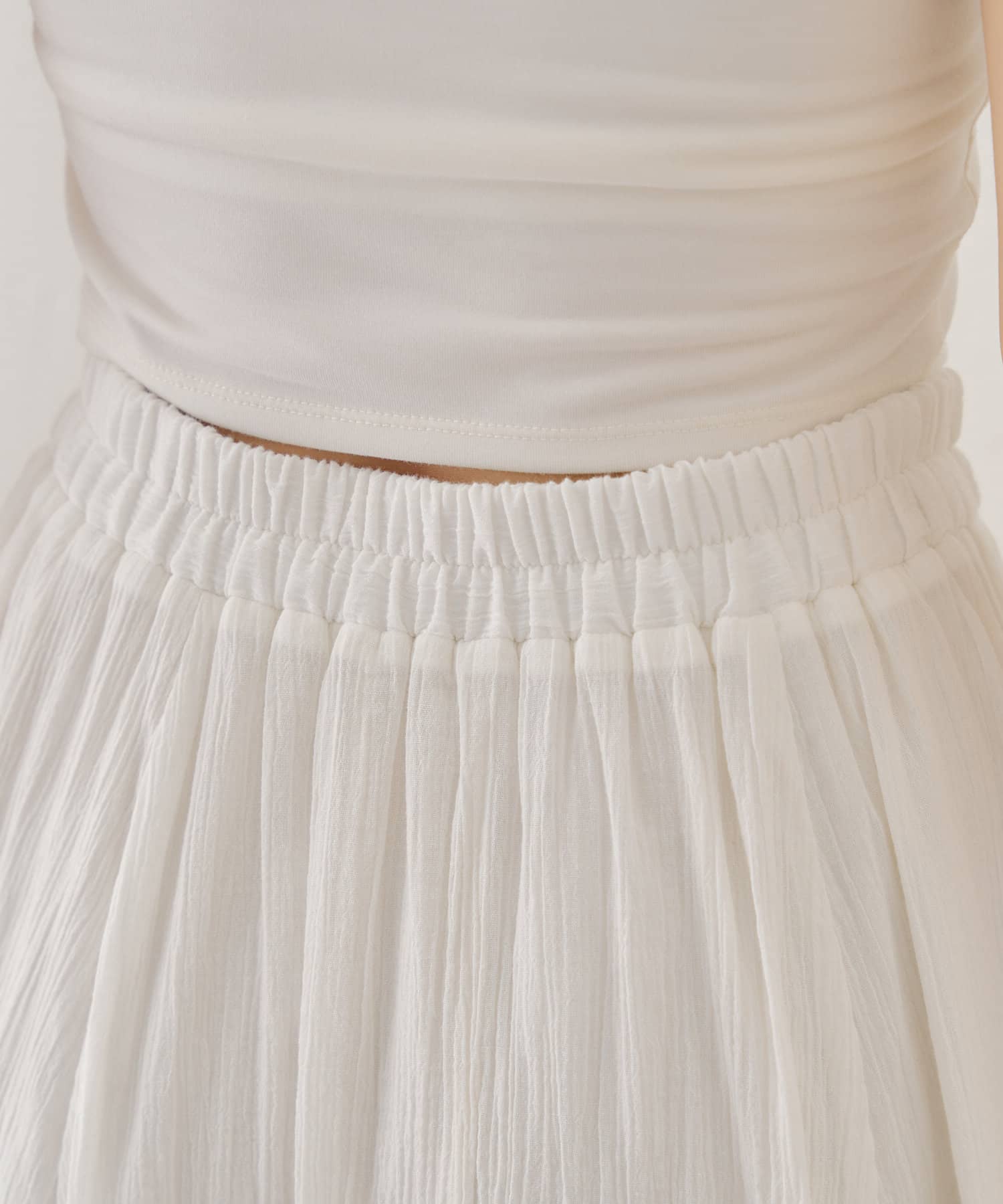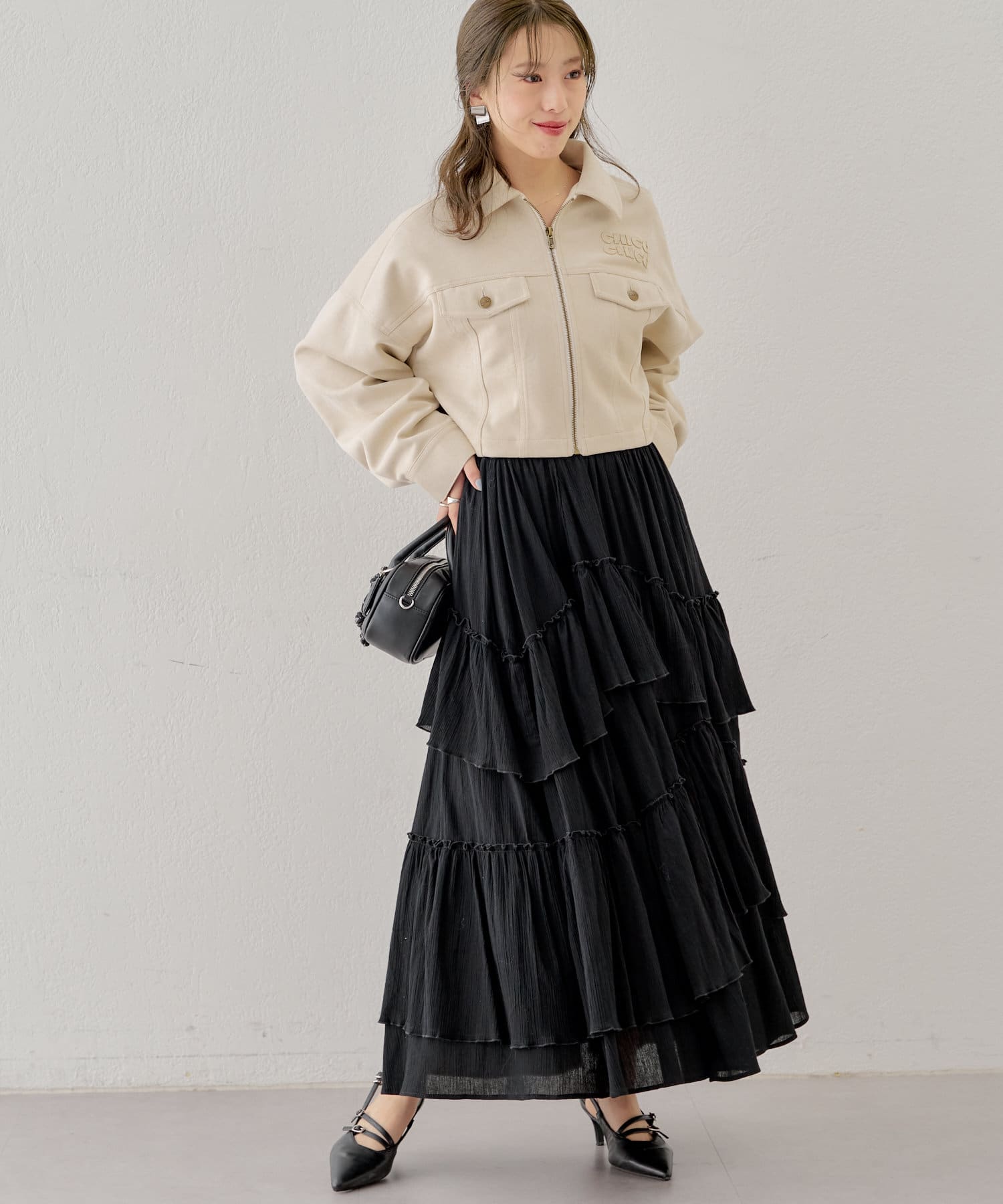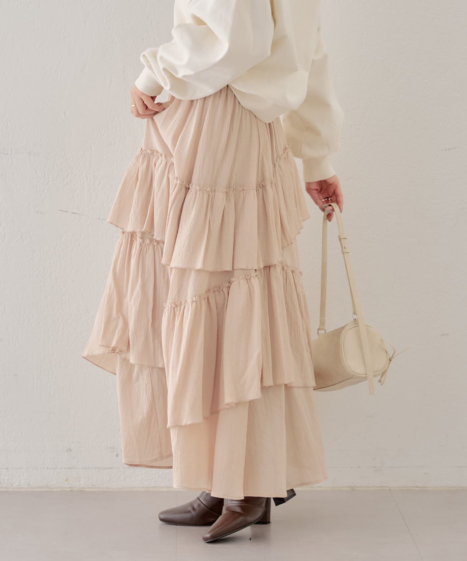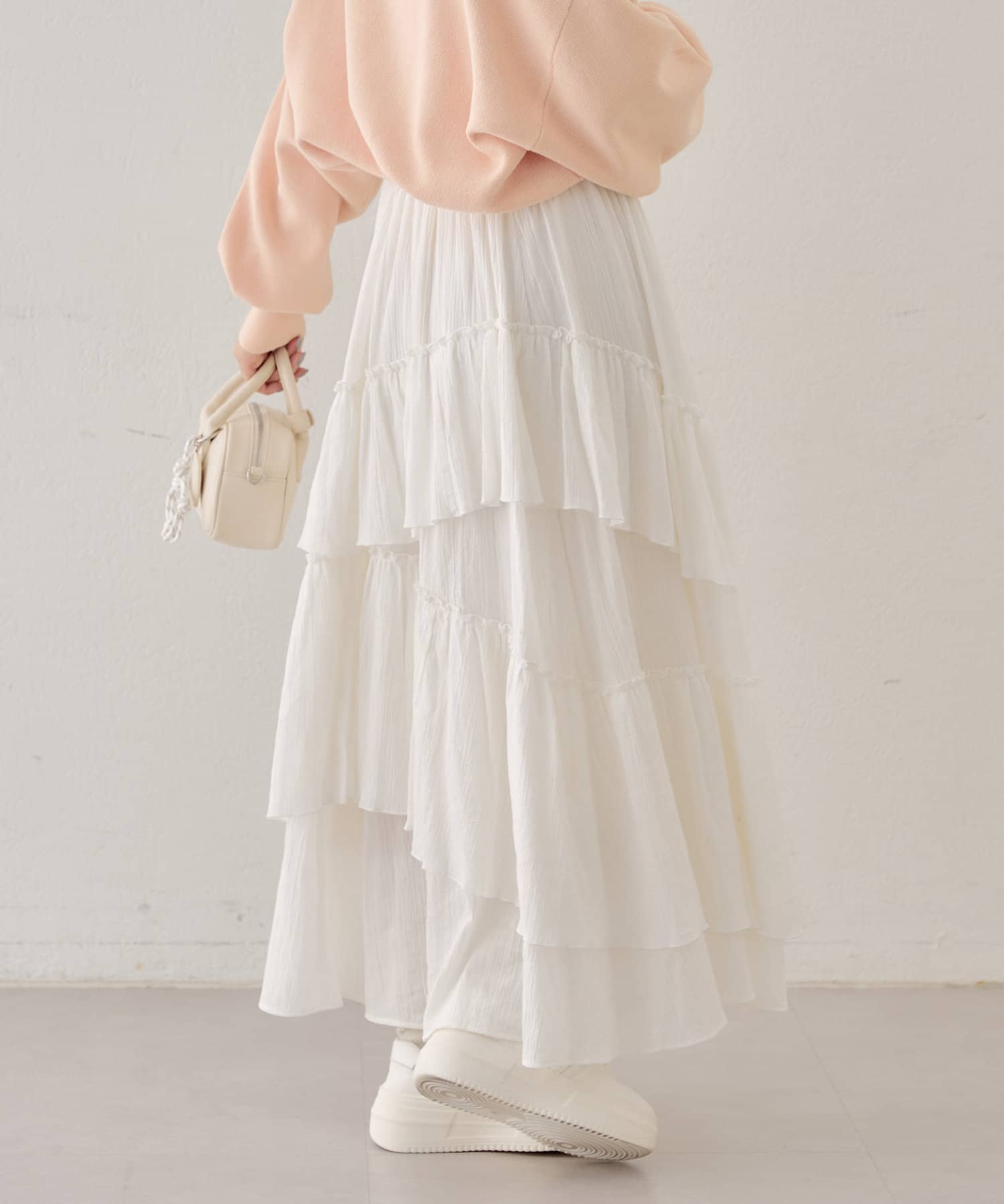 シアー素材が抜け感を演出してくれるフレアティアードスカート