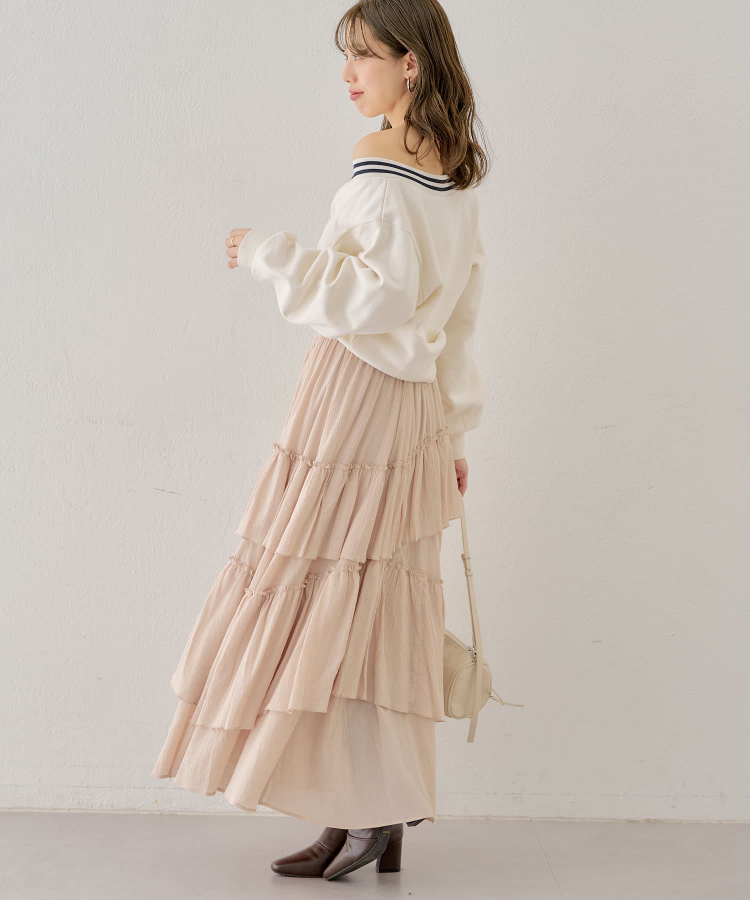 ・ボリュームのあるシルエットのスカートなのでコンパクトなボトムスと相性が良いです。