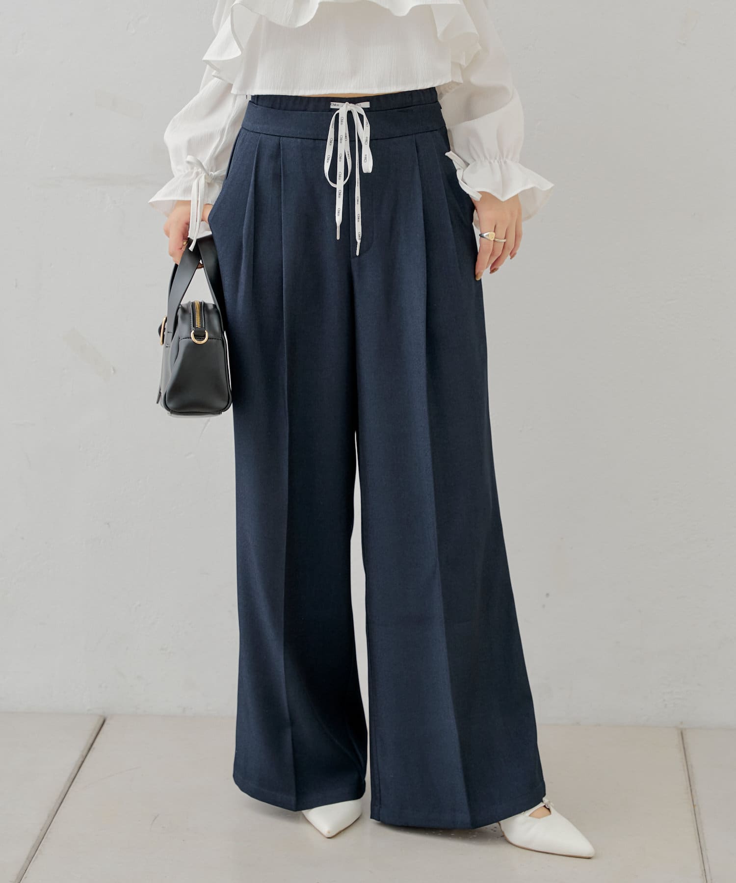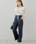・ブラウスやシャツと合わせて着るとキレイ目だけどウエスト紐で少しカジュアルになっておすすめです。