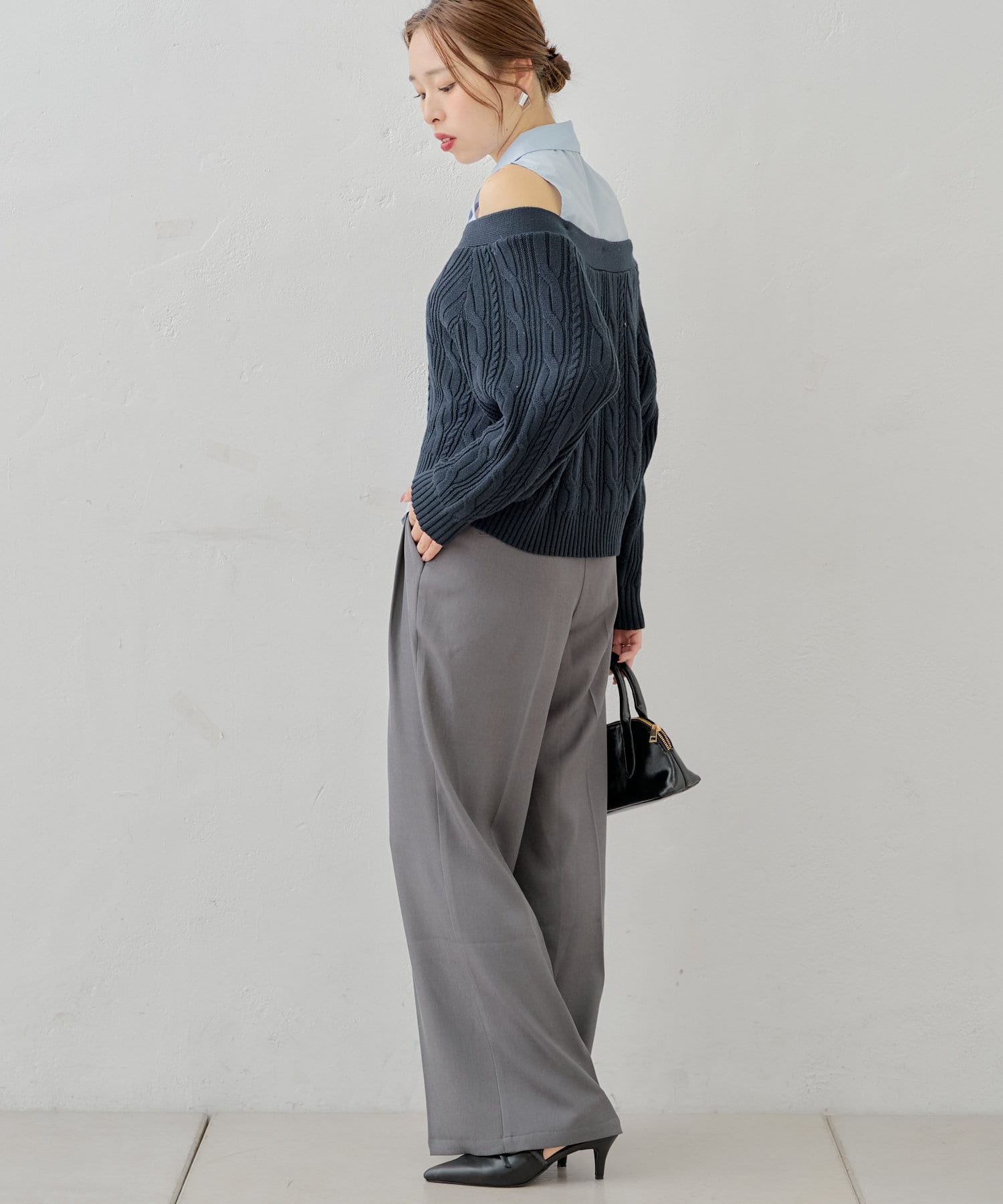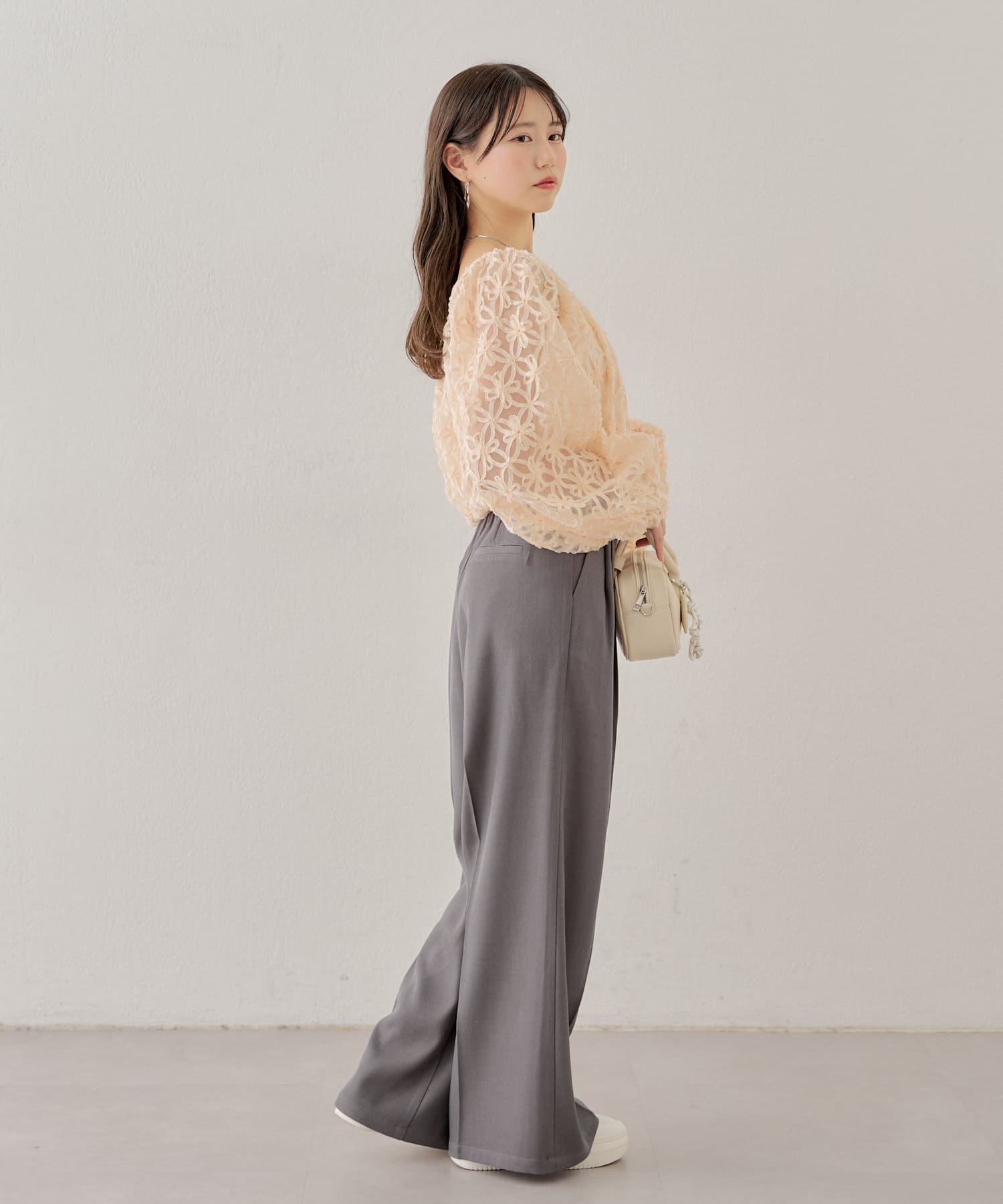 ・パンツに入っているタックがスタイルアップして見せてくれます。