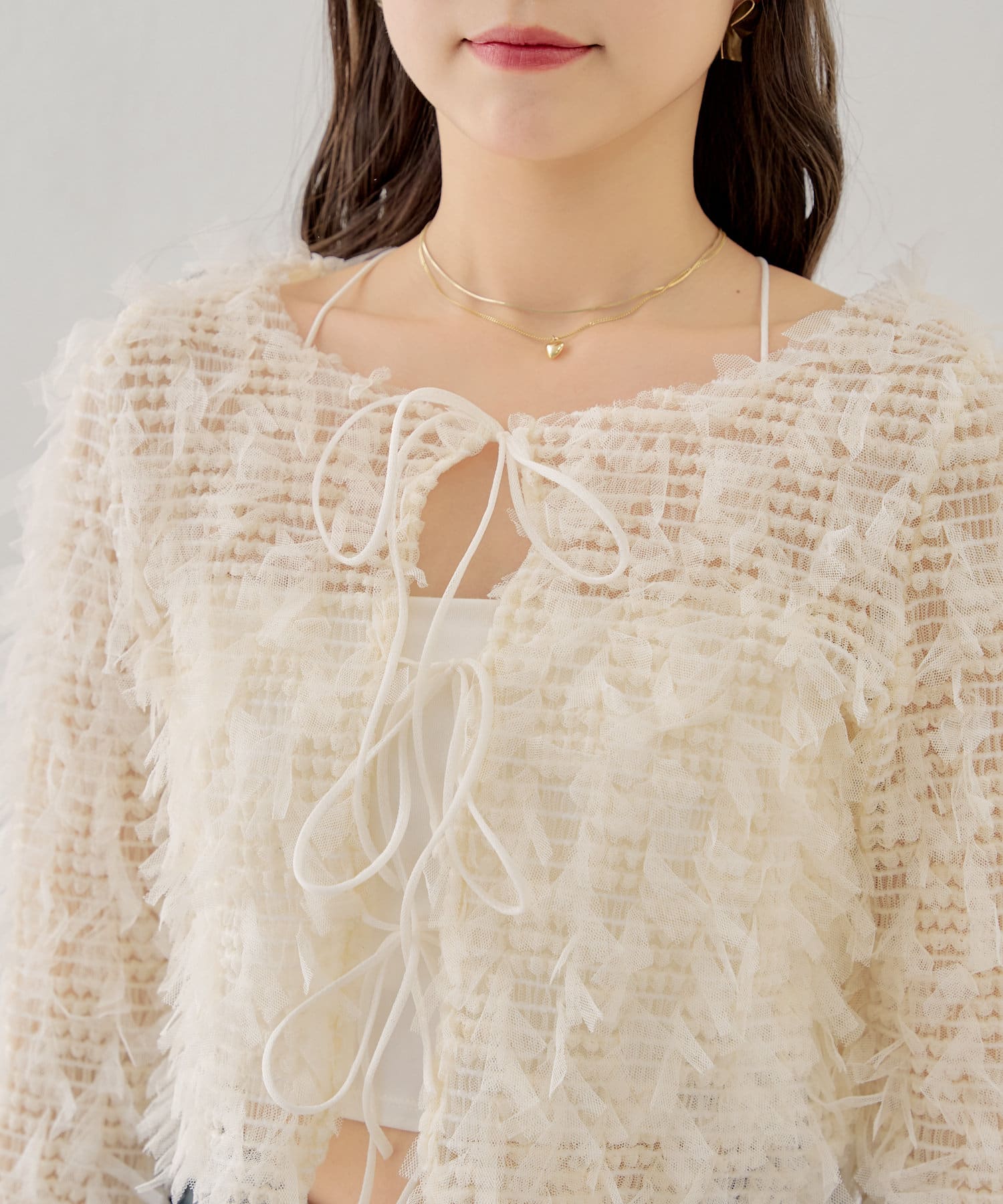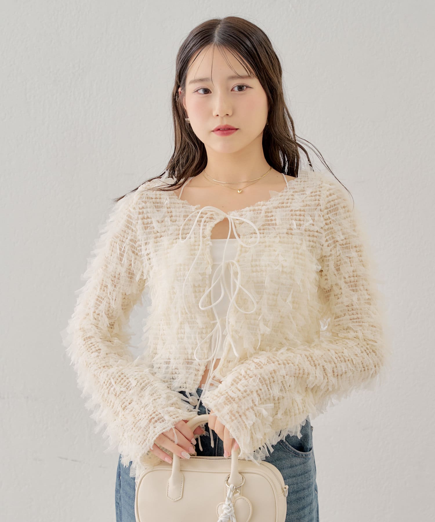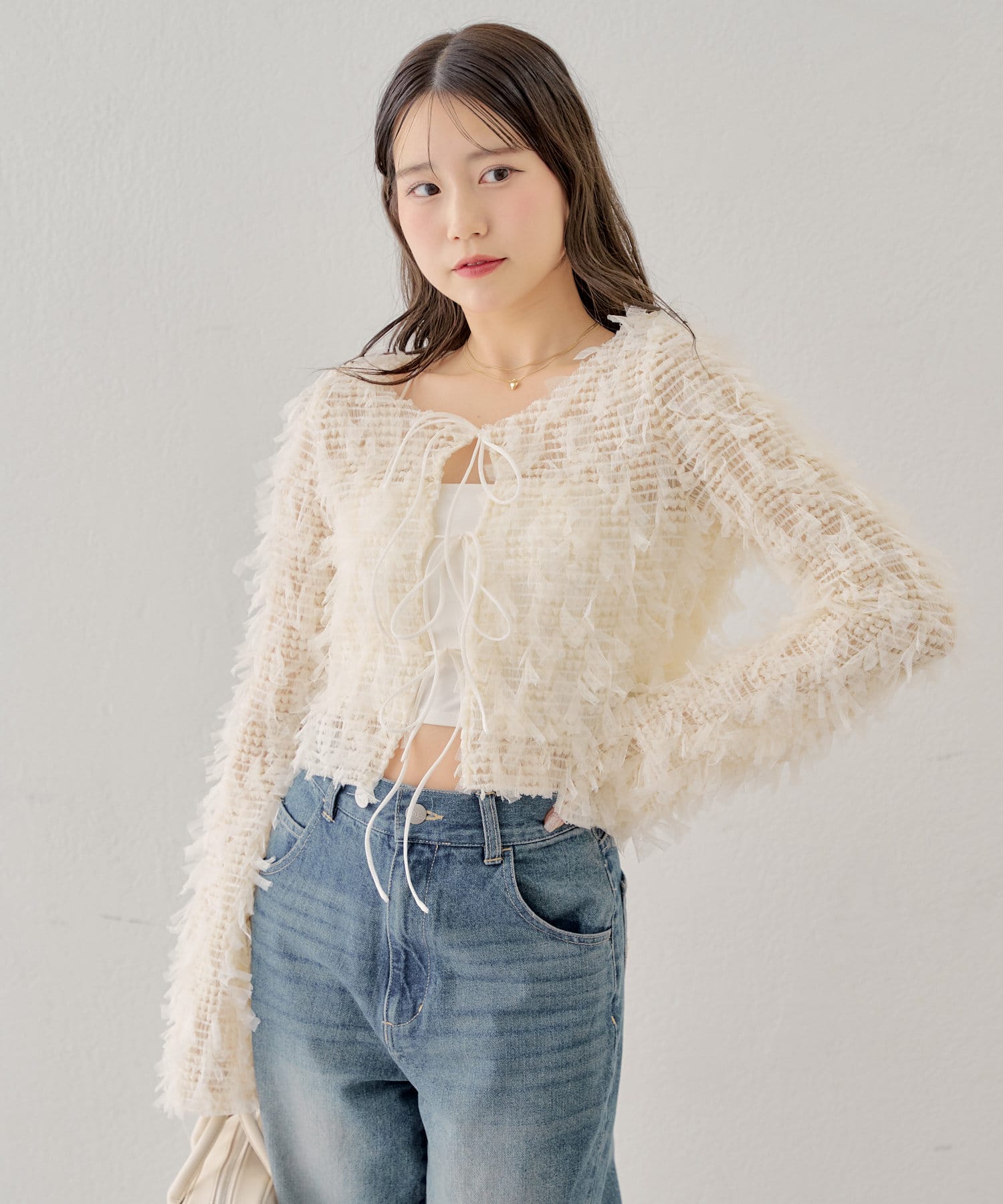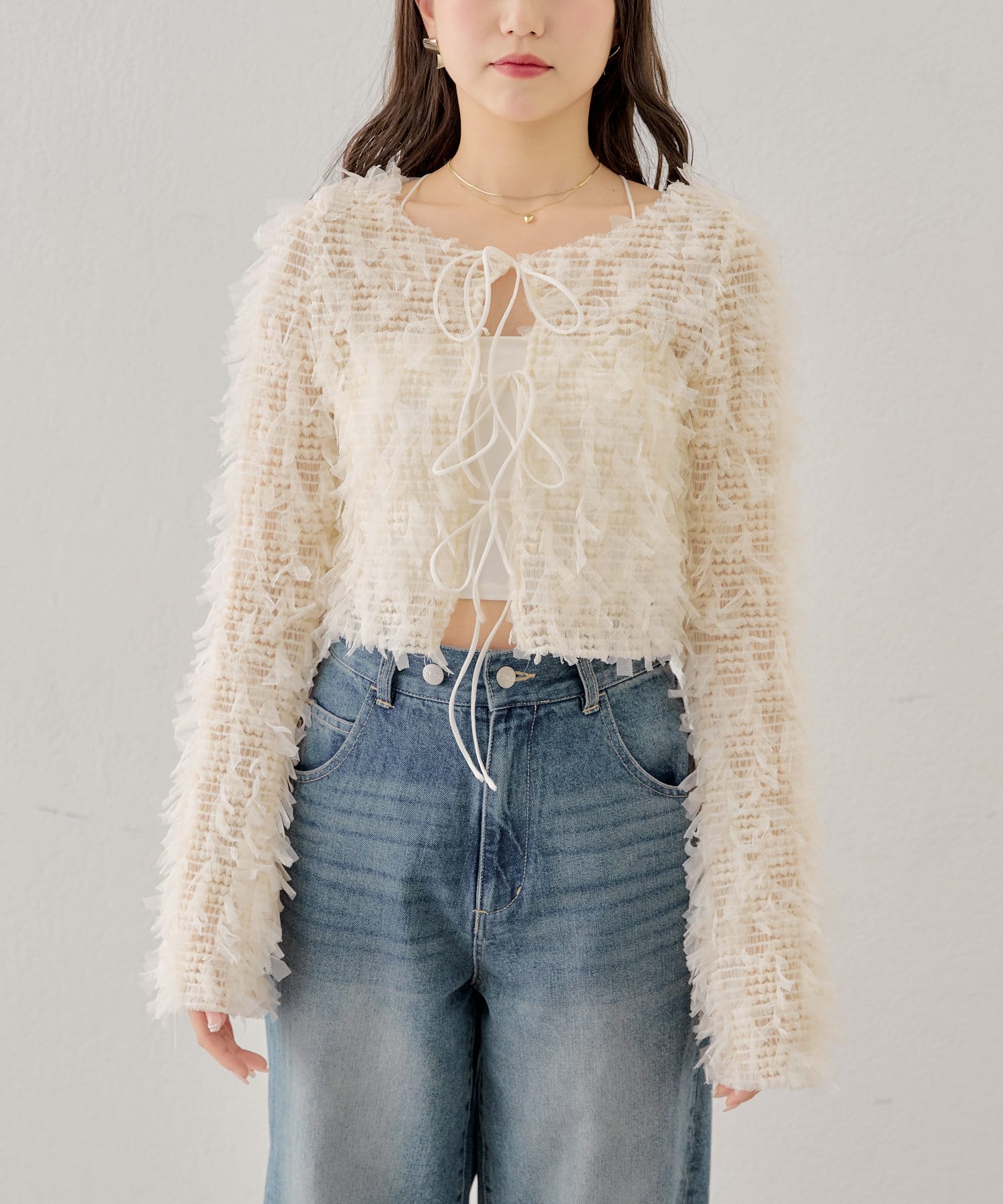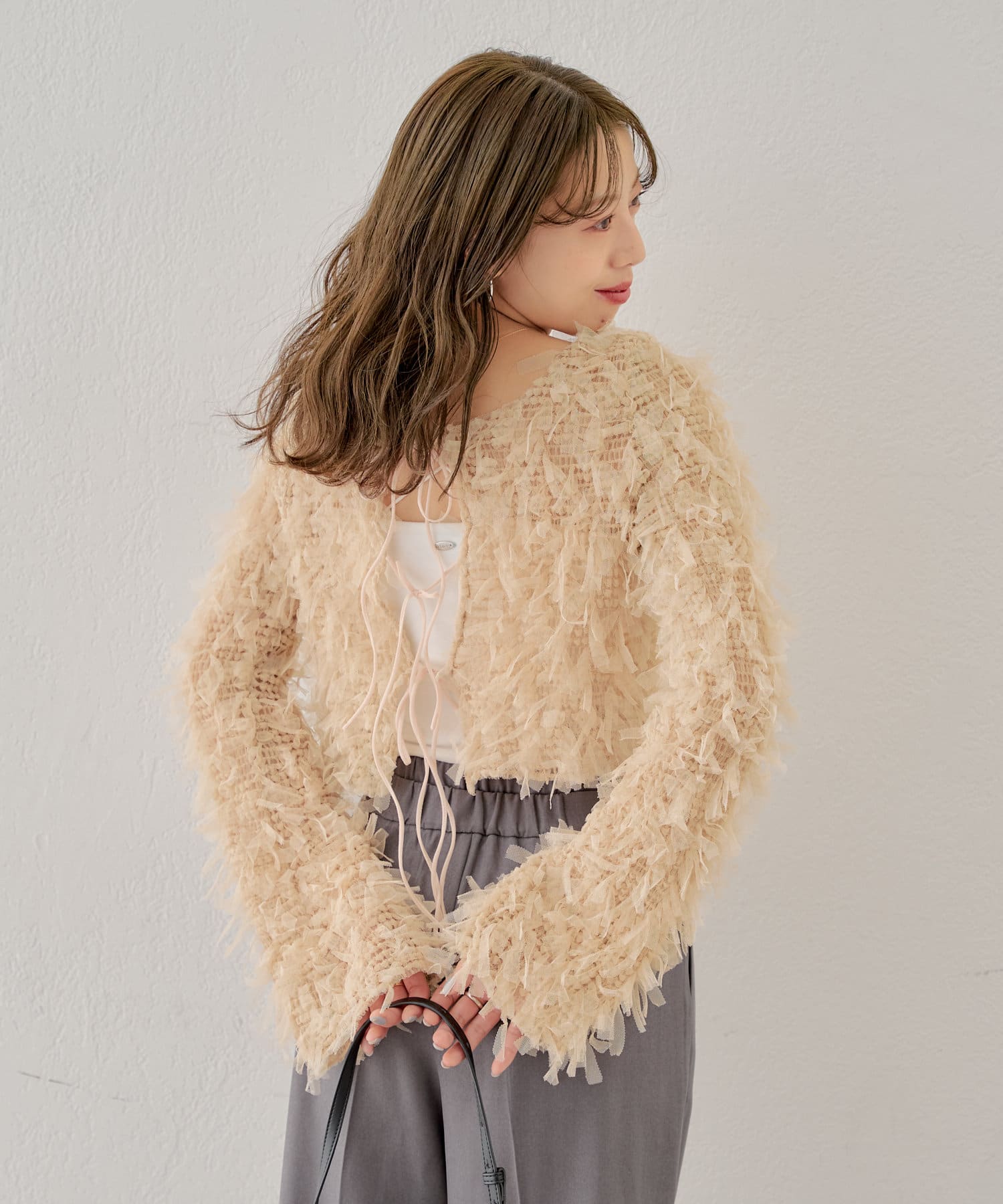 【Chico】リボンヤーンフリンジカーディガンブラウス